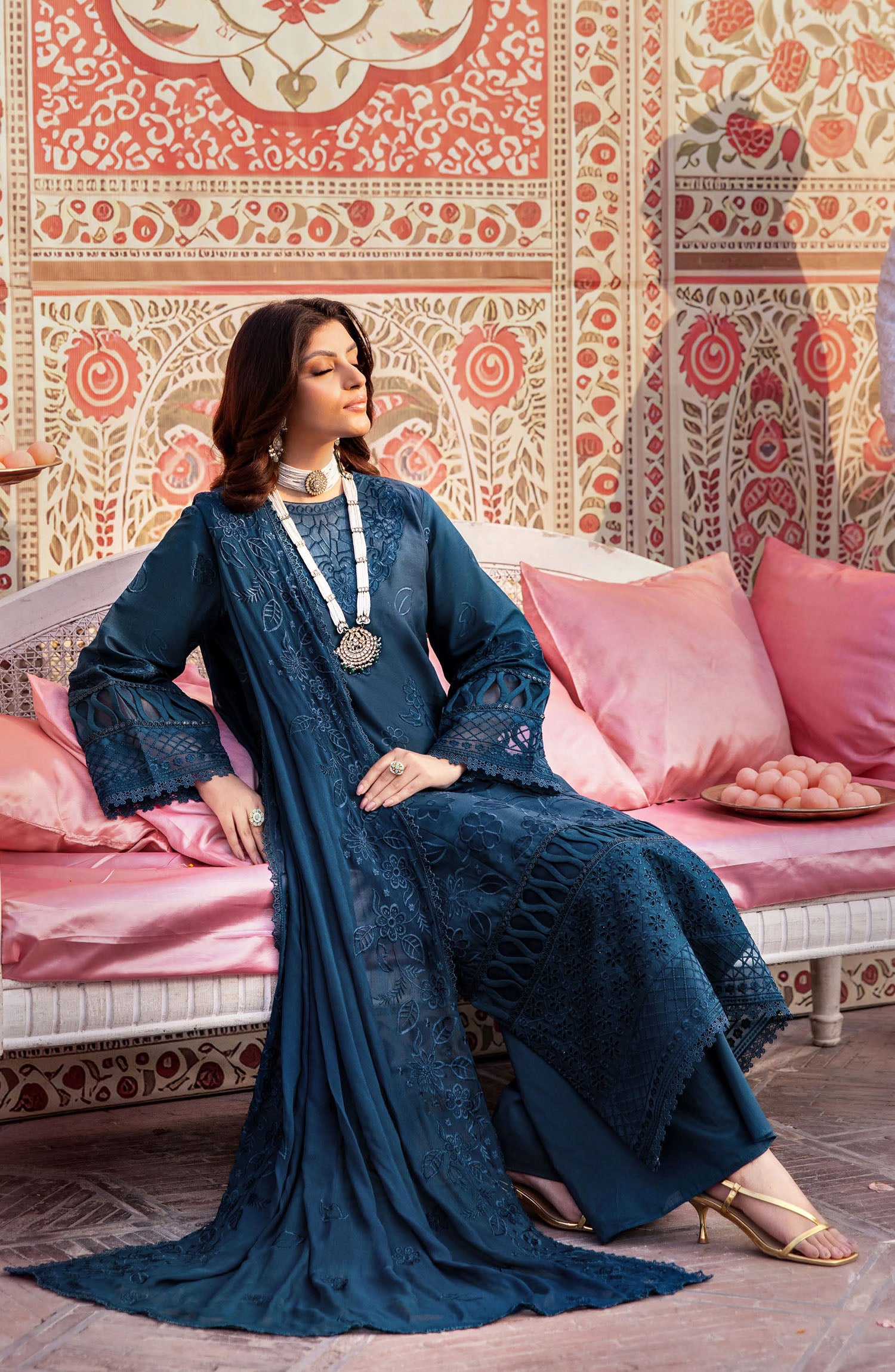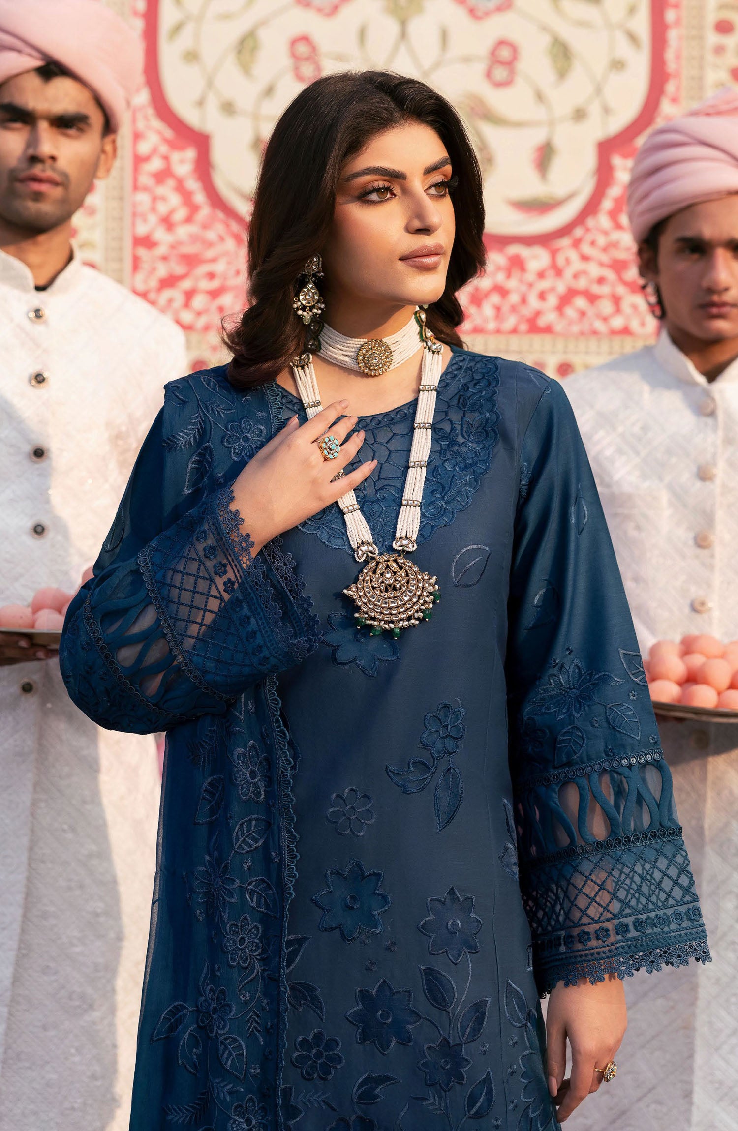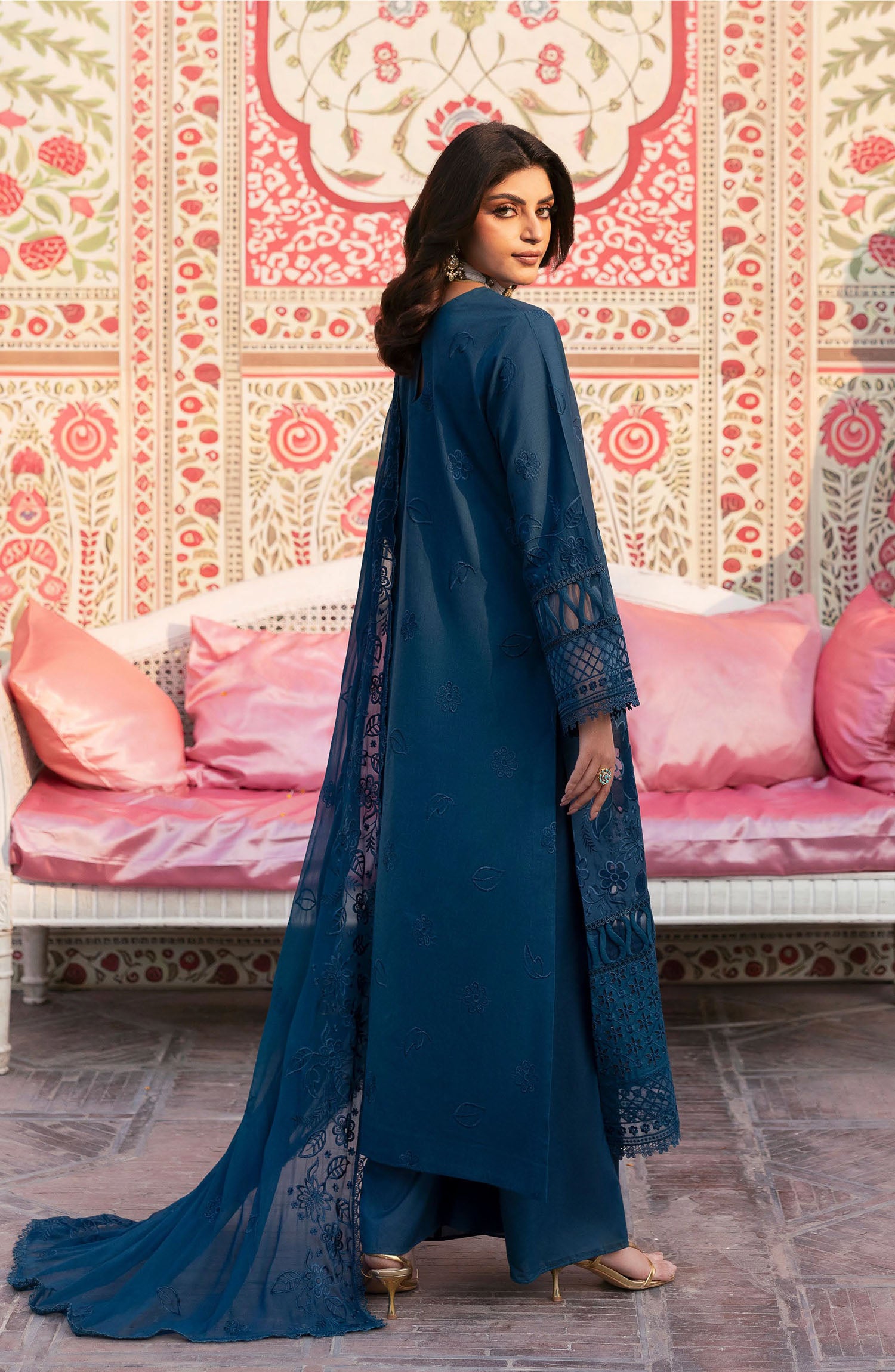 The standard style comes as a long-sleeved kameez with dupatta and trouser/shawlar.