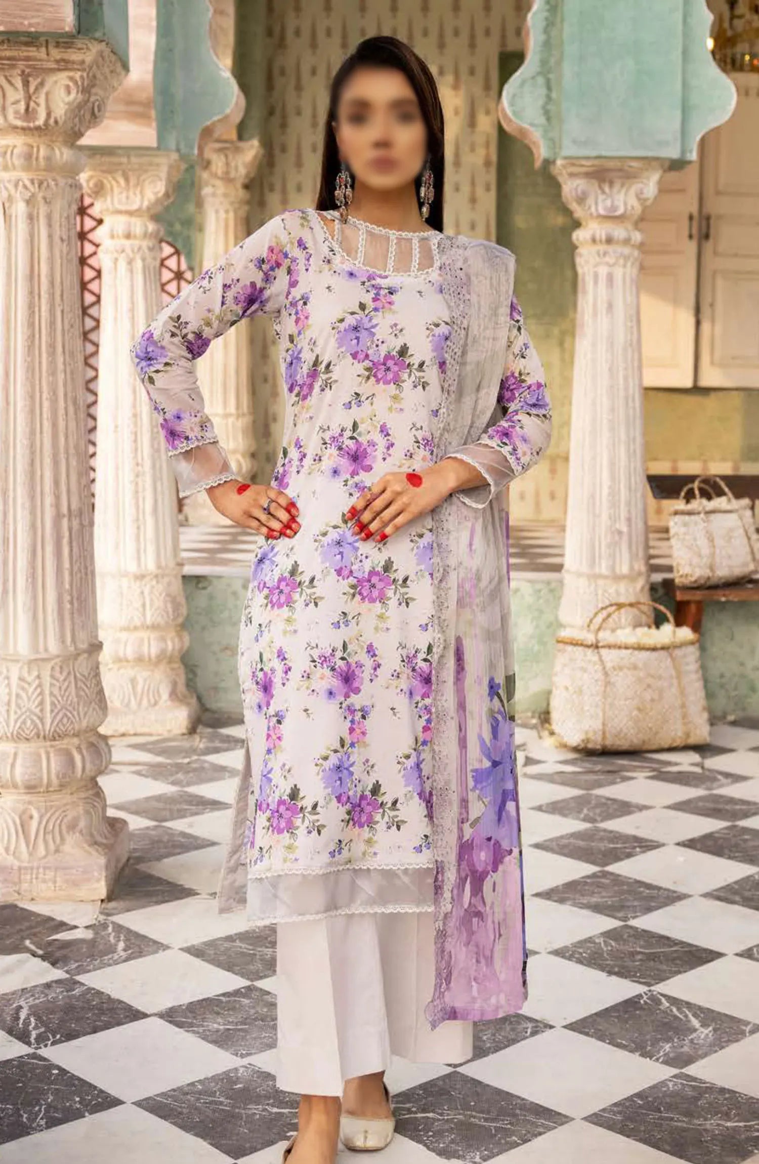 Lamisah by Lavish Premium Afsana Embroidered Chiffon Unstitched 3 Piece Suit - D-06 Lilac Reverie - LP25AFS - Purple - Luxury Collection