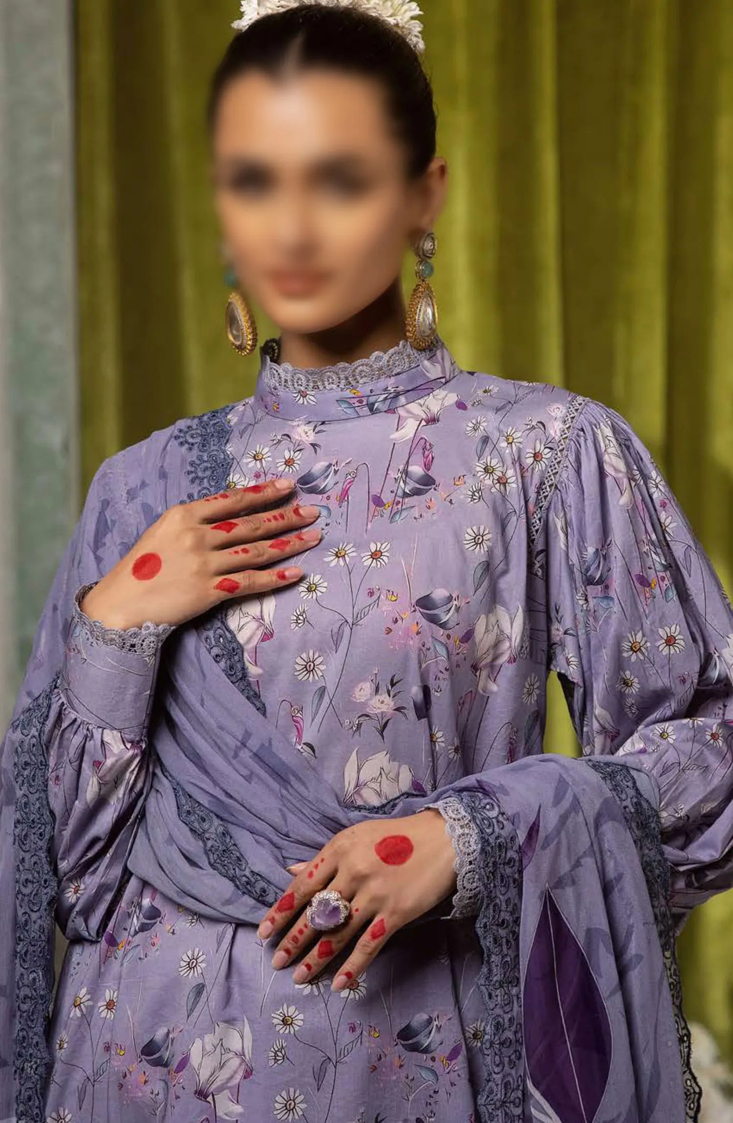 Mahoor Printed and Embroidered Lawn Collection 2024 has been styled in the image for photography and illustrative purposes.