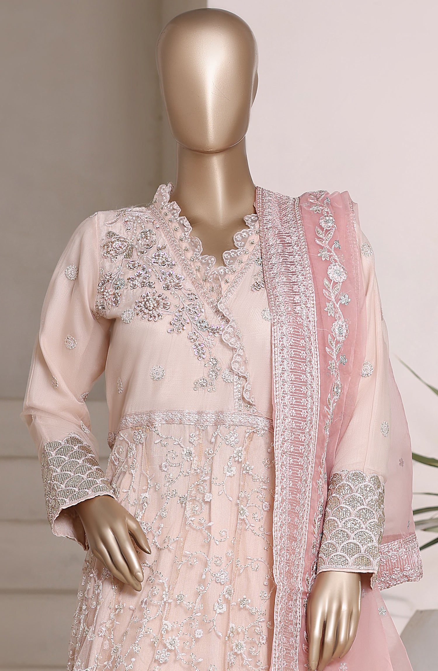Luxury Festive Embroidered Net Stitched 3 Piece Suit