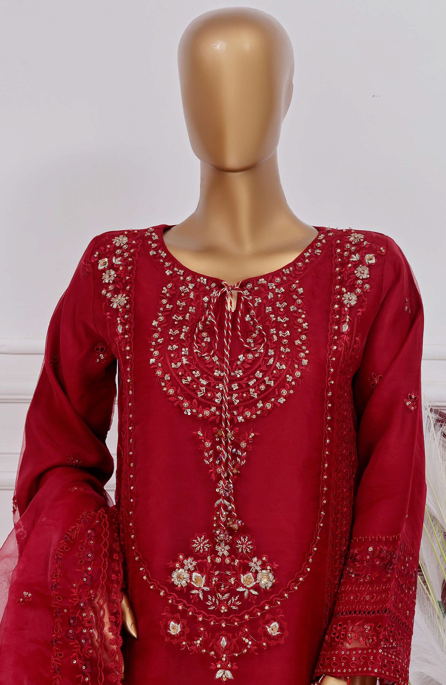 Home Mahpara by Sadabahar Embroidered Organza Stitched 3 Piece Suit - AG-30 Red - SBD25MHPV15 - Festive Collection