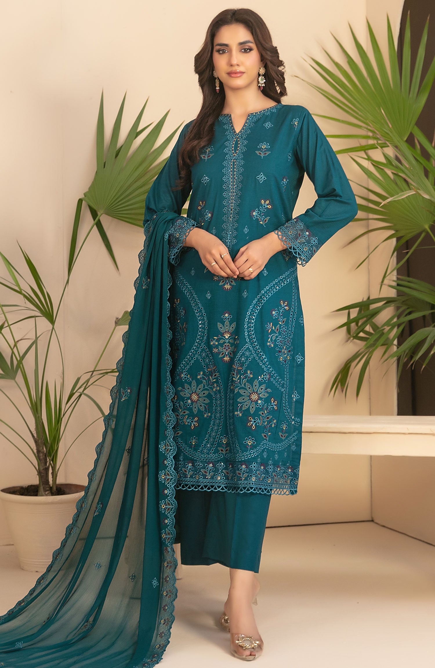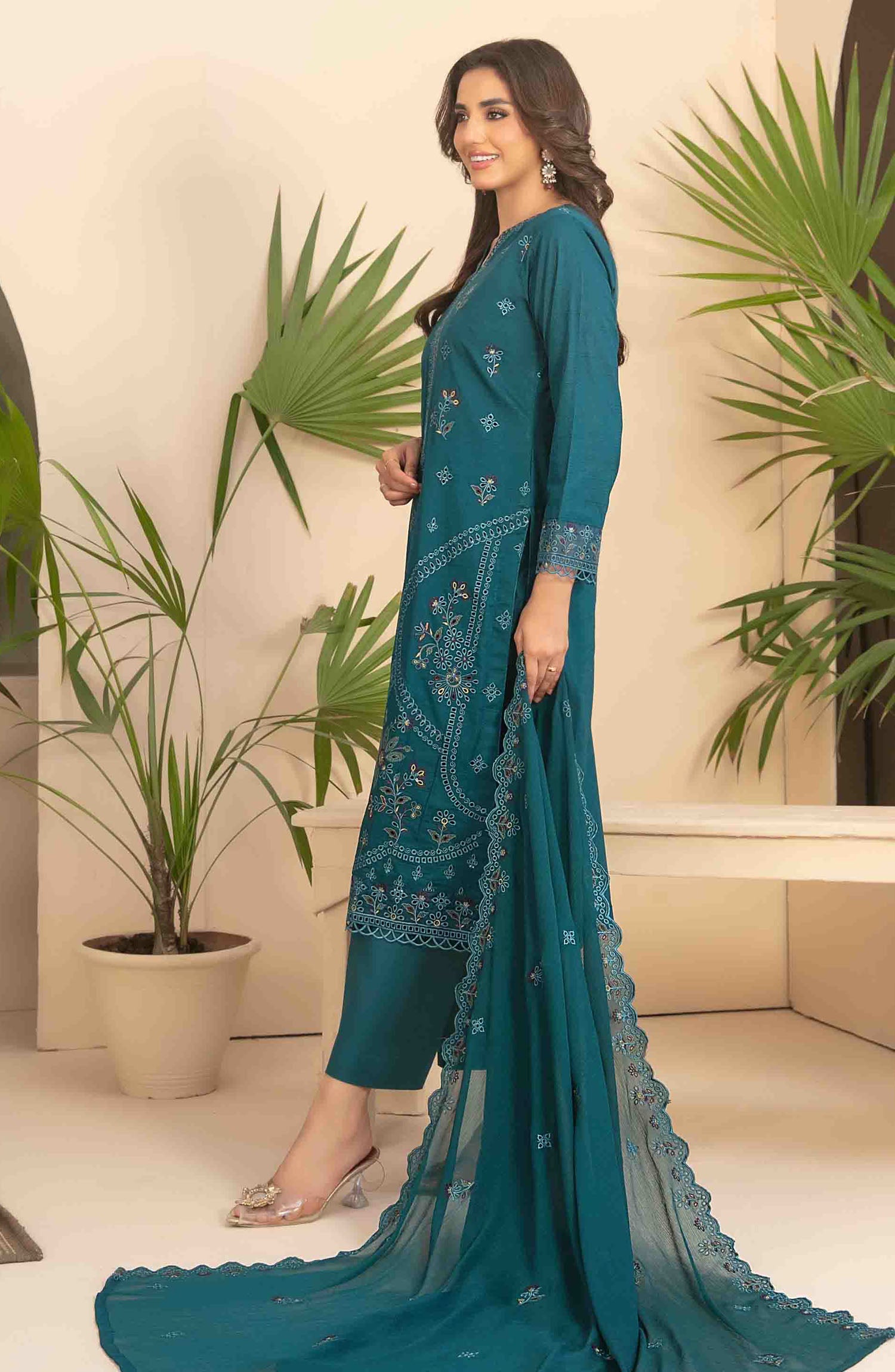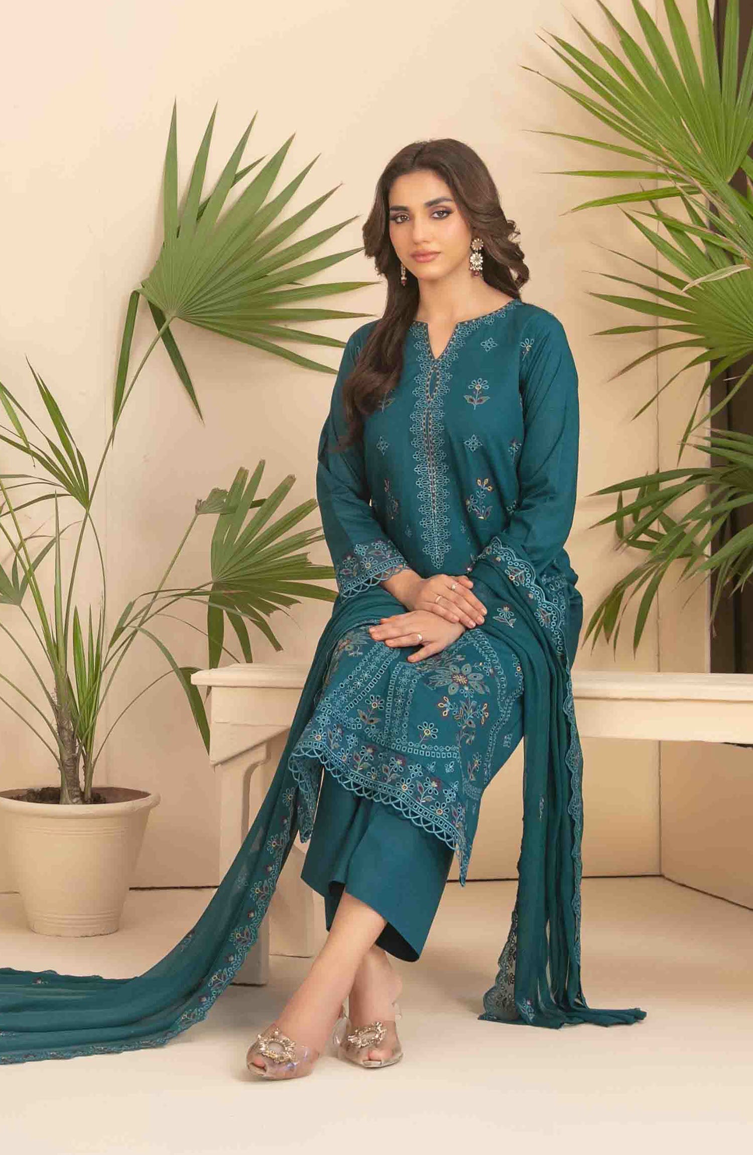Sadabahar Signature Embroidered Khaddar Stitched 3 Piece Suit - Design-04 - SBD25SNA - Teal - Winter Collection