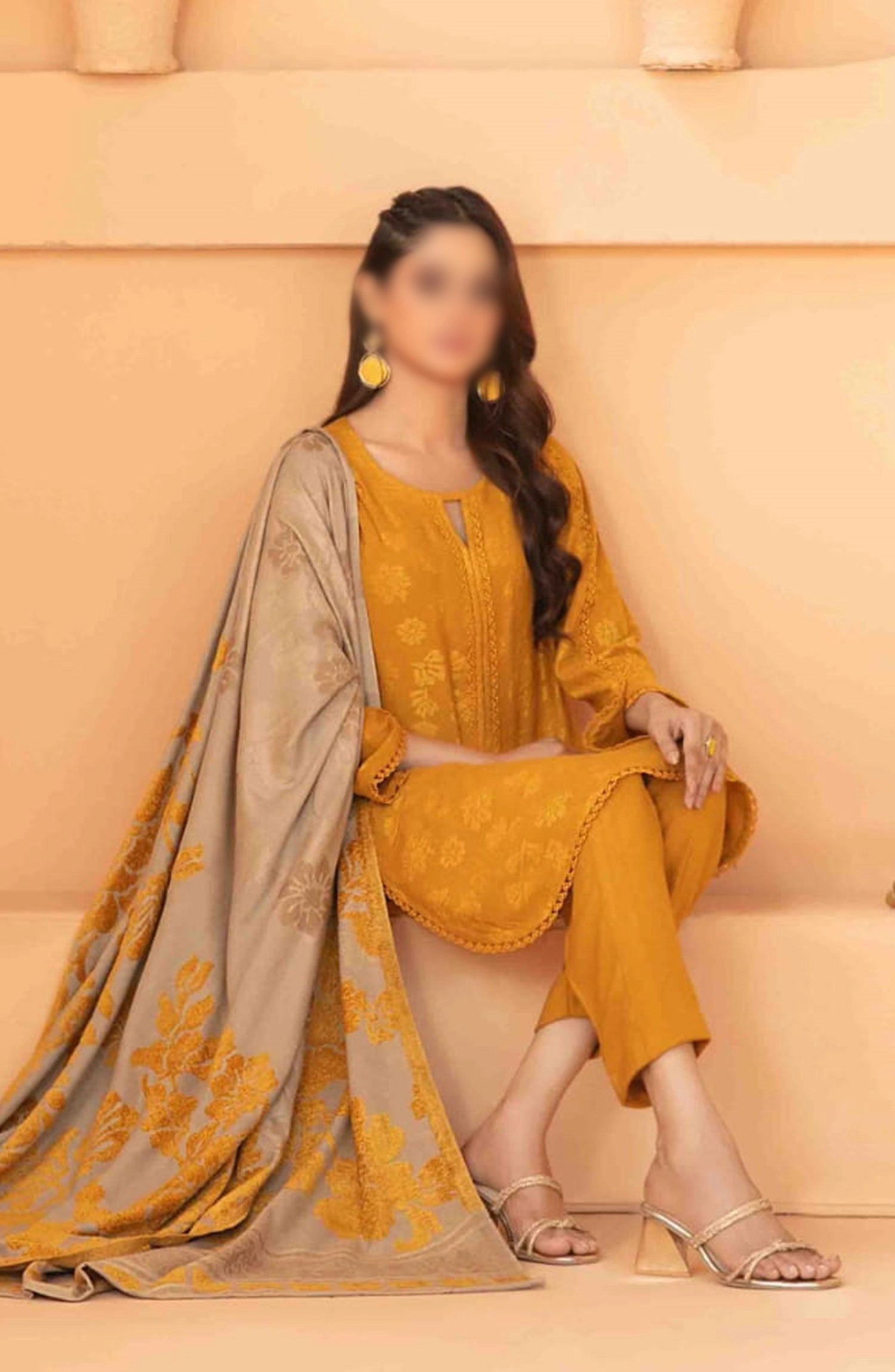 Bloom by Johra Premium Luxury Embroidered Dhanak Unstitched 3 Piece Suit - JW-596 - JH25BLOM - Orange - Winter Collection