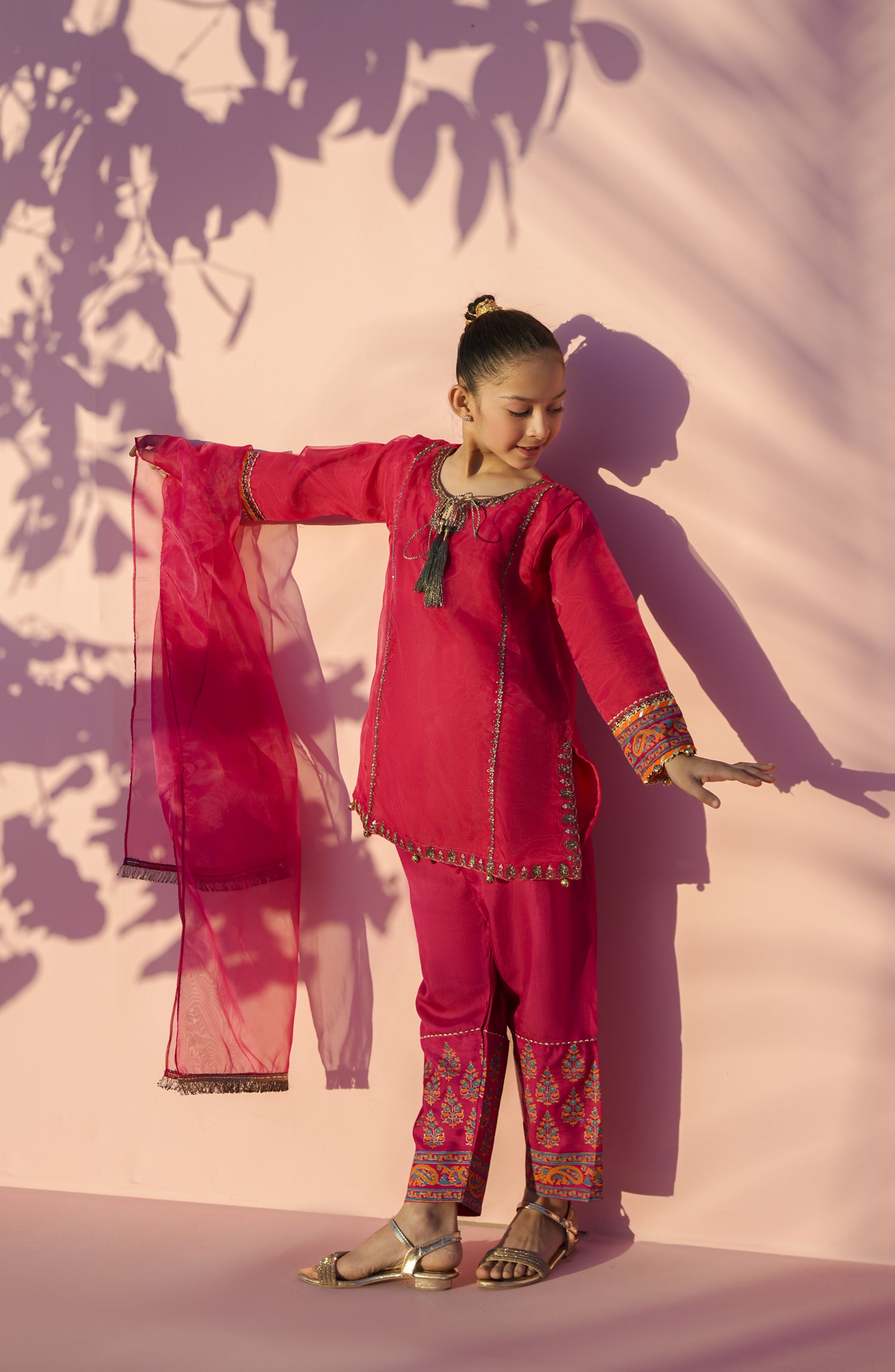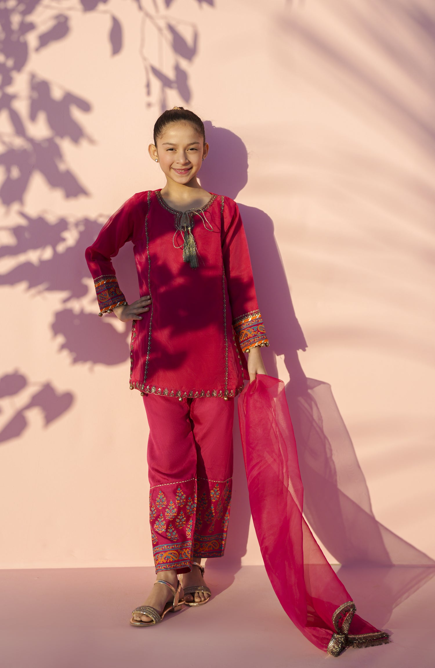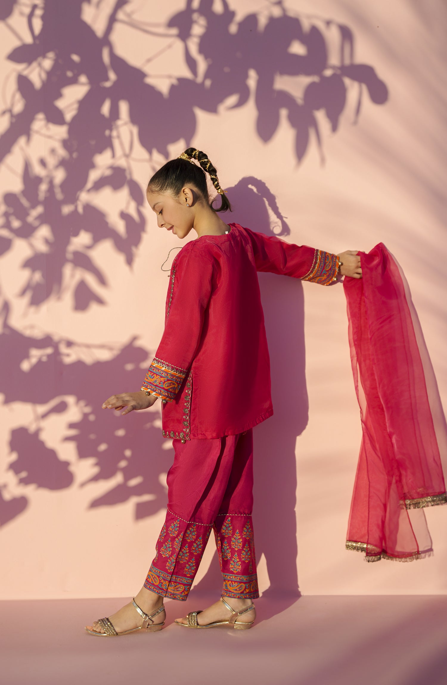 Stitch Embroidered and Embellished Organza Shirt and Trouser with Fancy Dupatta