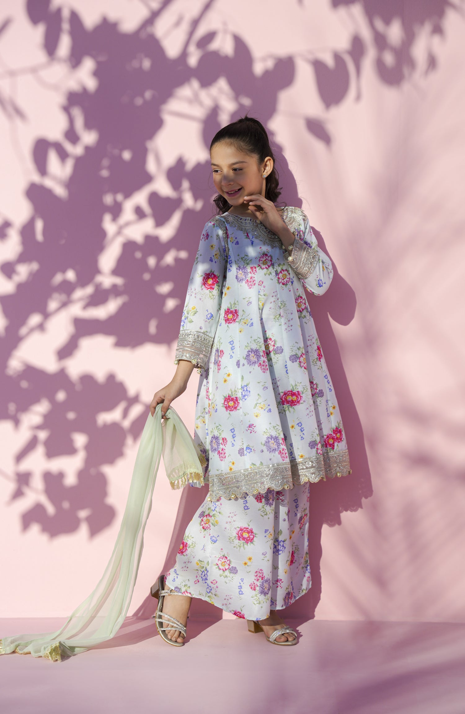 Stitch Poly Lawn Embroidered Shirt and Poly Lawn Trouser with Fancy Dupatta