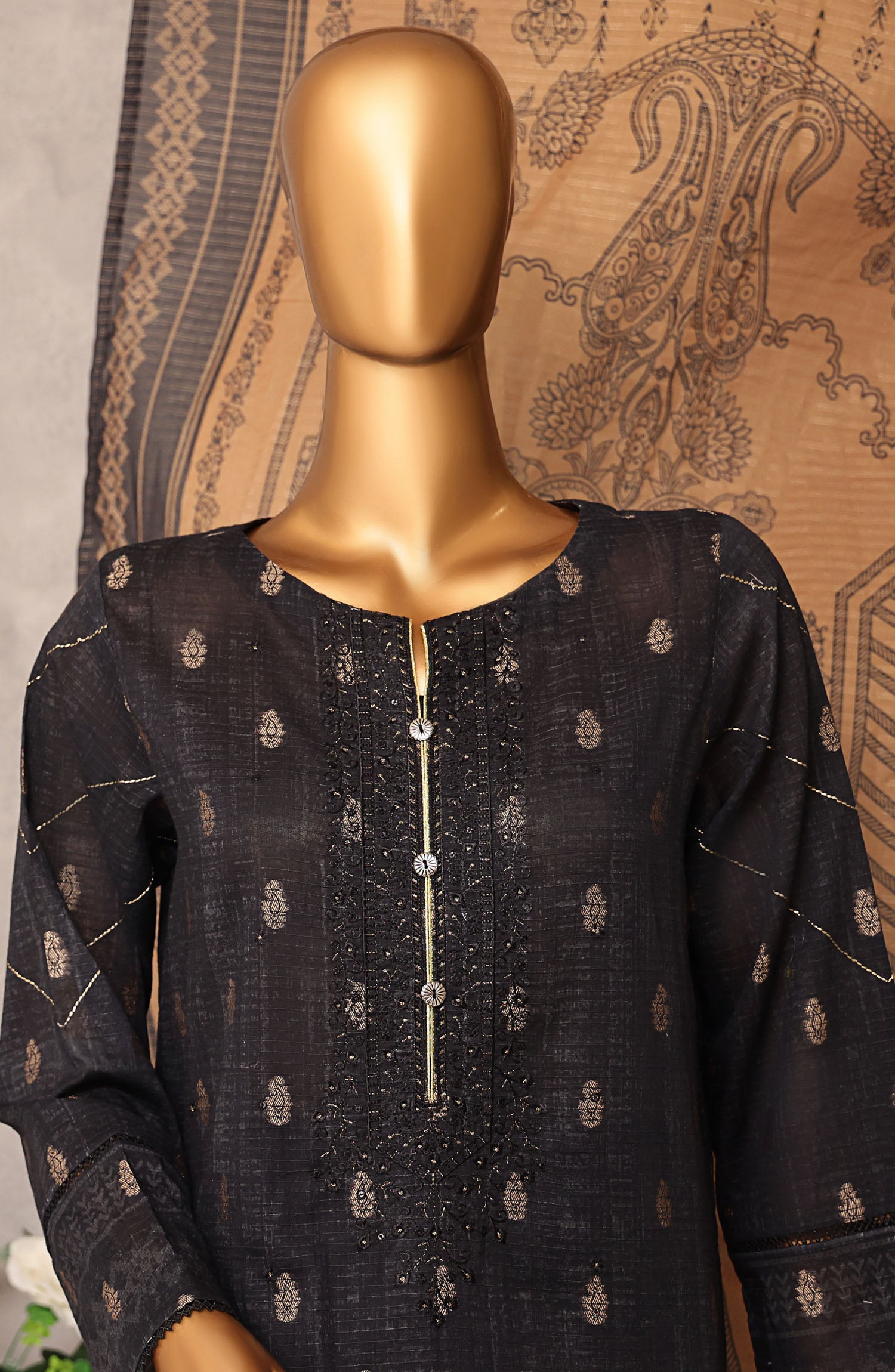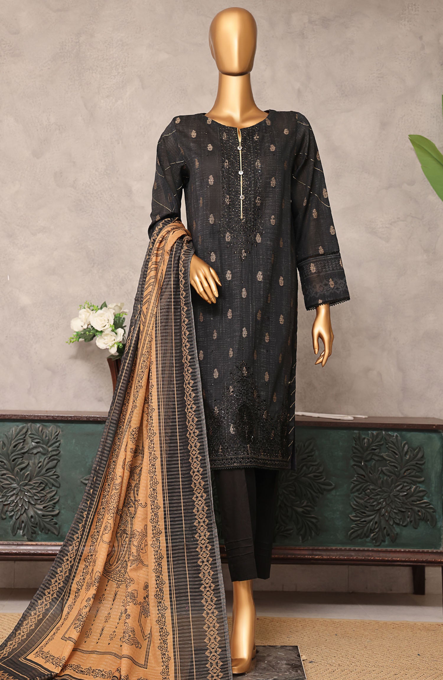 Majestic by HZ Textile Embroidered Lawn Unstitched 3 Piece Suit - MJE-11 - HZ25MJE - Black - Summer Collection