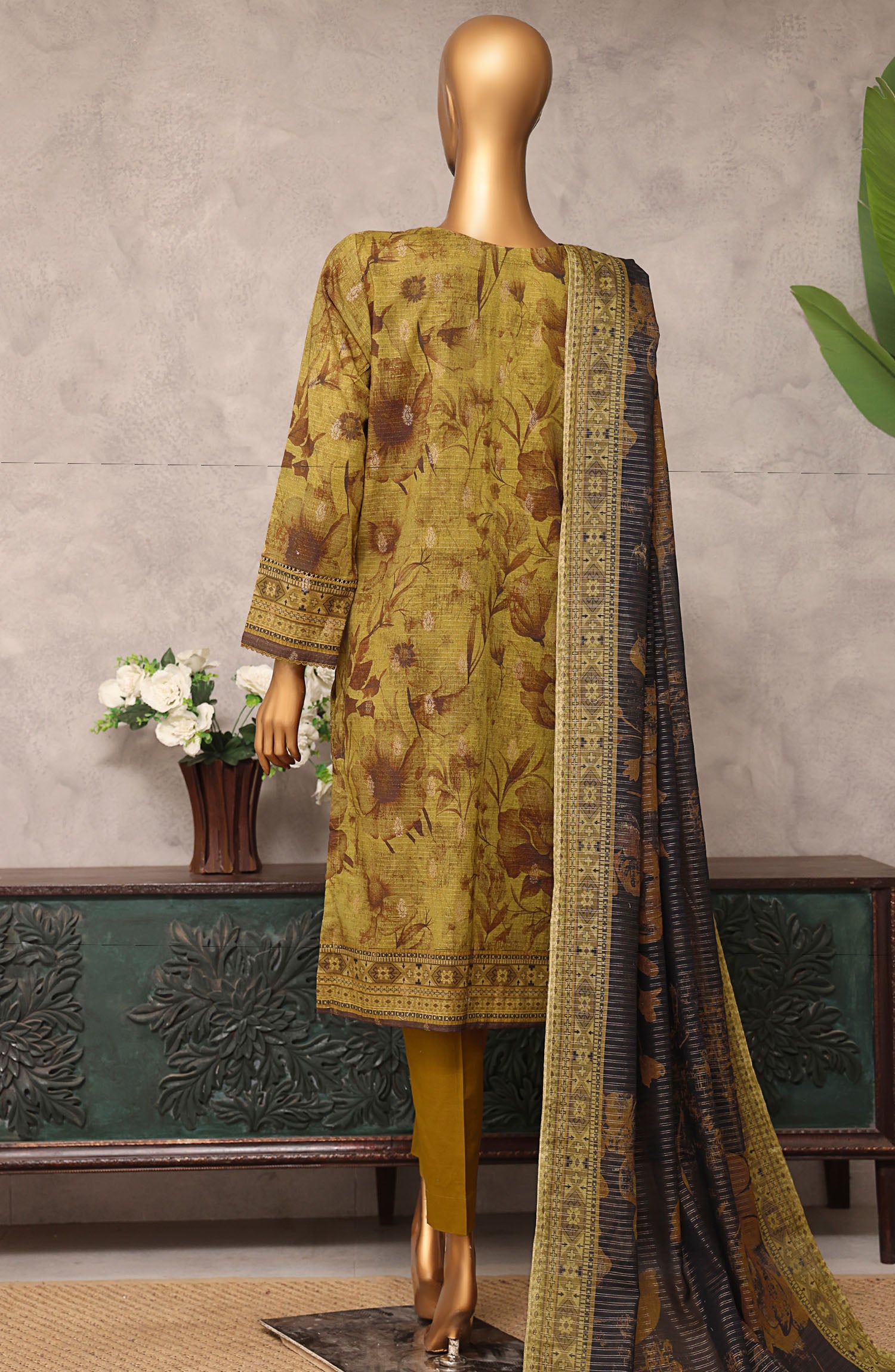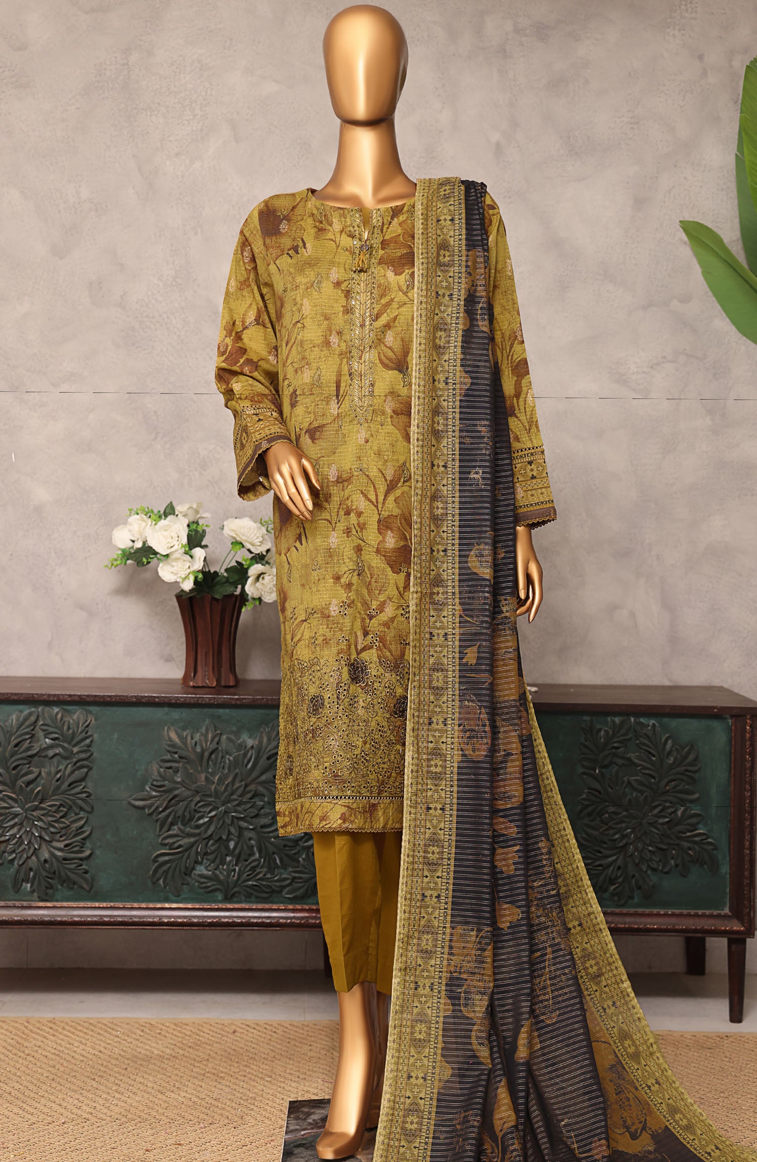 Home Majestic by HZ Textile Embroidered Lawn Unstitched 3 Piece Suit - MJE-17 - HZ25MJE - Brown - Summer Collection