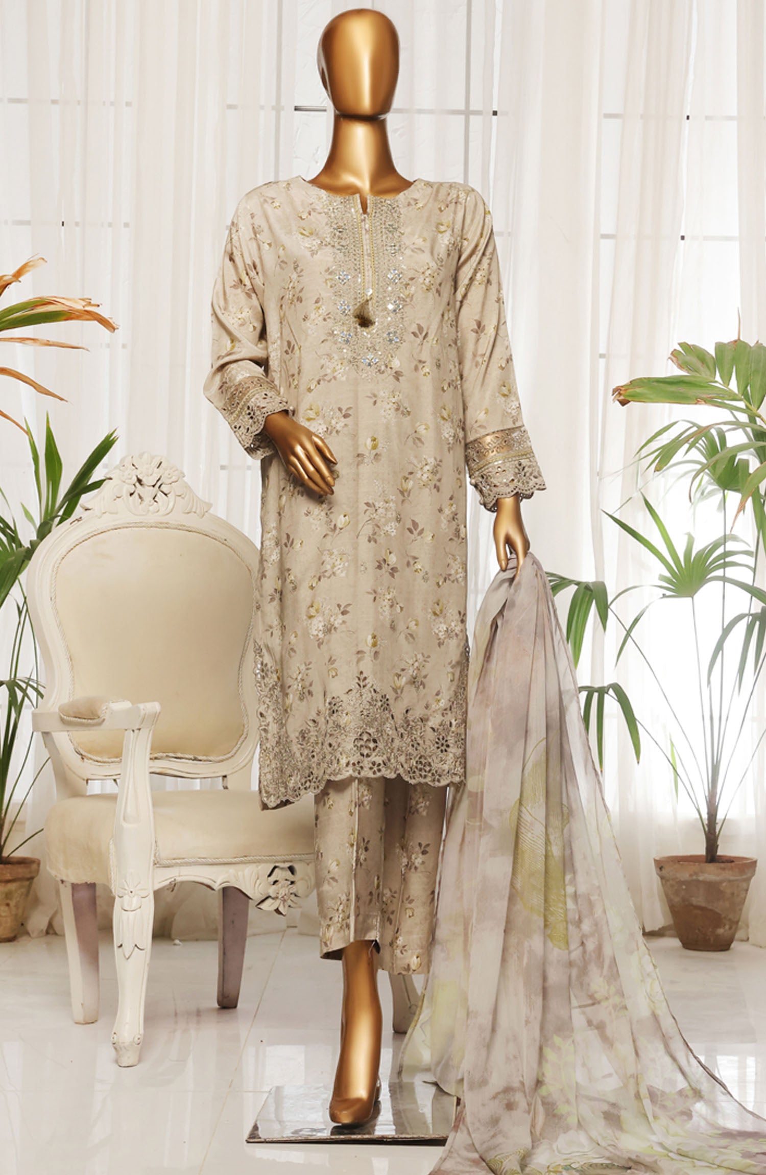 Home Majestic by HZ Textile Embroidered Rawsilk Stitched 3 Piece Suit - RTE-009 - HZ25MESF - Beige - Festive Collection