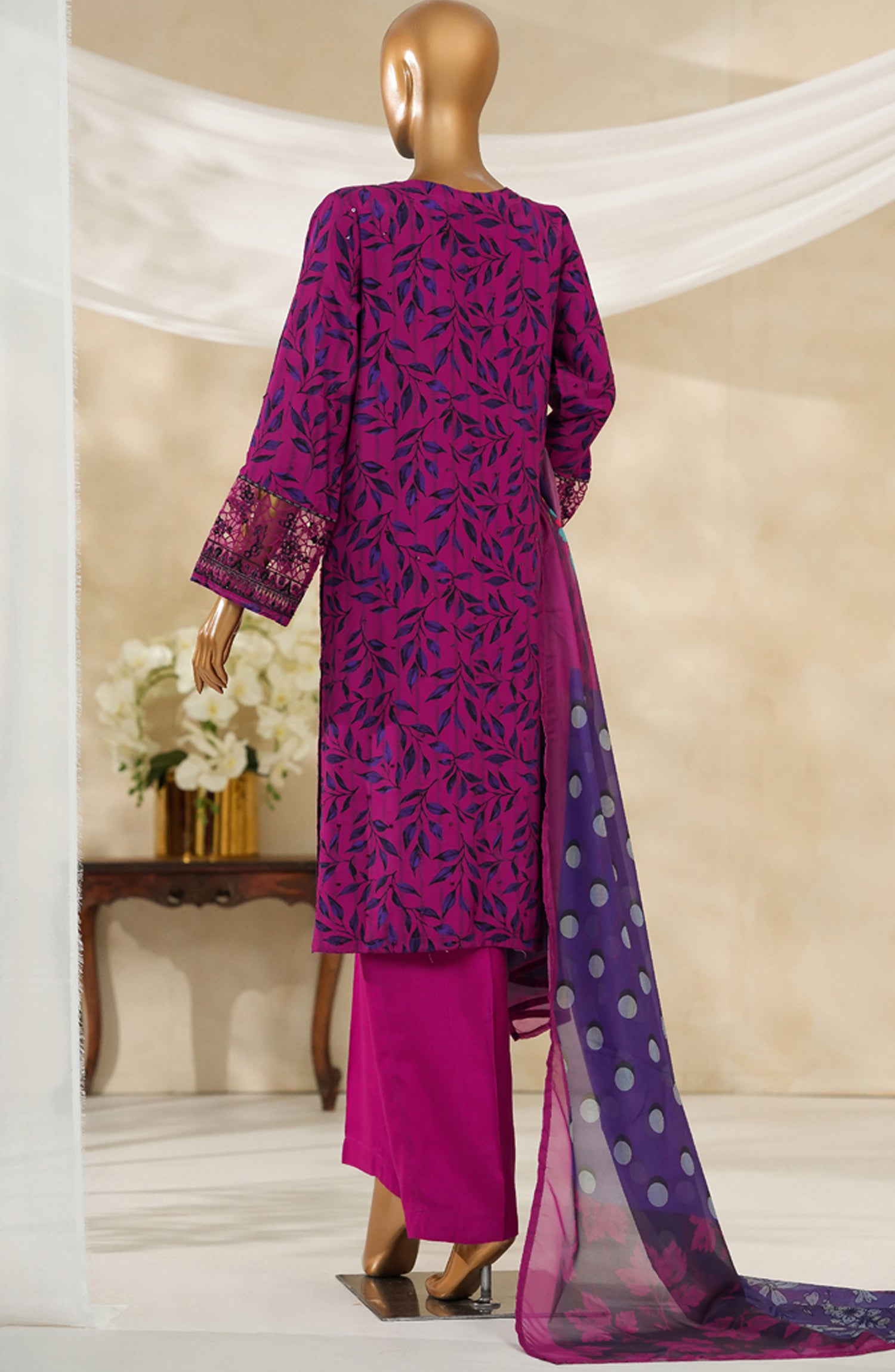 Home Majestic by HZ Textile Embroidered Silk Stitched 3 Piece Suit - PRE-115 - HZ25MJSL - Magenta - Formals Collection