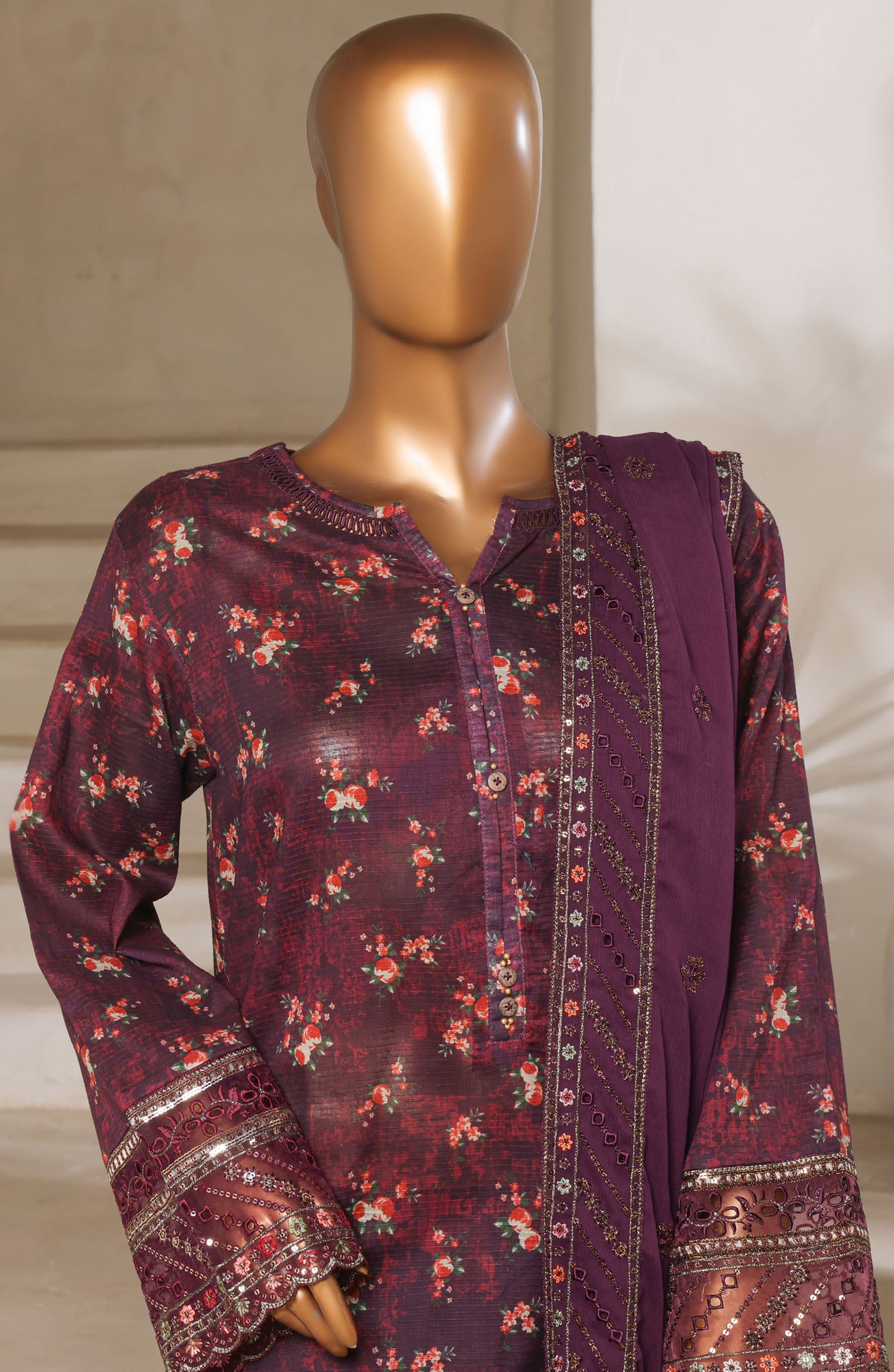 Stitch Printed & Emb Lawn Shirt