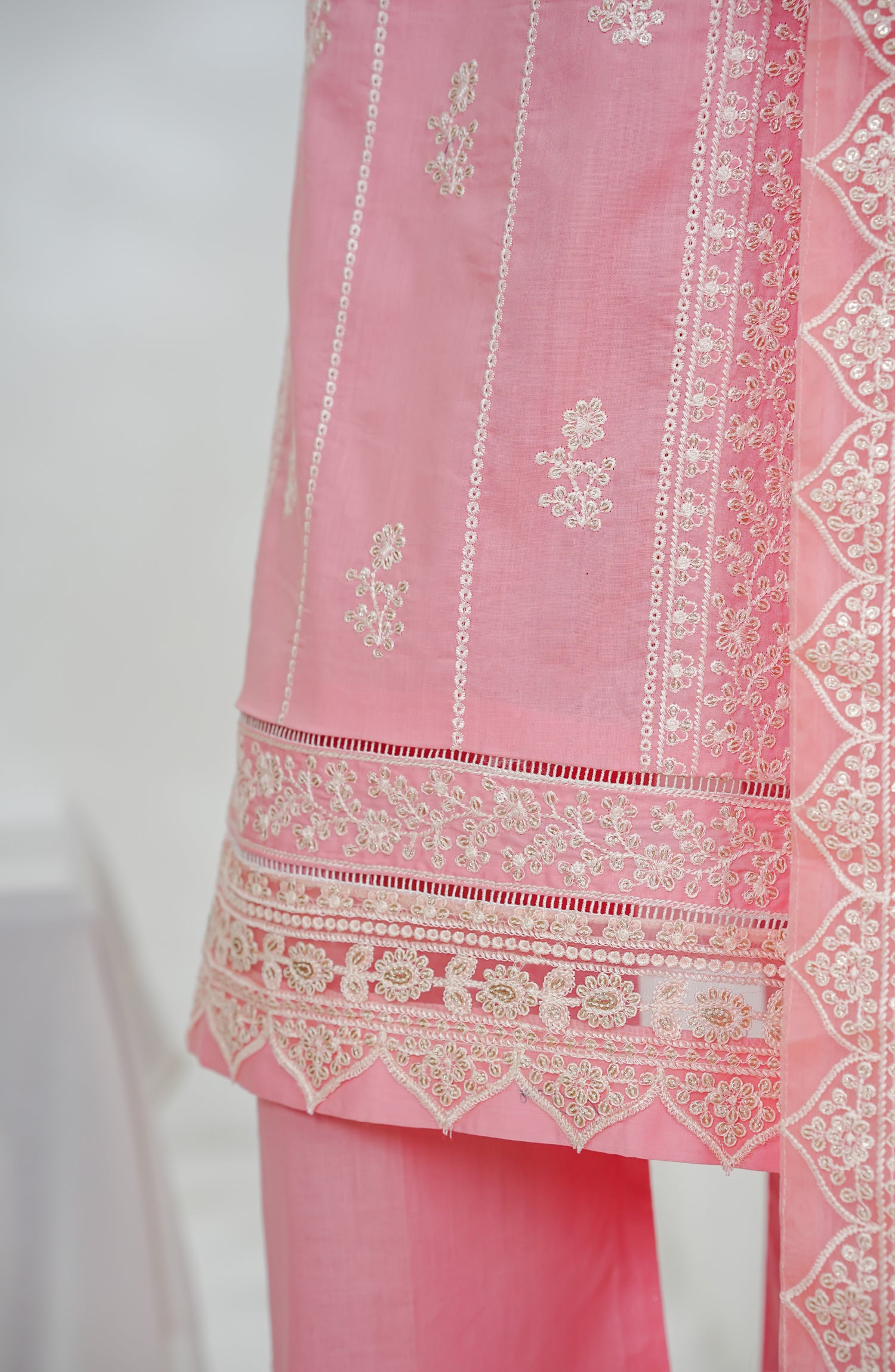 Resham Thread Embroidered Bamber Chiffon Dupatta