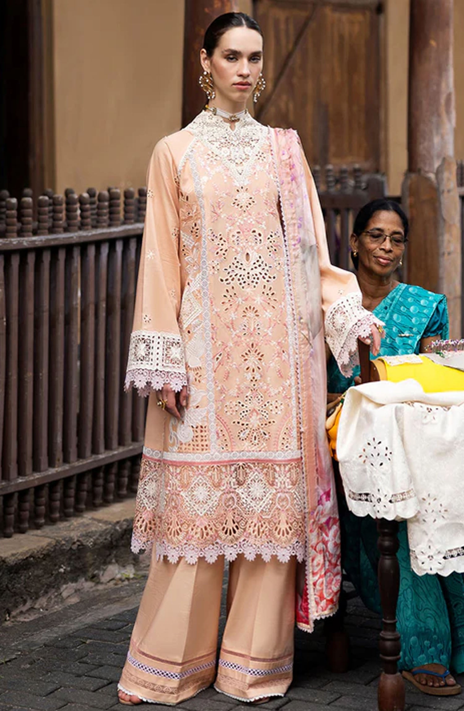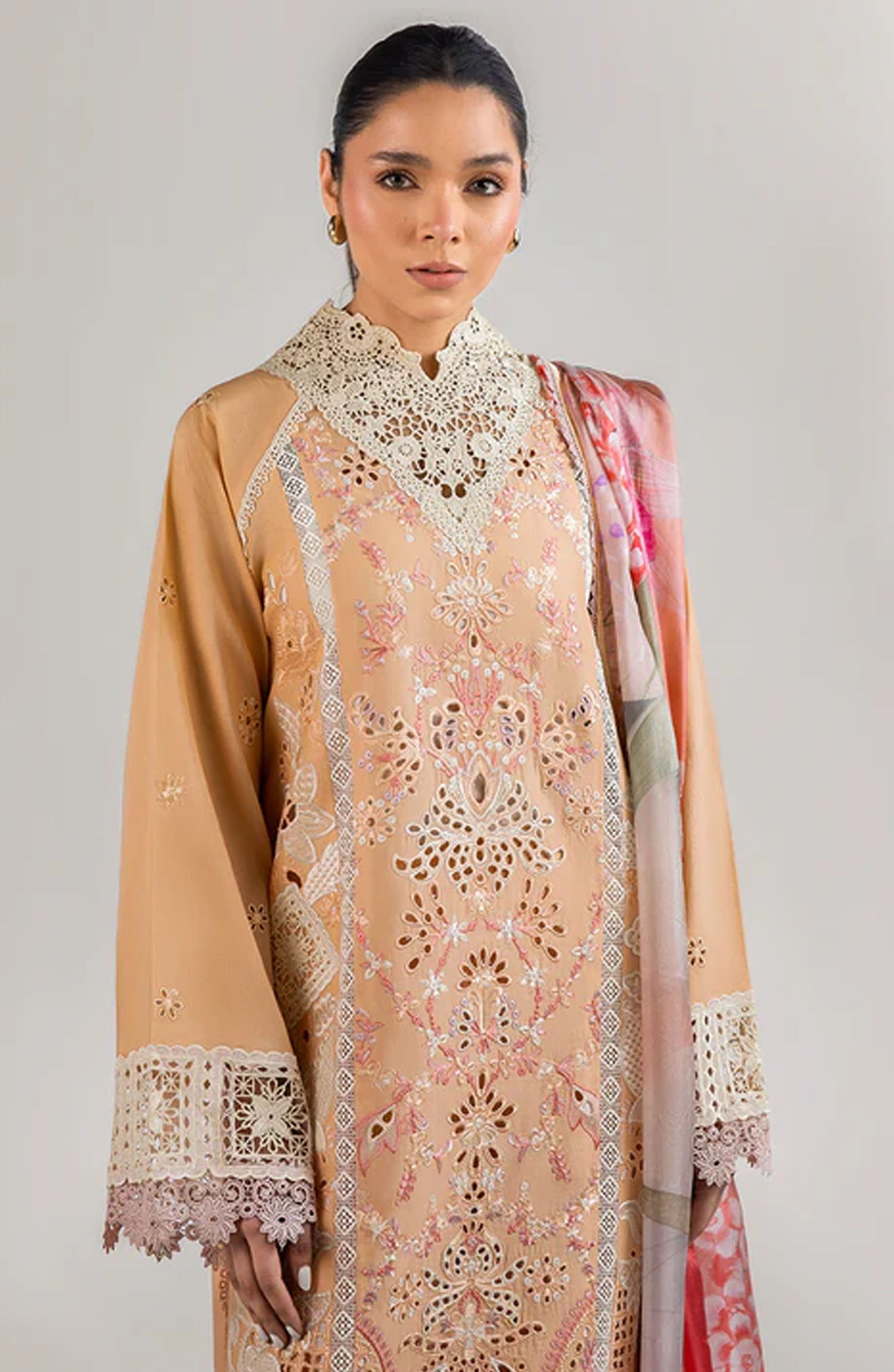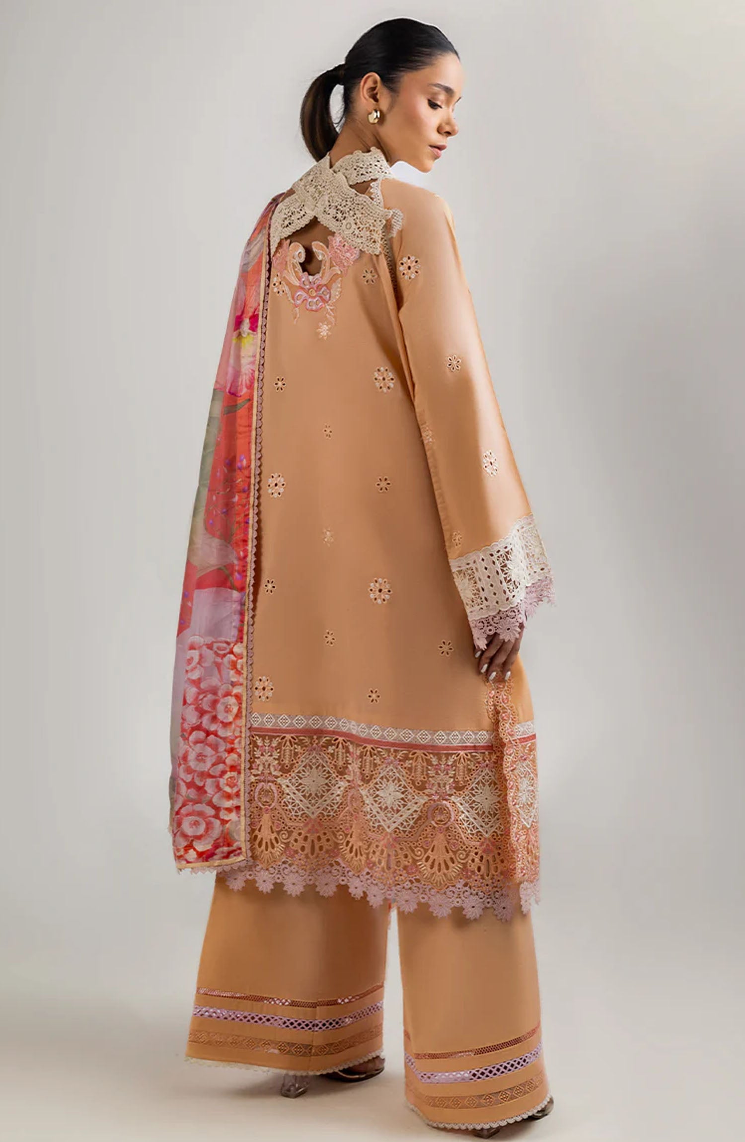 Laser cut embroidered front back daman