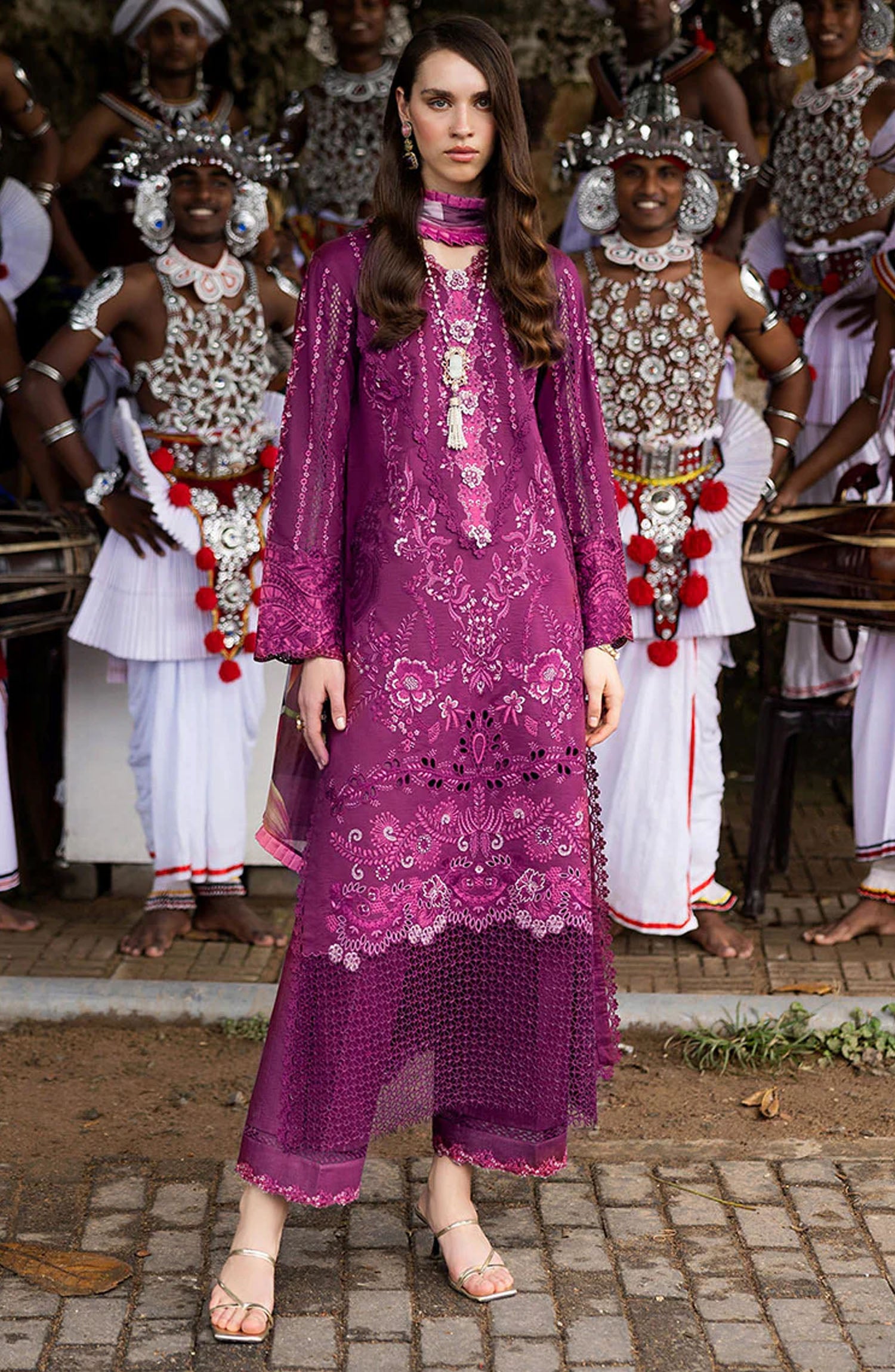 The standard style comes as a long-sleeved kameez with dupatta and trouser/shawlar.