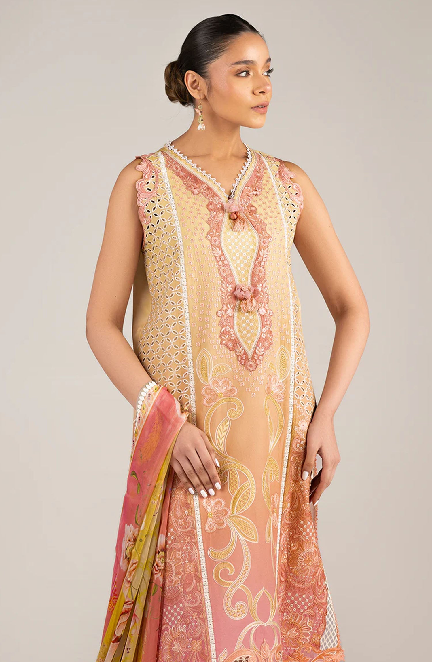 Printed chikan embroidered lawn front