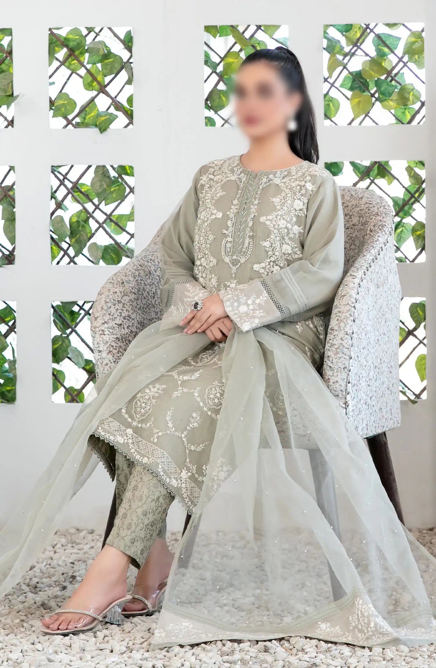 Manha - Fancy Stitched Organza Collection has been styled in the image for photography and illustrative purposes.
