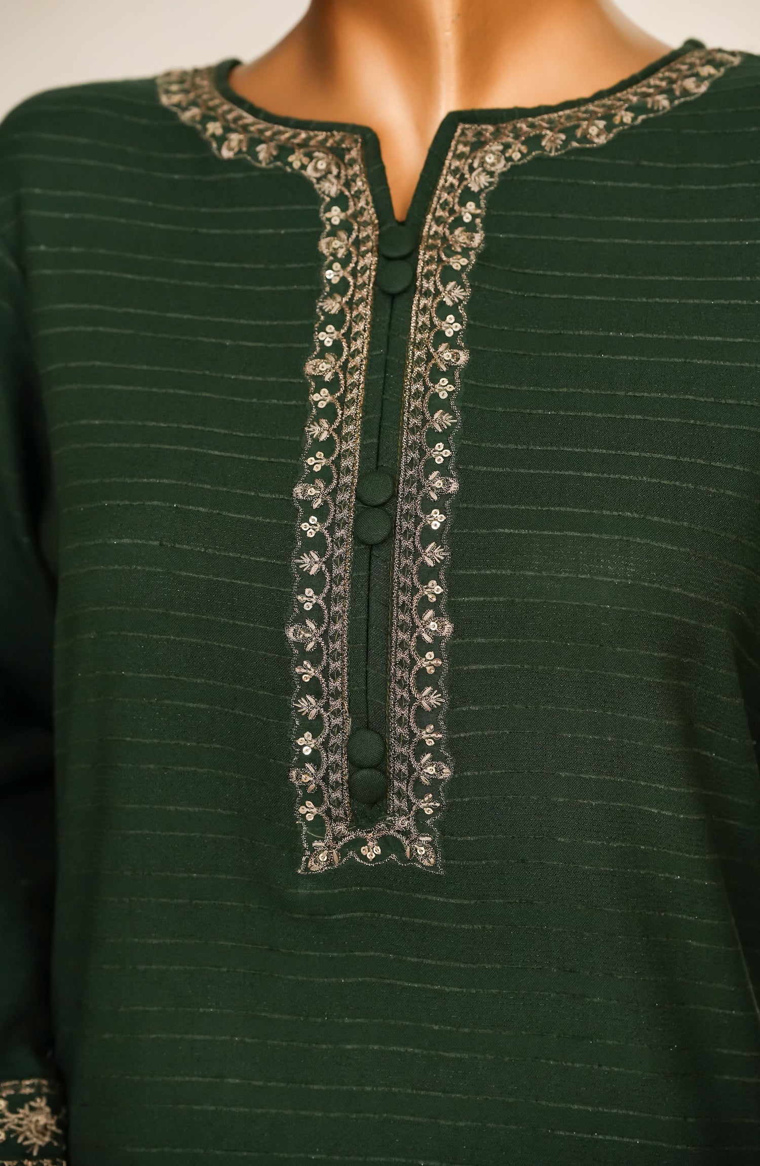 Dyed Embroidered Zari Self Dhanak Fabric for Shirt with Embellishments