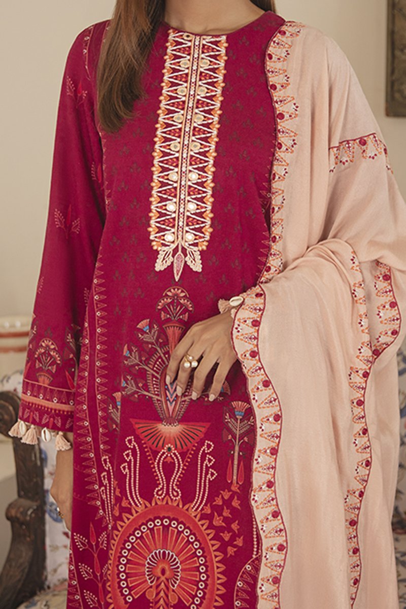 DIGITAL PRINTED KHADDAR SHIRT,1 EMBROIDERED NECKLINE