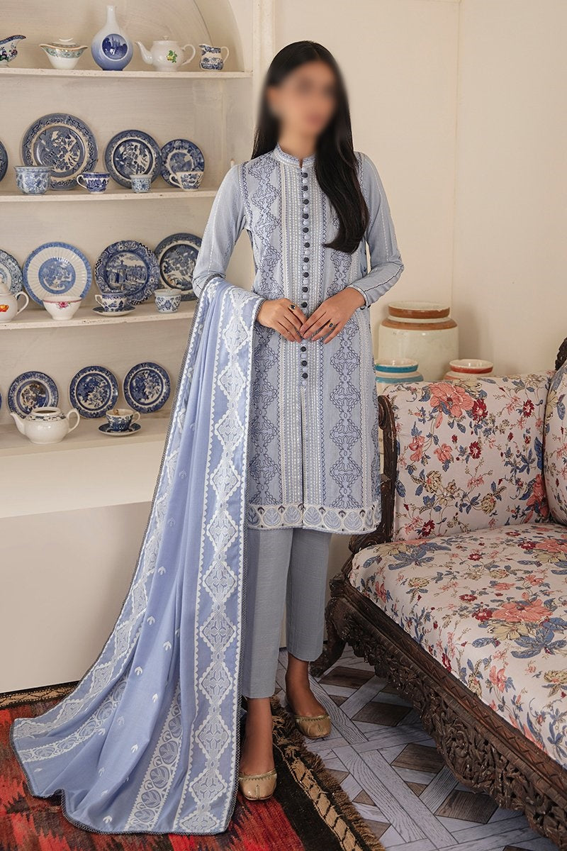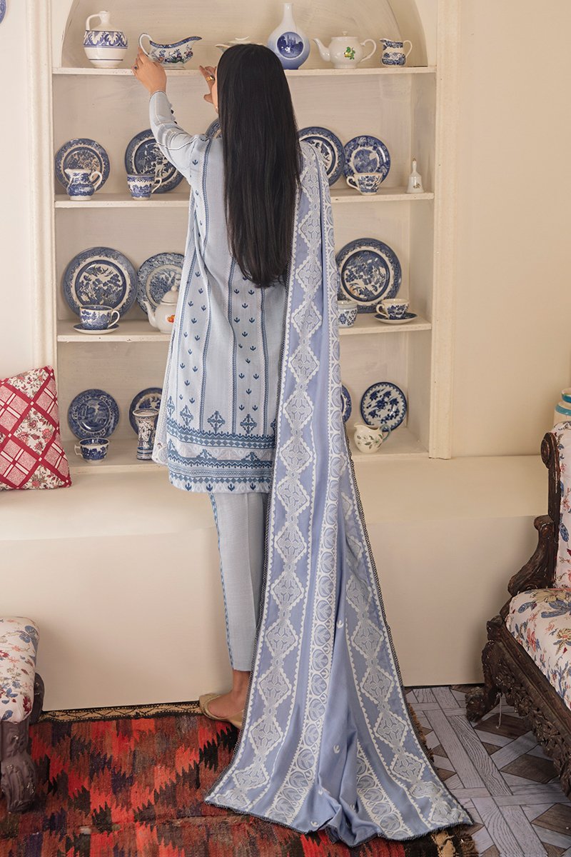 DYED EMBROIDERED KHADDAR FRONT AND SLEEVES, DIGITAL PRINTED BACK