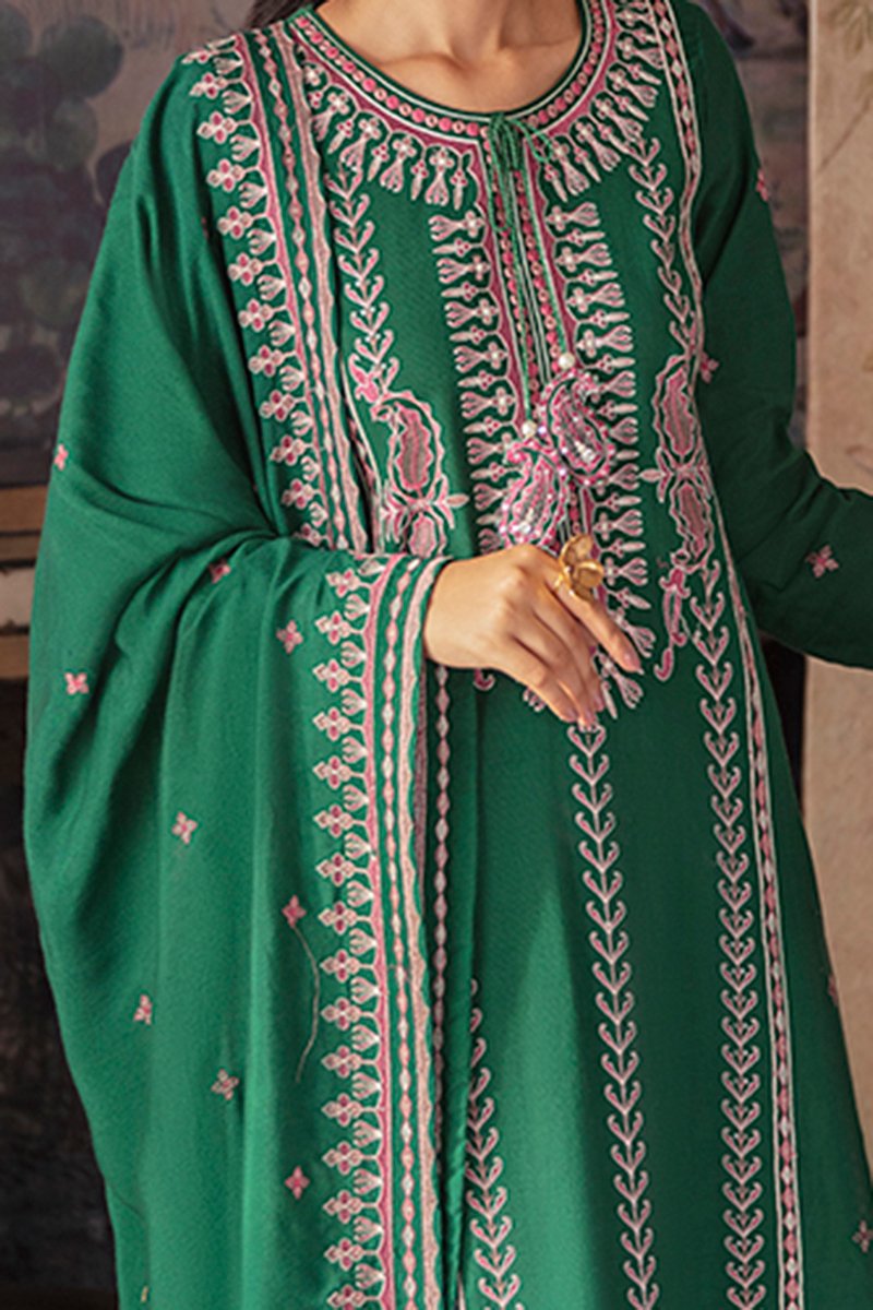 DYED EMBROIDERED KHADDAR FRONT AND SLEEVES, DIGITAL PRINTED BACK,40 EMBROIDERED PATTI FOR SHIRT,100 EMBROIDERED PATTI FOR PANEL
