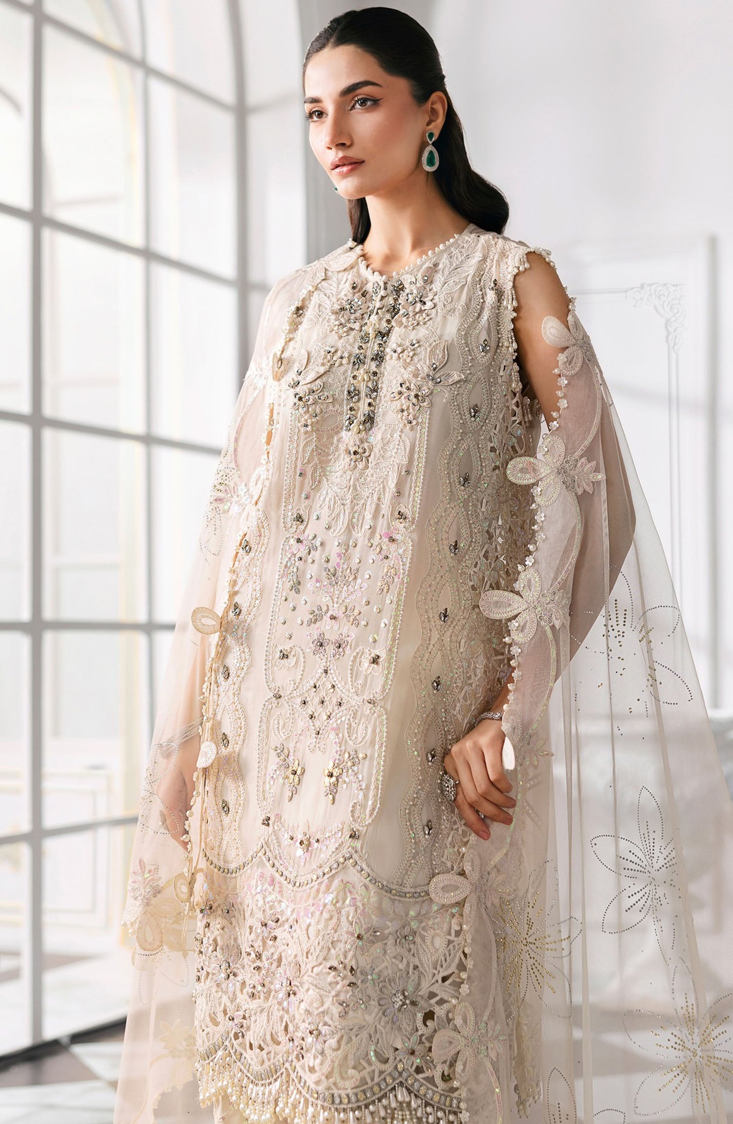 Maria B Embroidered Chiffon Unstitched 4 Piece Suit - D-7 - MB25BDF - Off White - Formal Collection