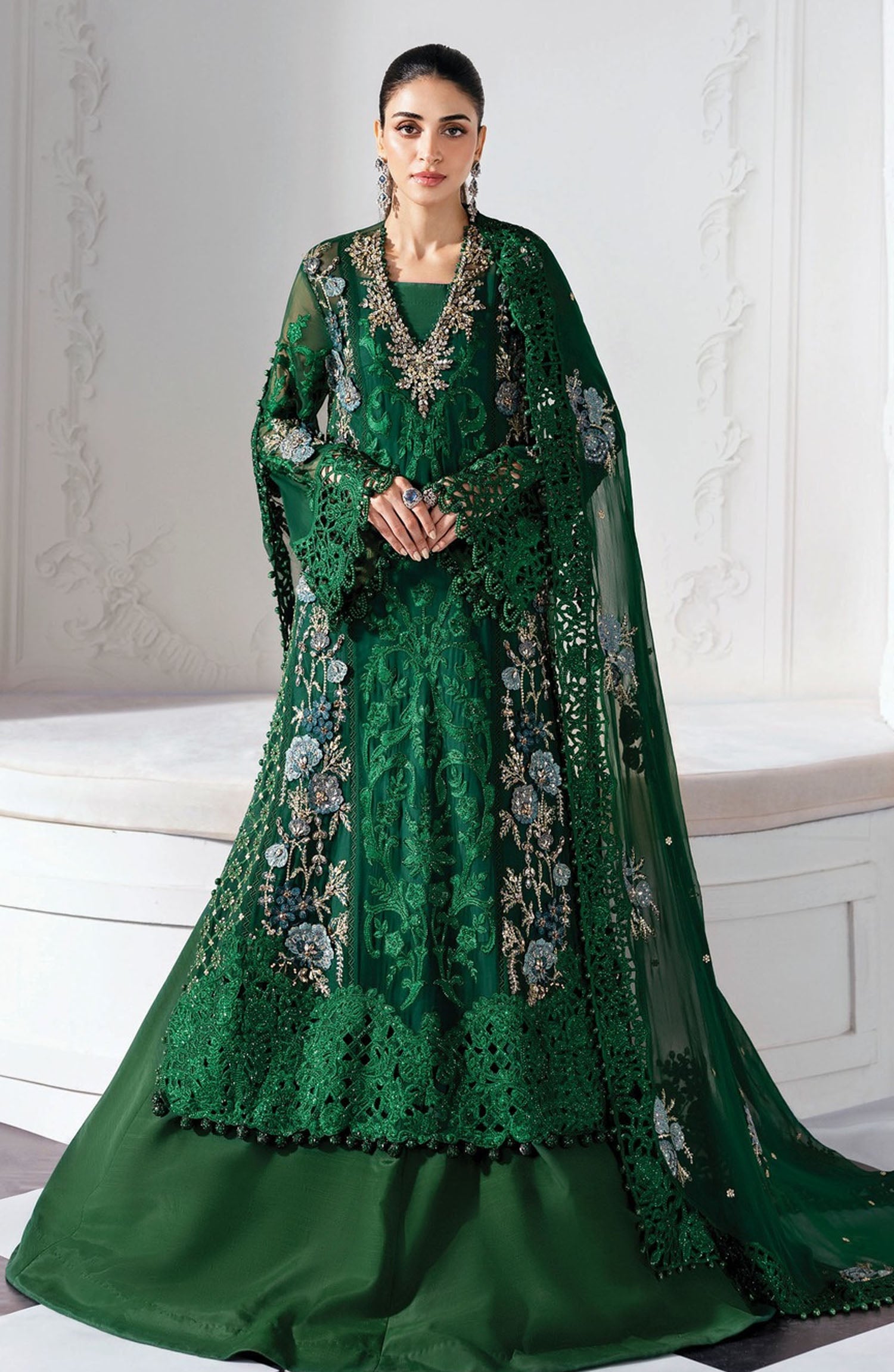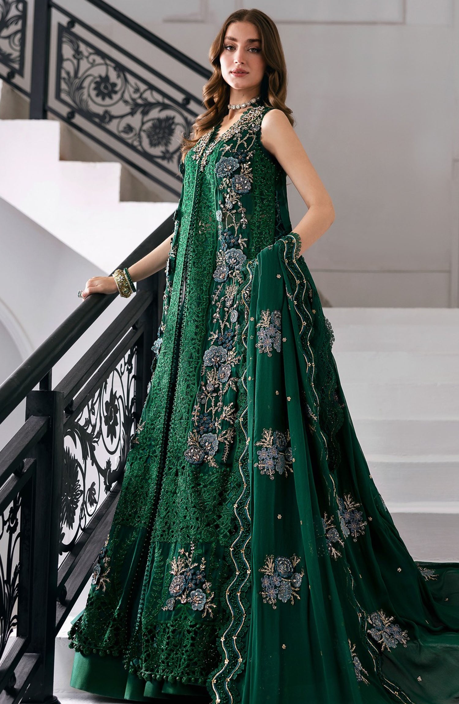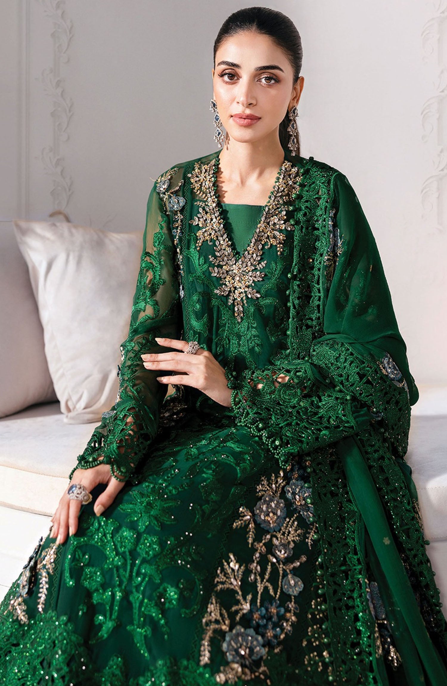 The standard style comes as a long-sleeved kameez with dupatta and trouser/shawlar.