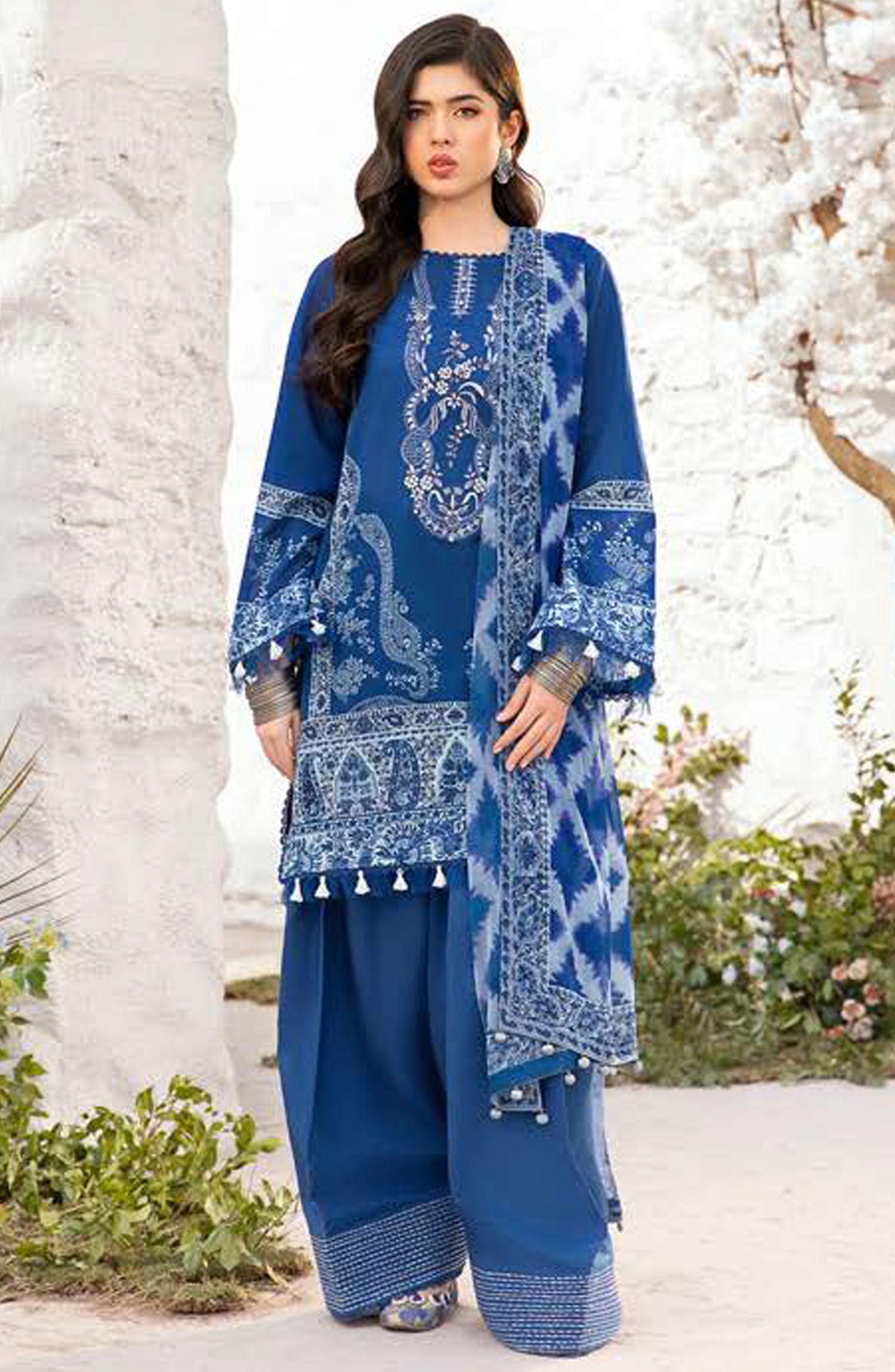 Maria B Embroidered Lawn Unstitched 3 Piece Suit - D-03 B - MB25MB - Blue - Summer Collection
