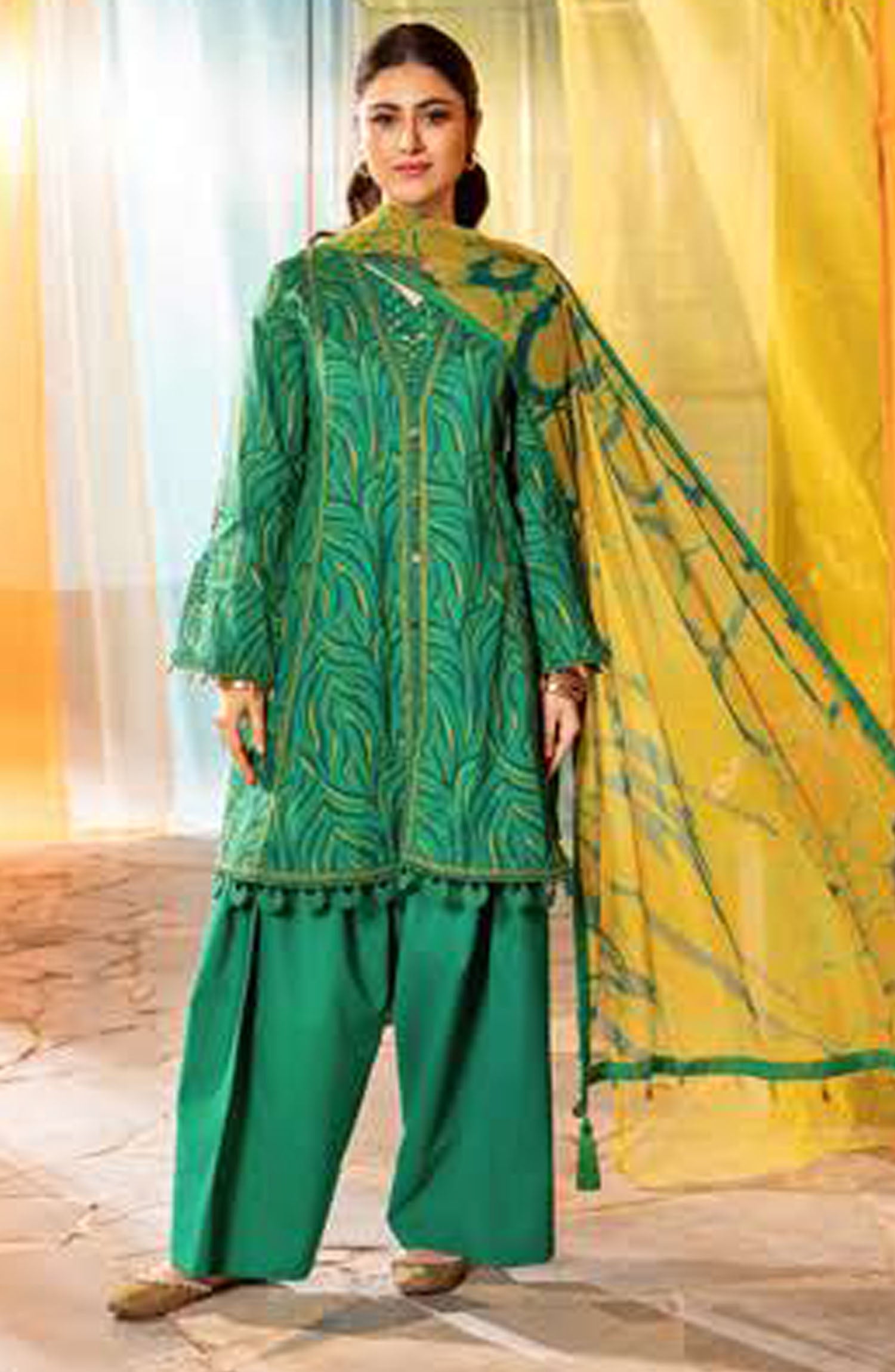 Maria B Embroidered Lawn Unstitched 3 Piece Suit - D-04 A - MB25MB - Green - Summer Collection