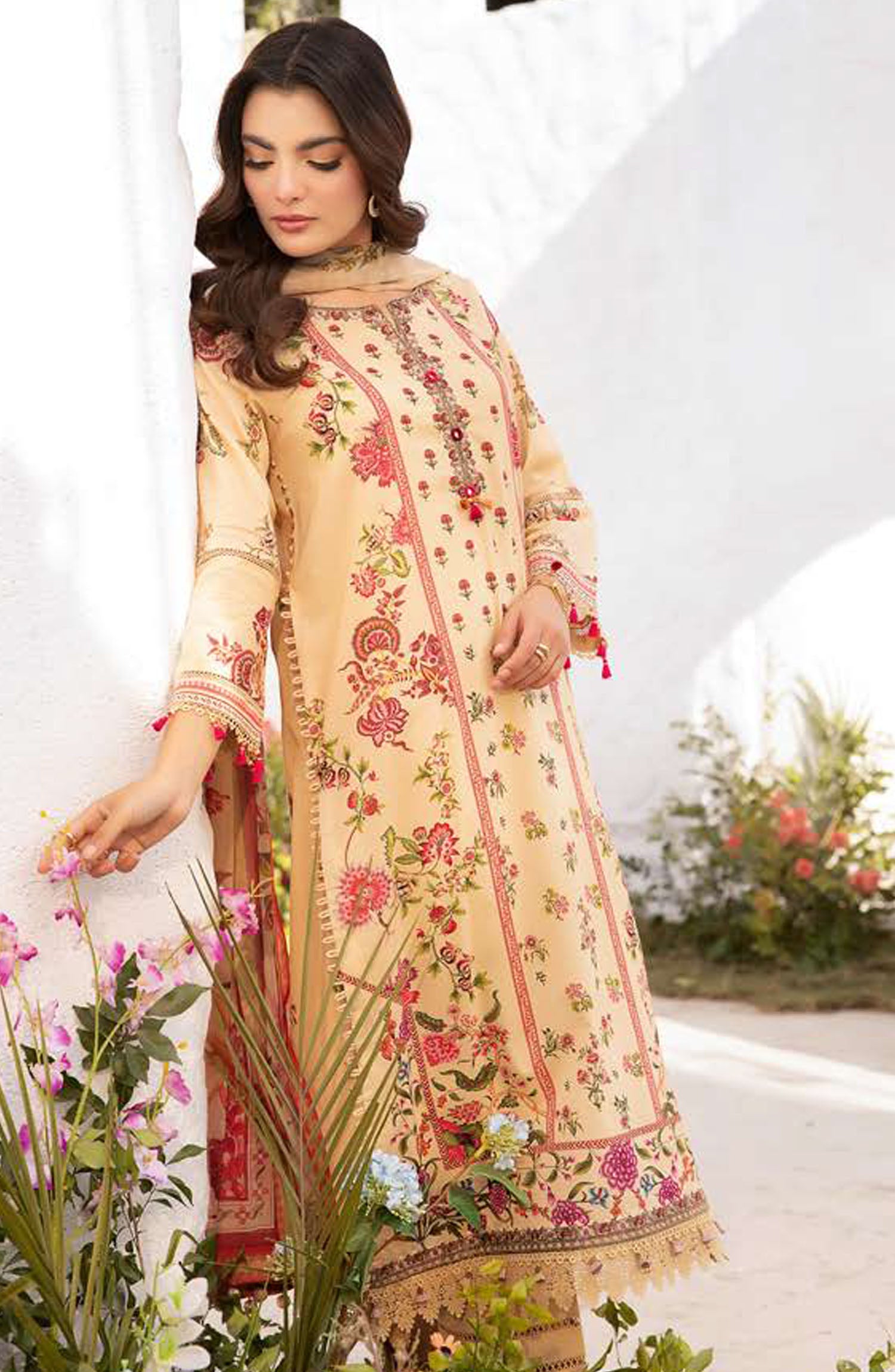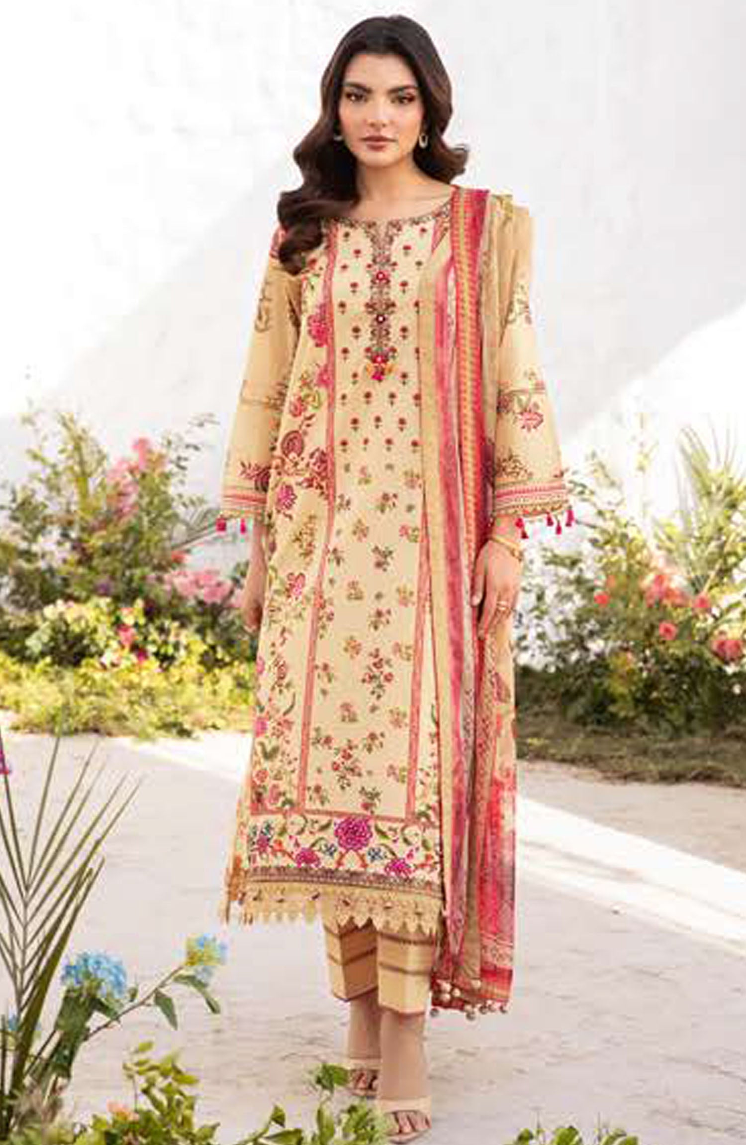 Maria B Embroidered Lawn Unstitched 3 Piece Suit - D-05 A - MB25MB - Beige - Summer Collection