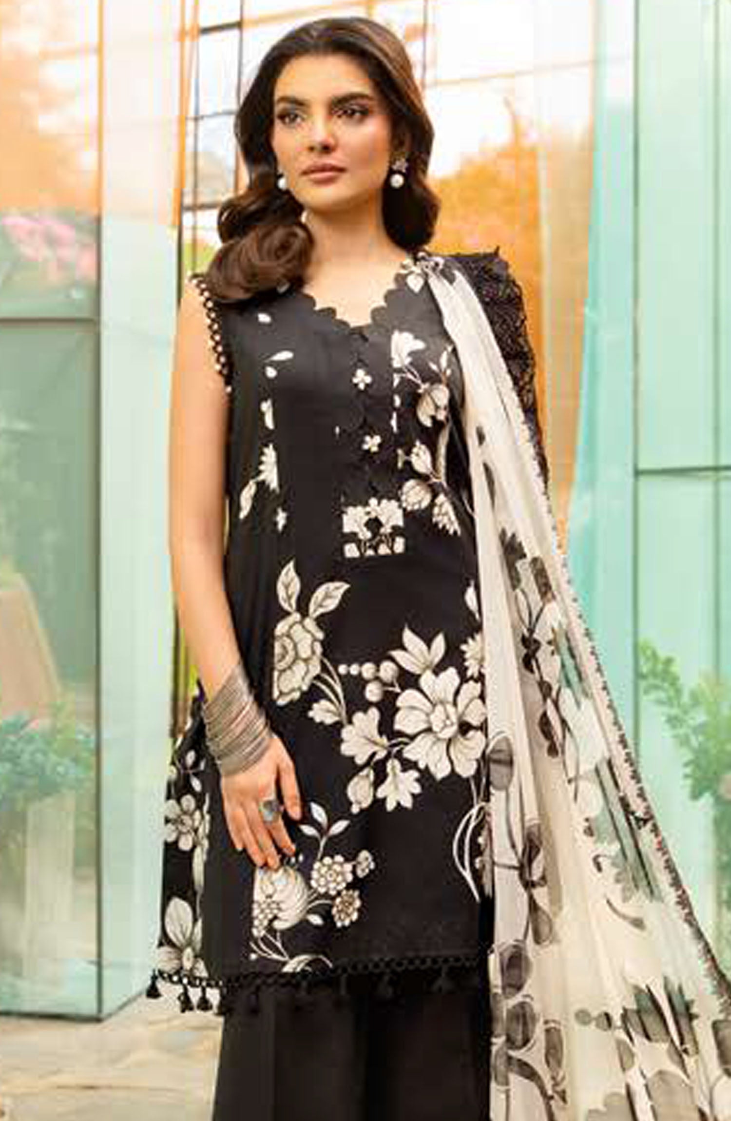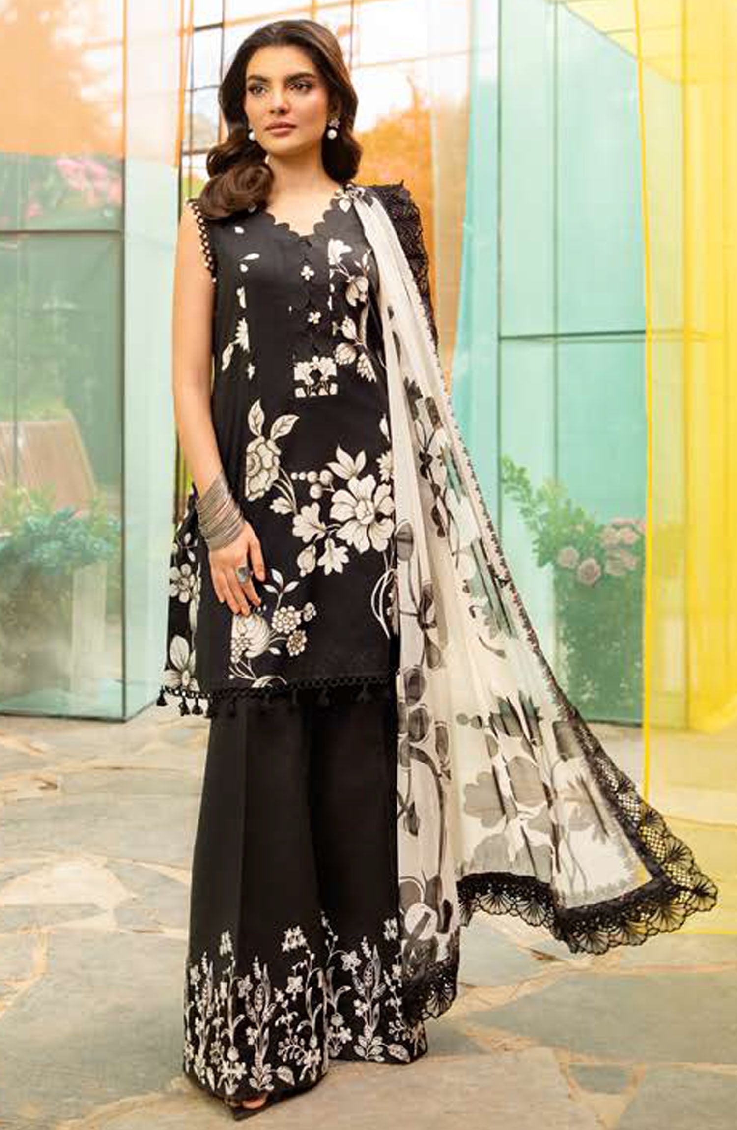 Maria B Embroidered Lawn Unstitched 3 Piece Suit - D-06 B - MB25MB - Black - Summer Collection