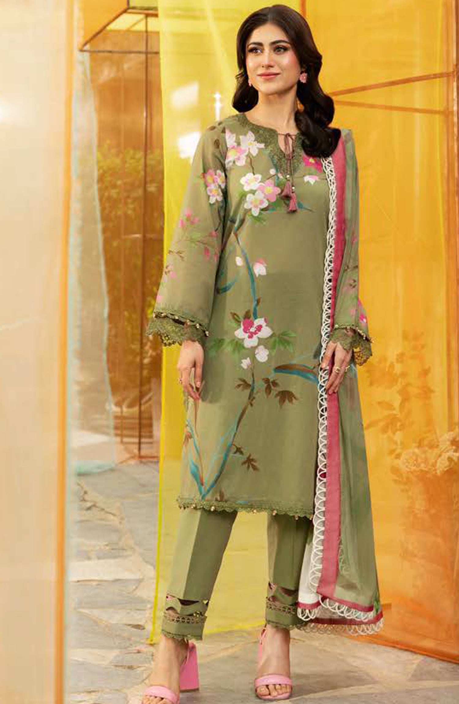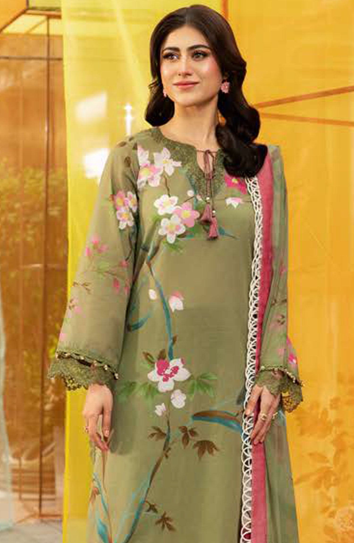 Maria B Embroidered Lawn Unstitched 3 Piece Suit - D-07 A - MB25MB - Green - Summer Collection