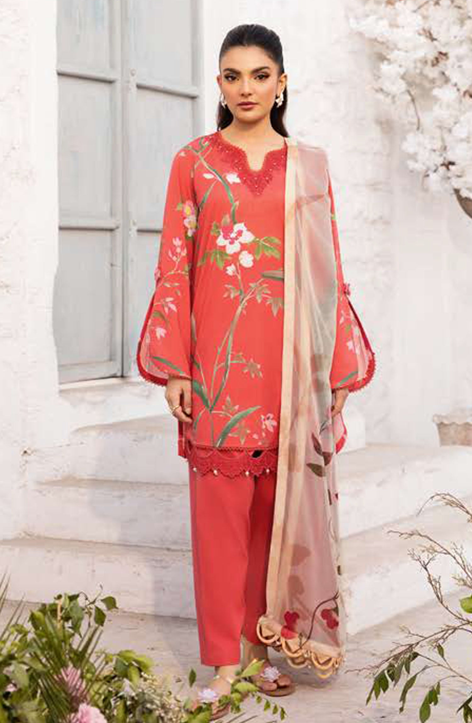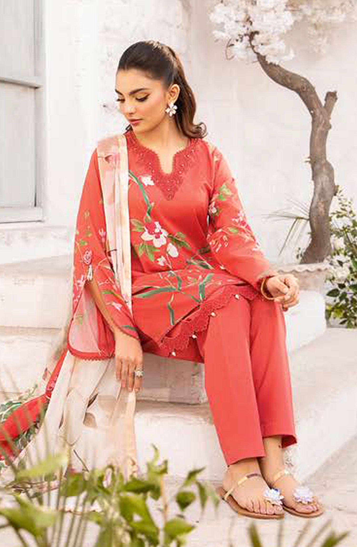 Maria B Embroidered Lawn Unstitched 3 Piece Suit - D-07 B - MB25MB - Pink - Summer Collection