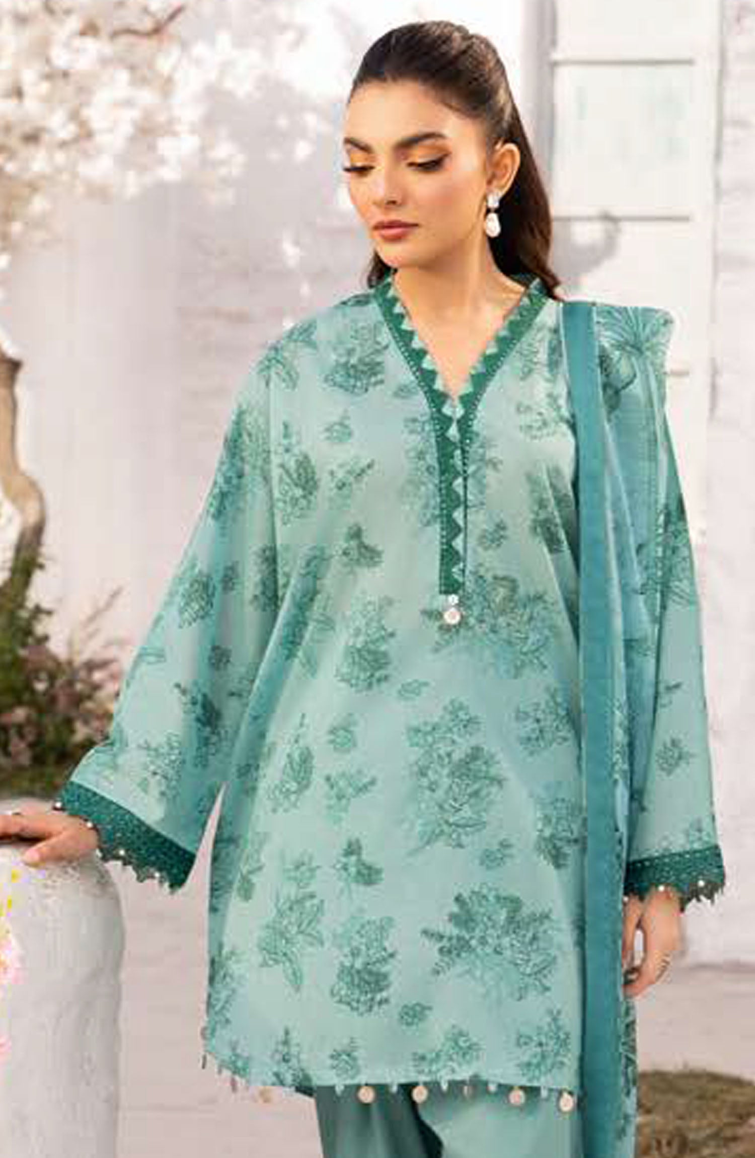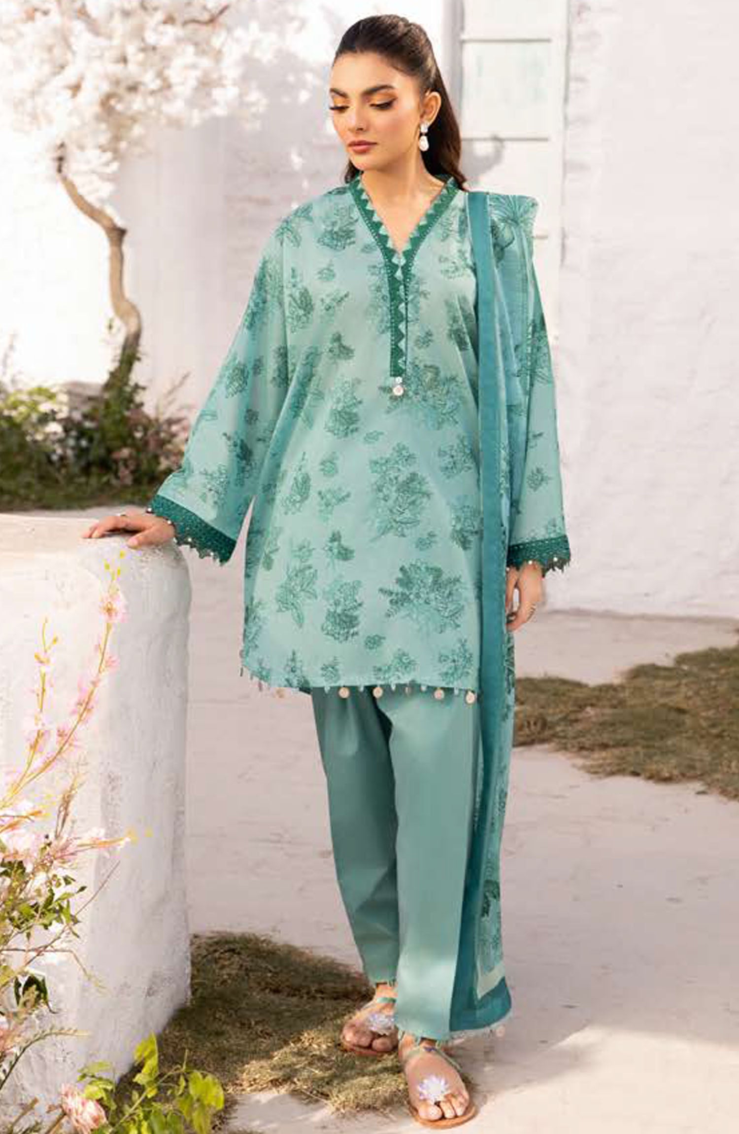 Maria B Embroidered Lawn Unstitched 3 Piece Suit - D-08 B - MB25MB - Sea Green - Summer Collection