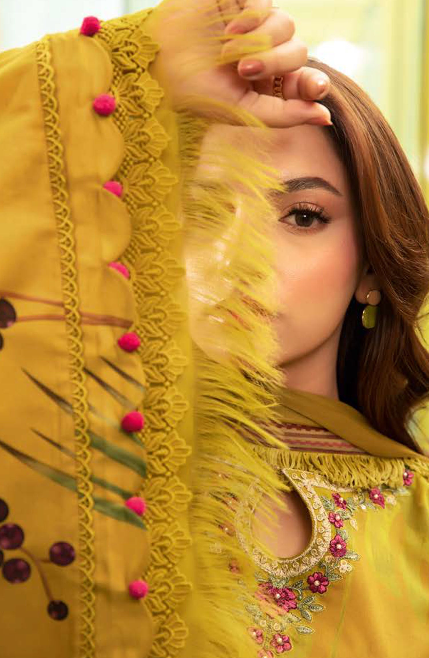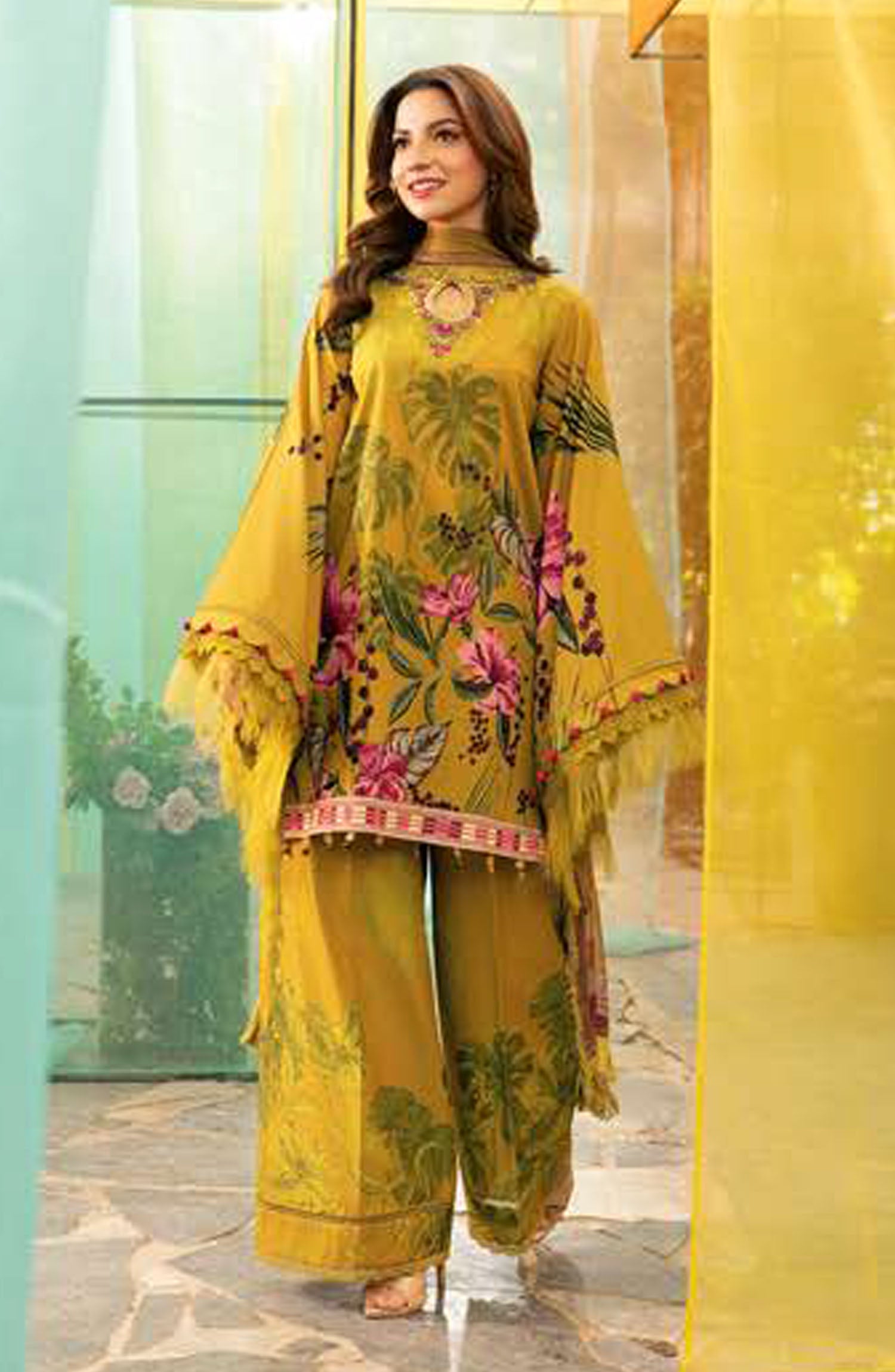 Maria B Embroidered Lawn Unstitched 3 Piece Suit - D-10 A - MB25MB - Yellow - Summer Collection