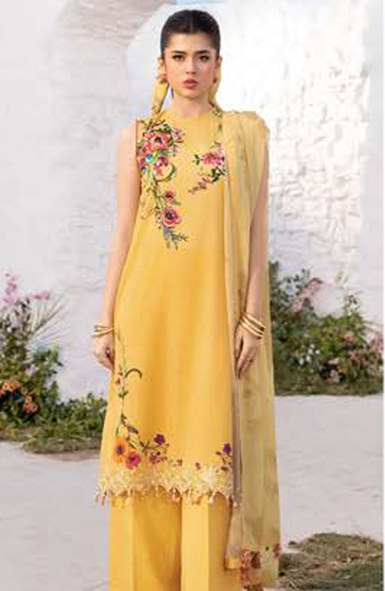 Maria B Embroidered Lawn Unstitched 3 Piece Suit - D-12 A - MB25MB - Yellow - Summer Collection