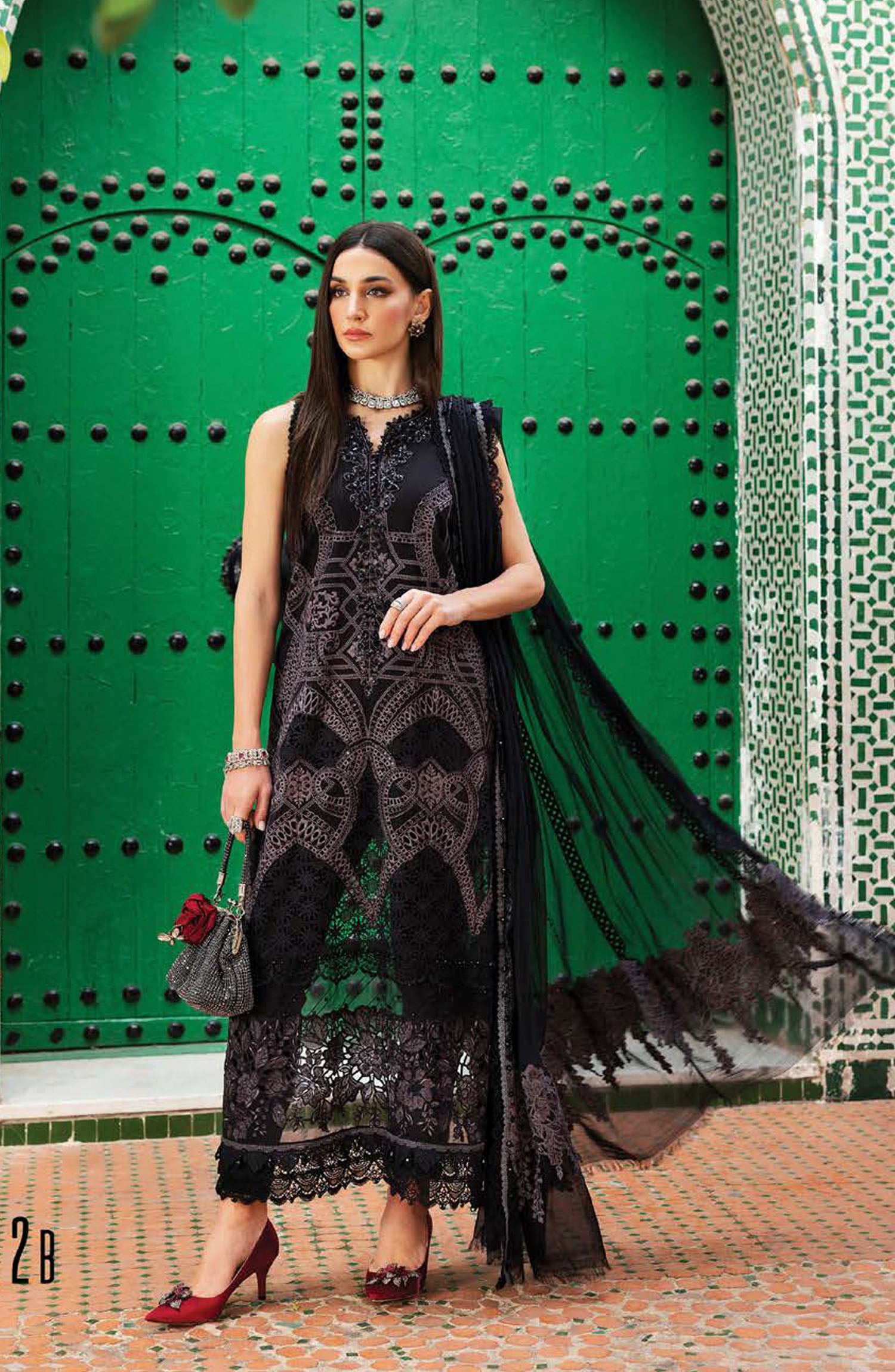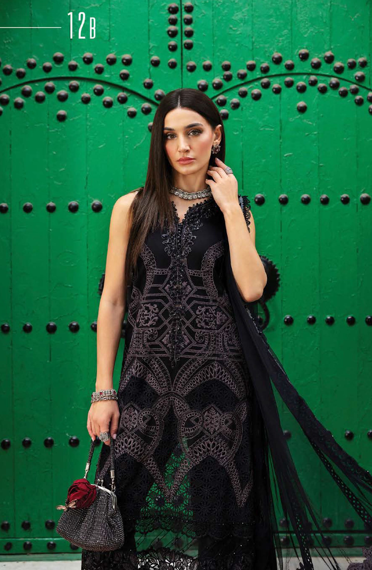 Maria B Embroidered Lawn Unstitched 3 Piece Suit - D-12B - MAB25LLV25 - Black - Summer Collection