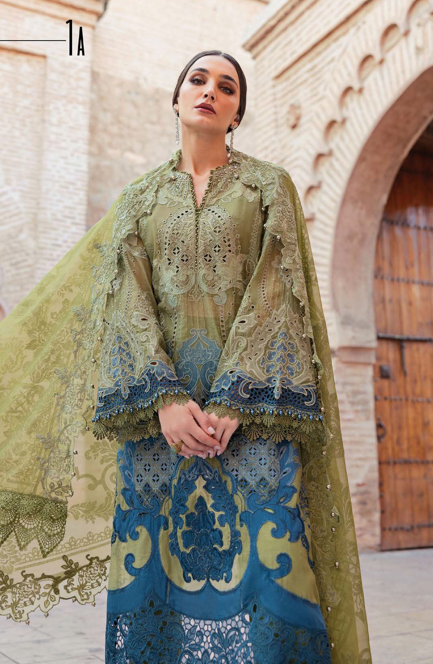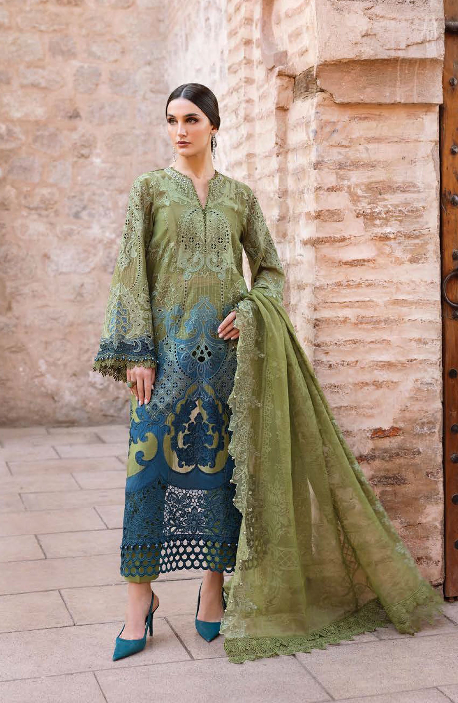 Maria B Embroidered Lawn Unstitched 3 Piece Suit - D-1A - MAB25LLV25 - Green - Summer Collection