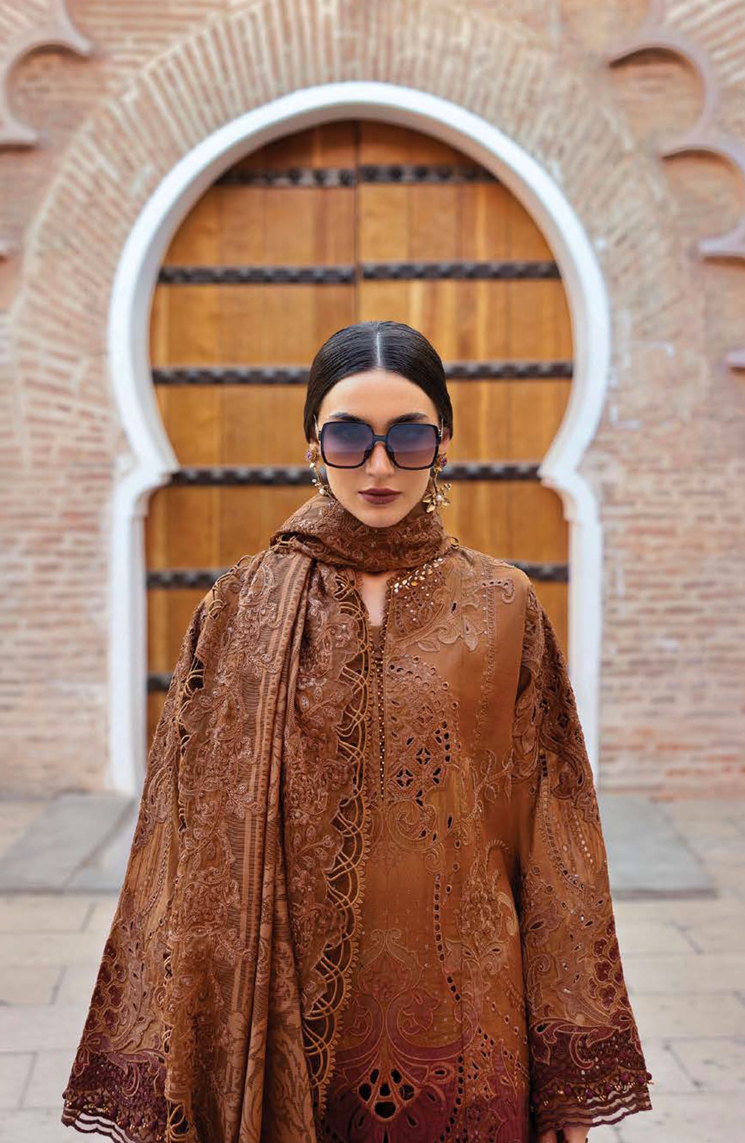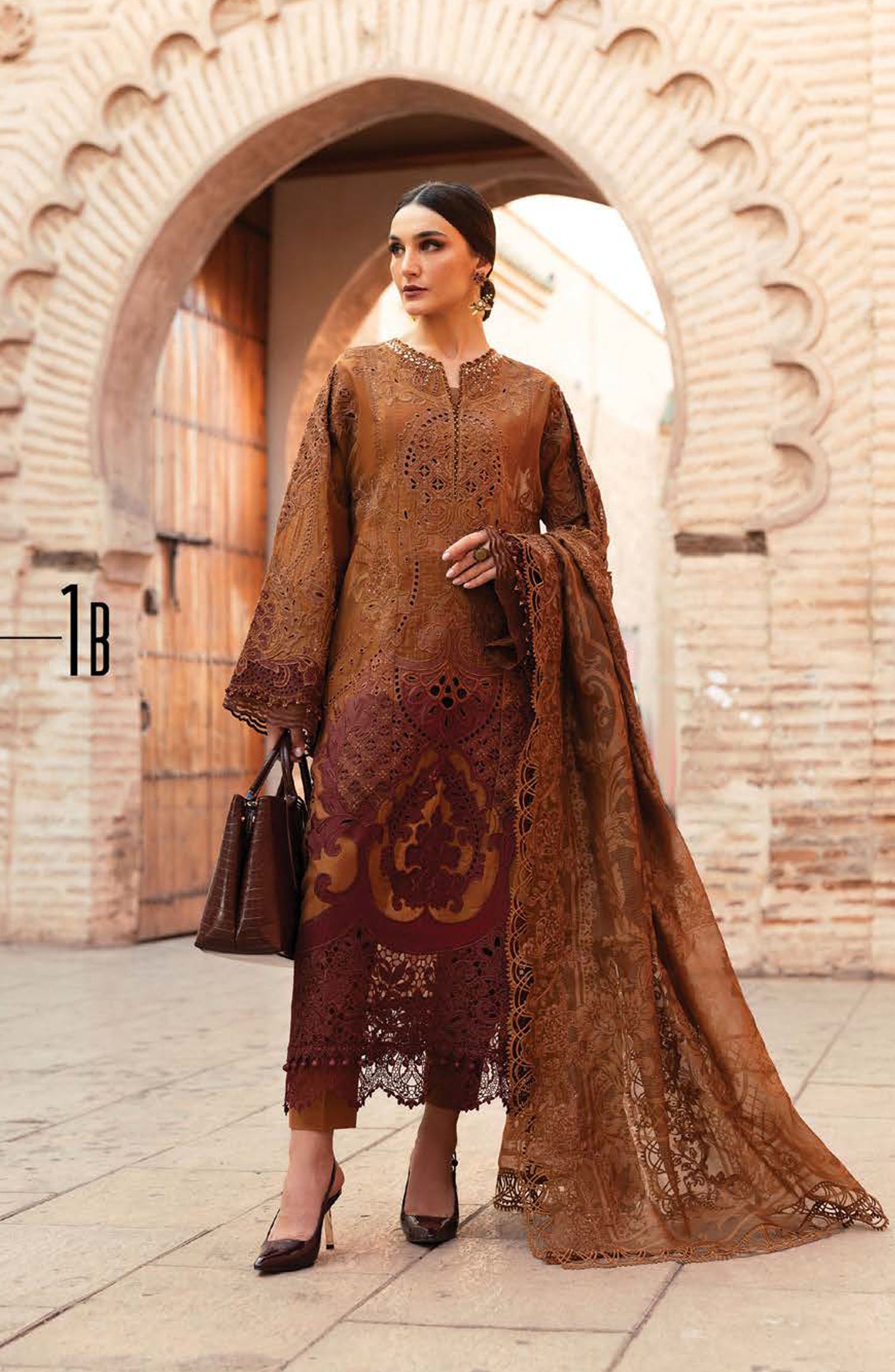 Maria B Embroidered Lawn Unstitched 3 Piece Suit - D-1B - MAB25LLV25 - Brown - Summer Collection