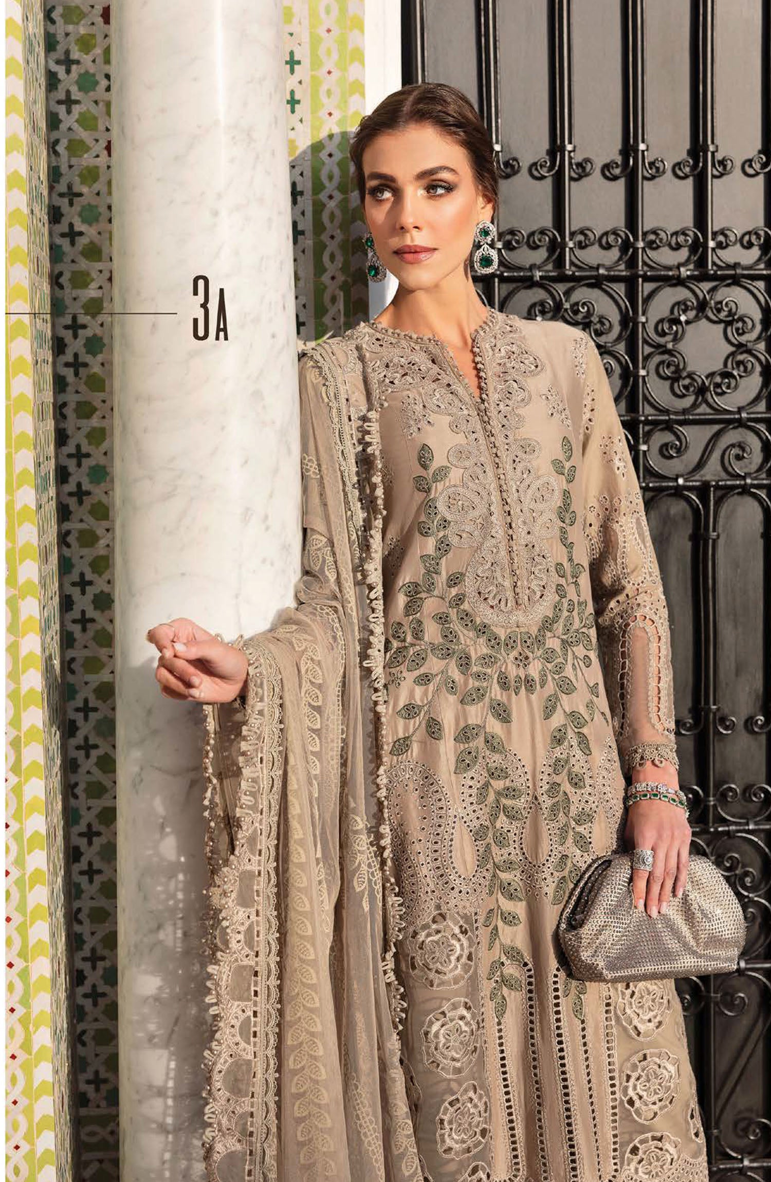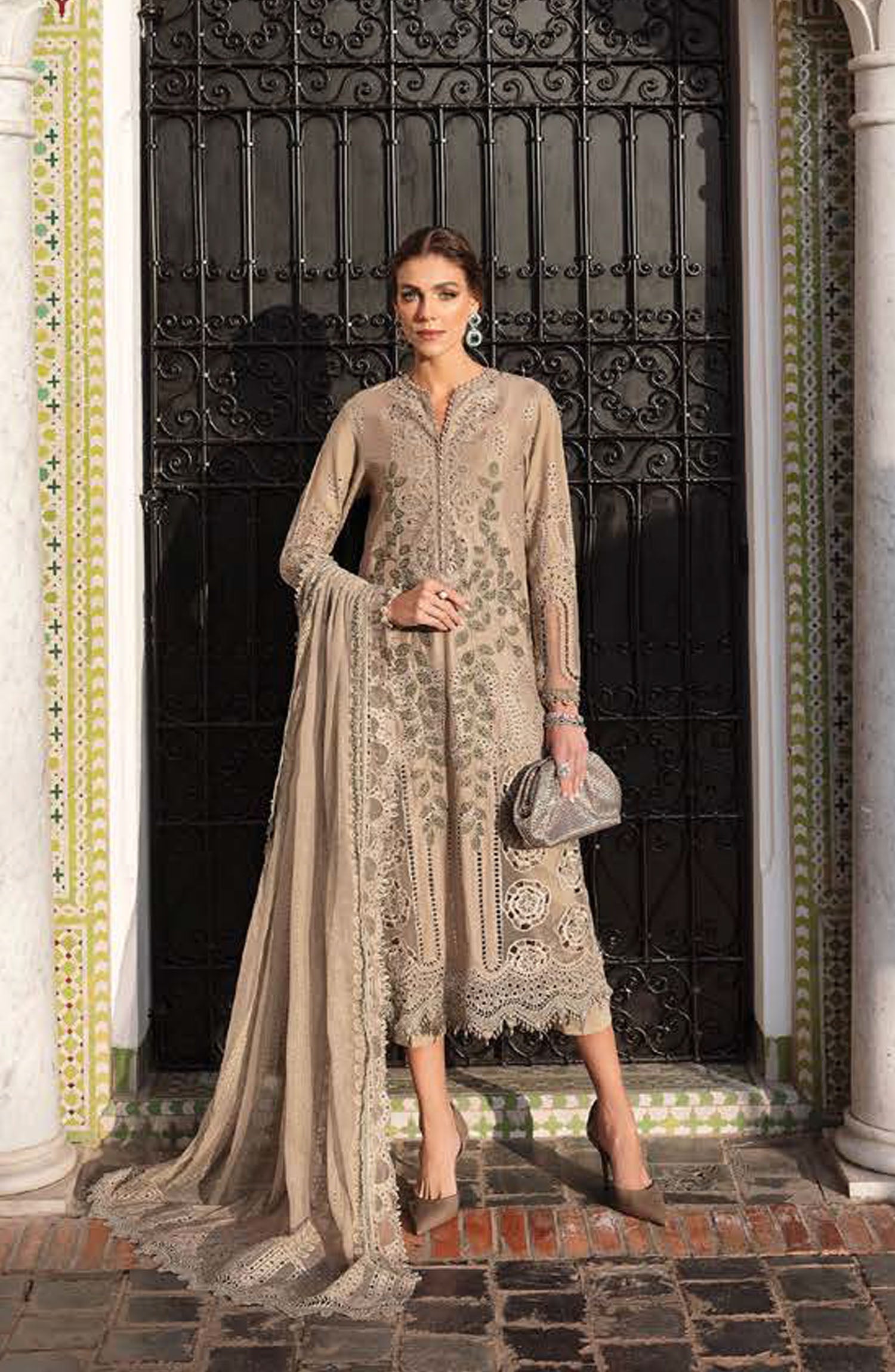 Maria B Embroidered Lawn Unstitched 3 Piece Suit - D-3A - MAB25LLV25 - Beige - Summer Collection