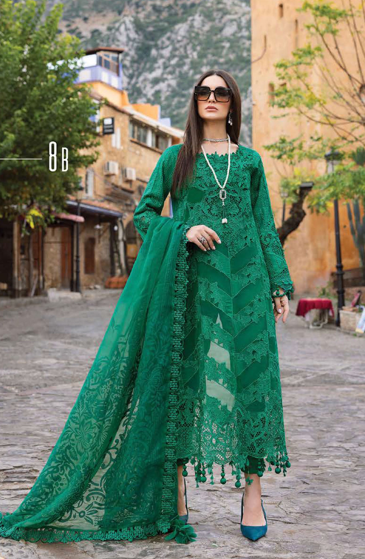 Maria B Embroidered Lawn Unstitched 3 Piece Suit - D-8B - MAB25LLV25 - Green - Summer Collection