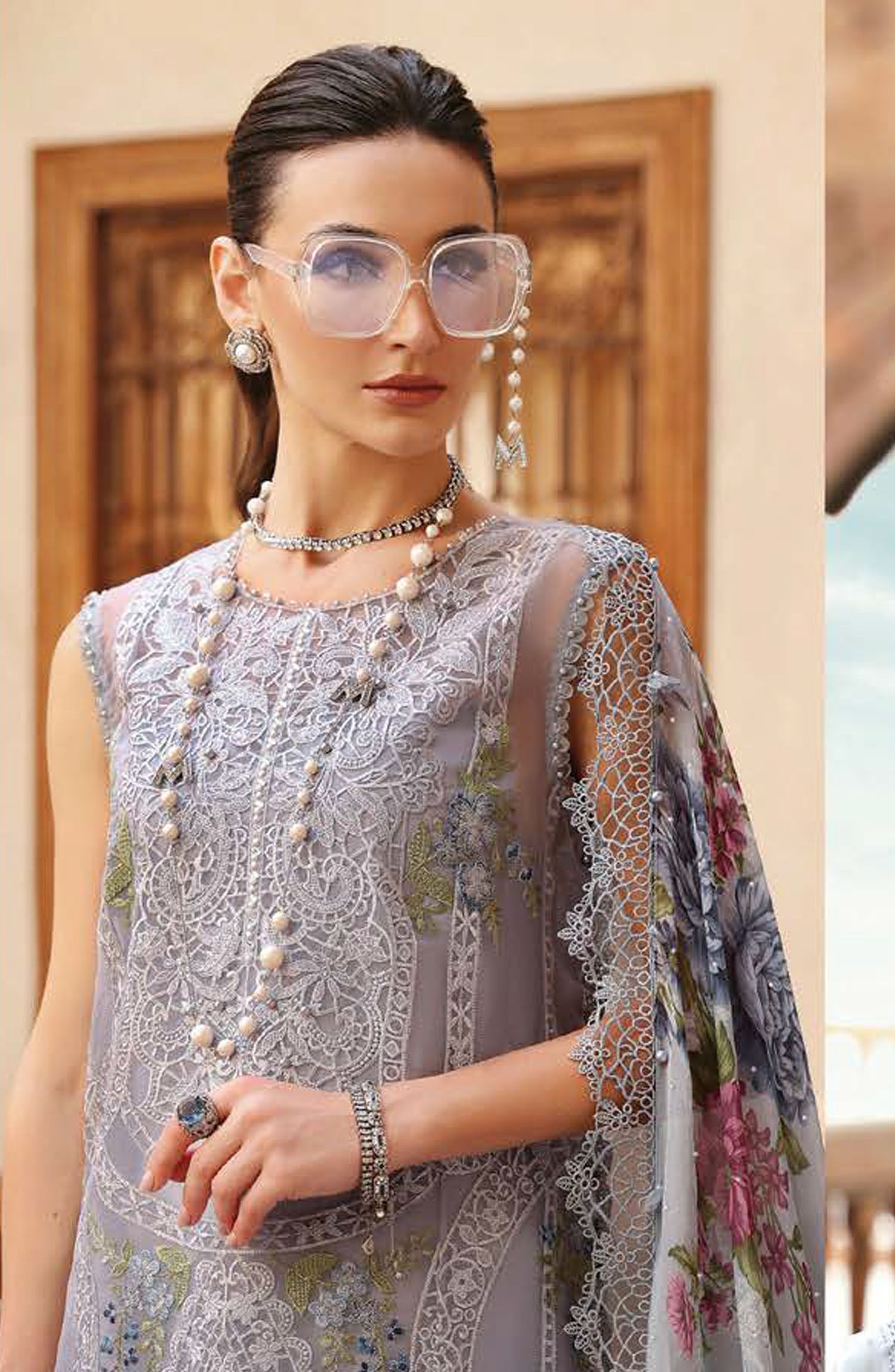Maria B Embroidered Lawn Unstitched 3 Piece Suit - D-9B - MAB25LLV25 - Grey - Summer Collection