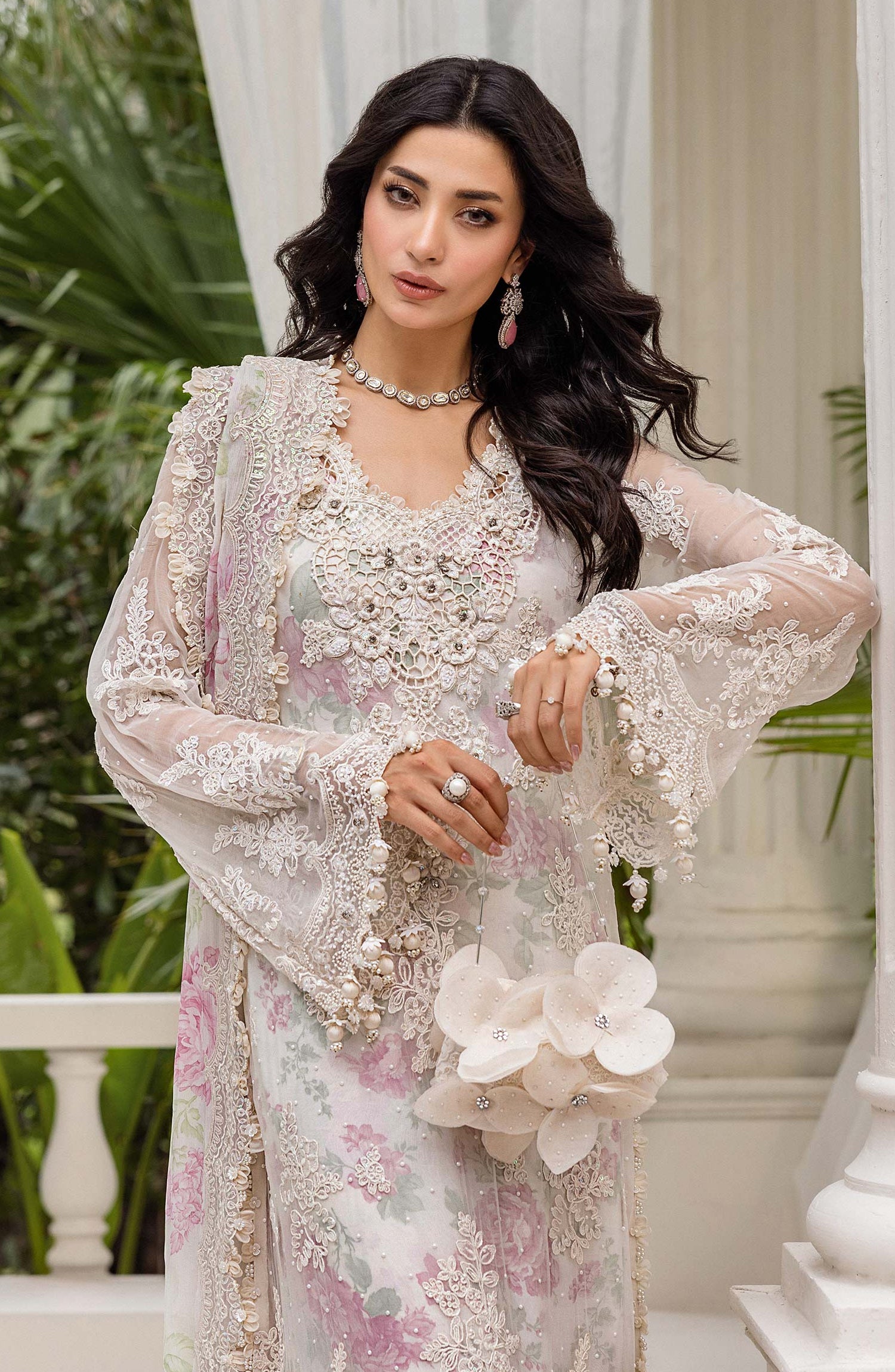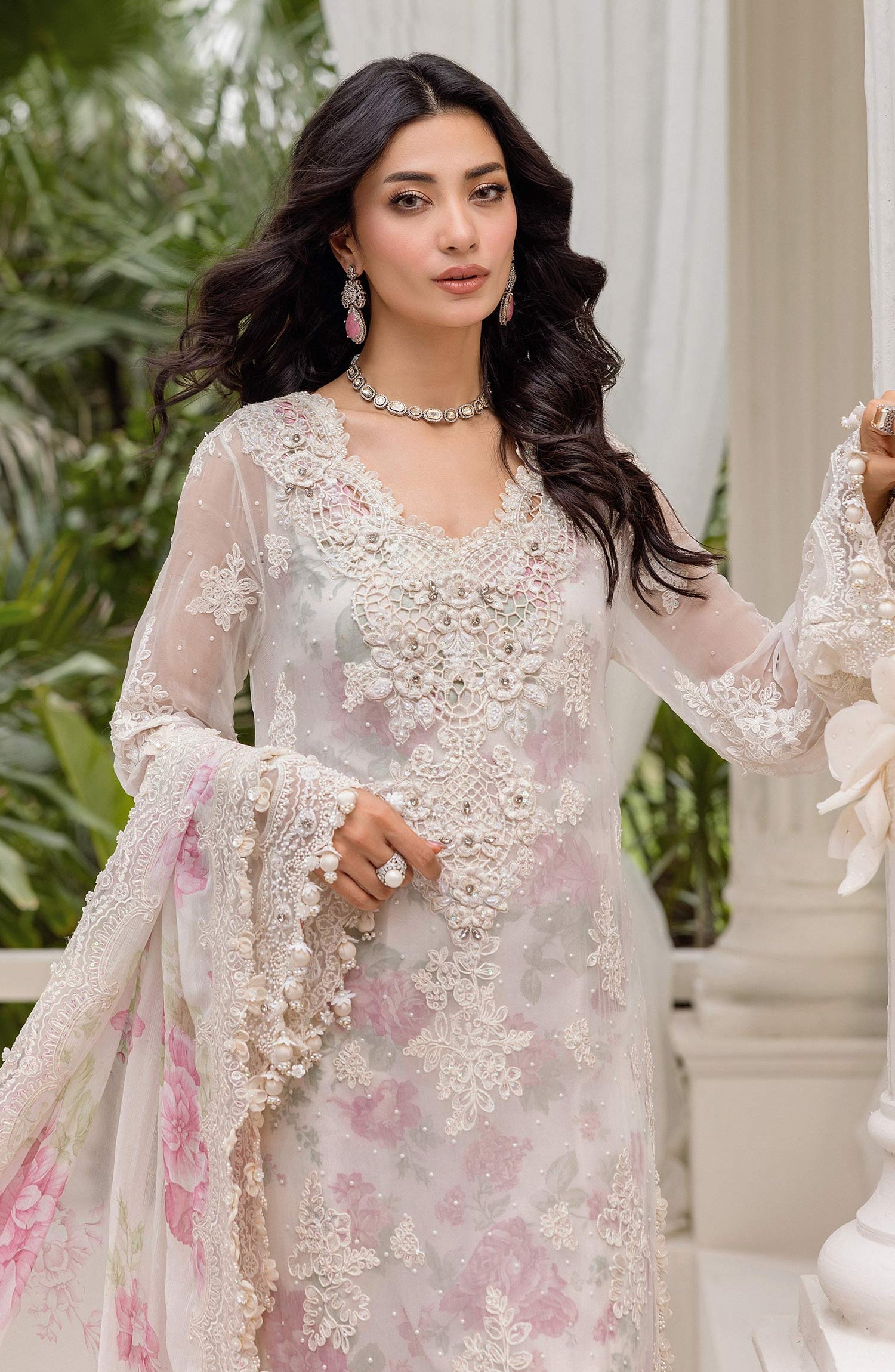 Embroidered Organza Neck Patch With 3D Flowers Hand Embellishment