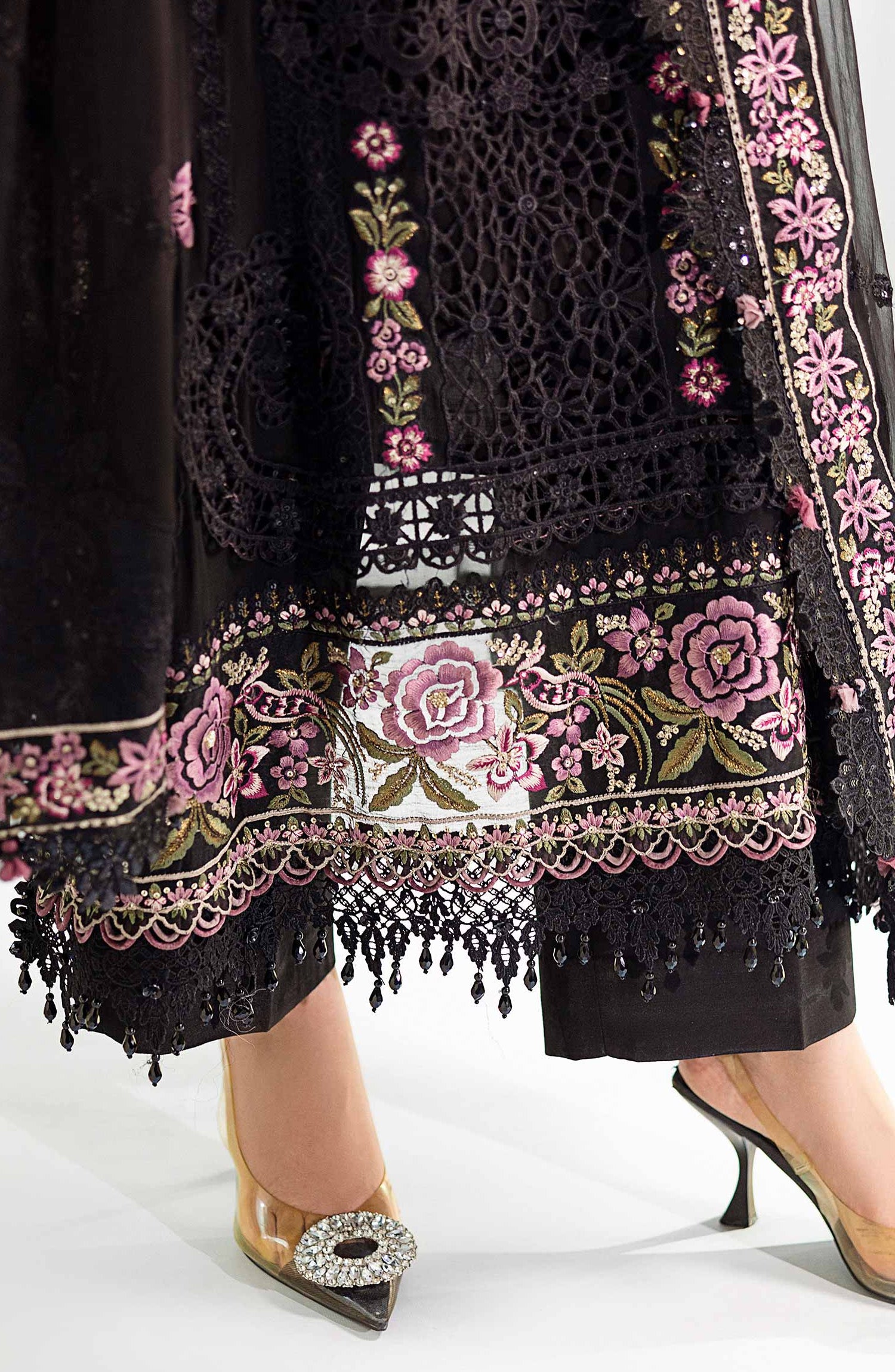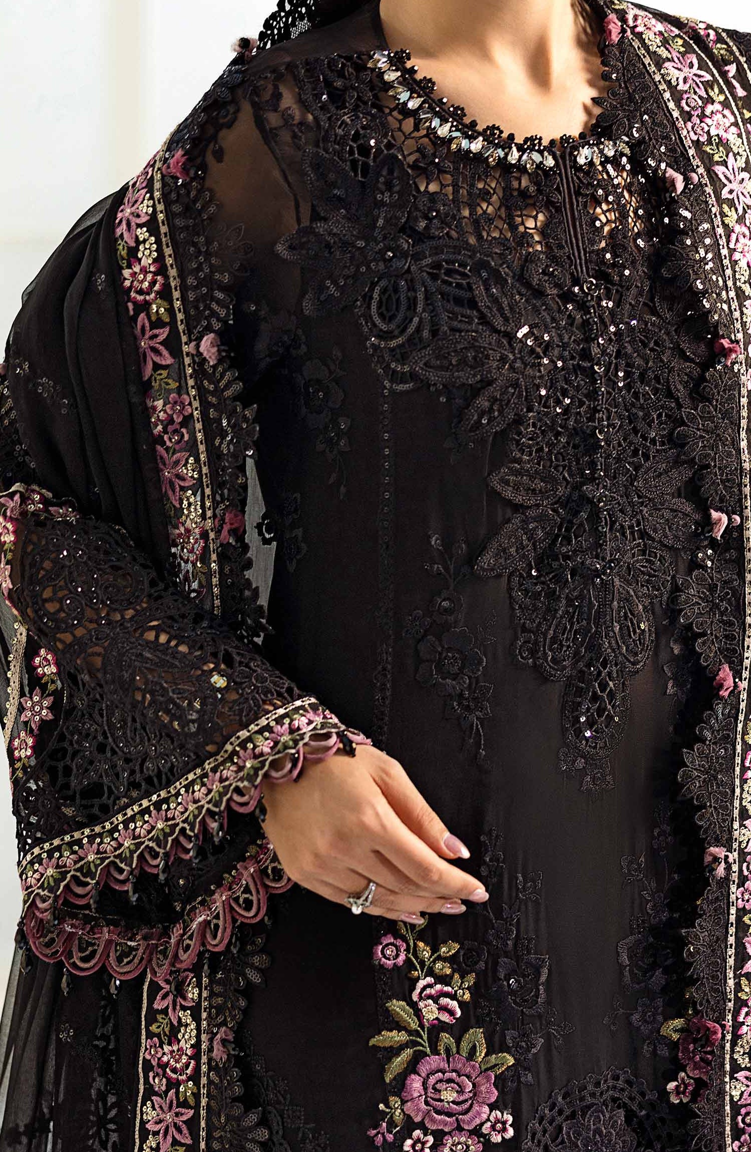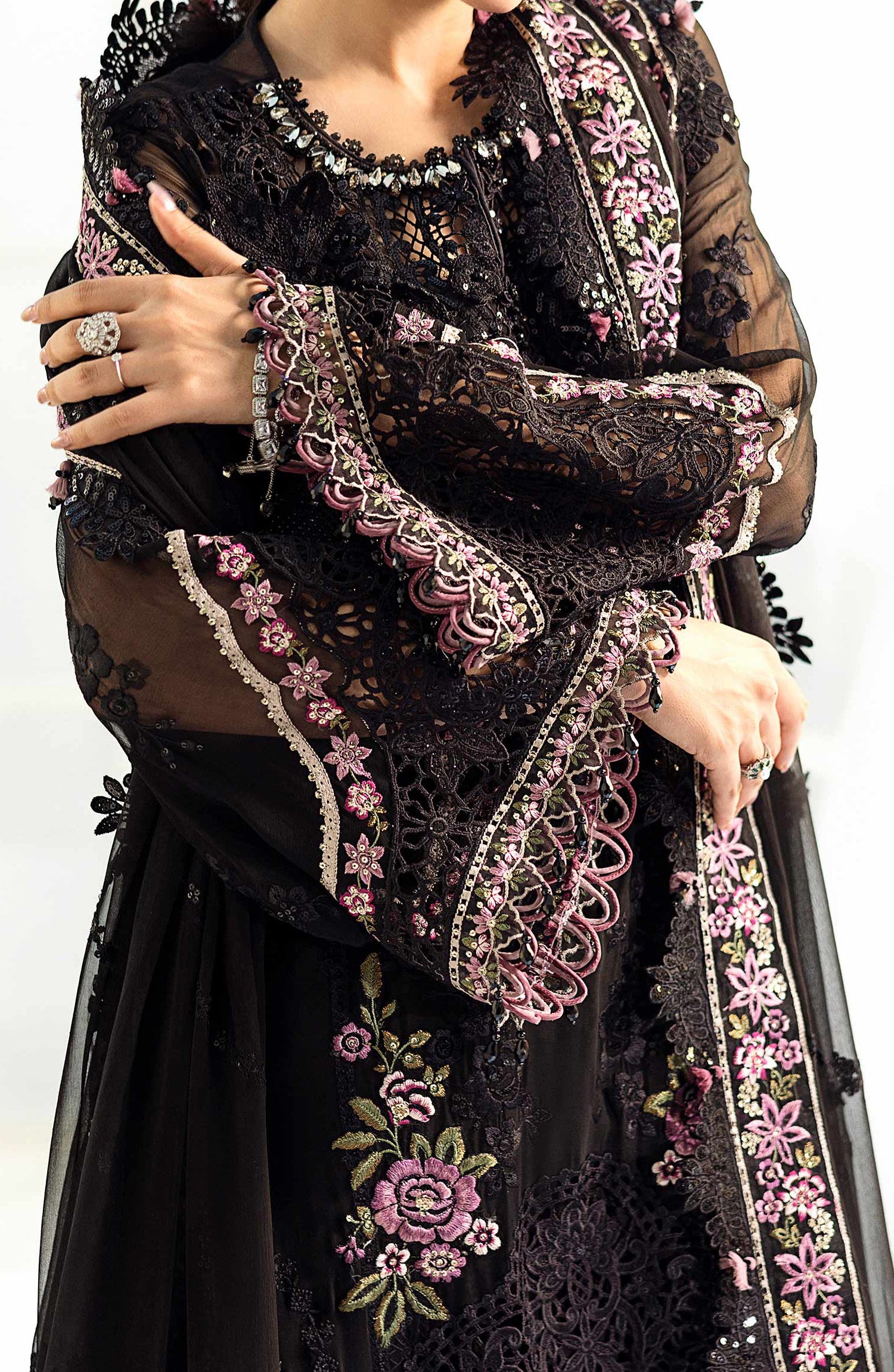 Embroidered Organza Neck Patch With 3D Flowers & Hand Embellishment