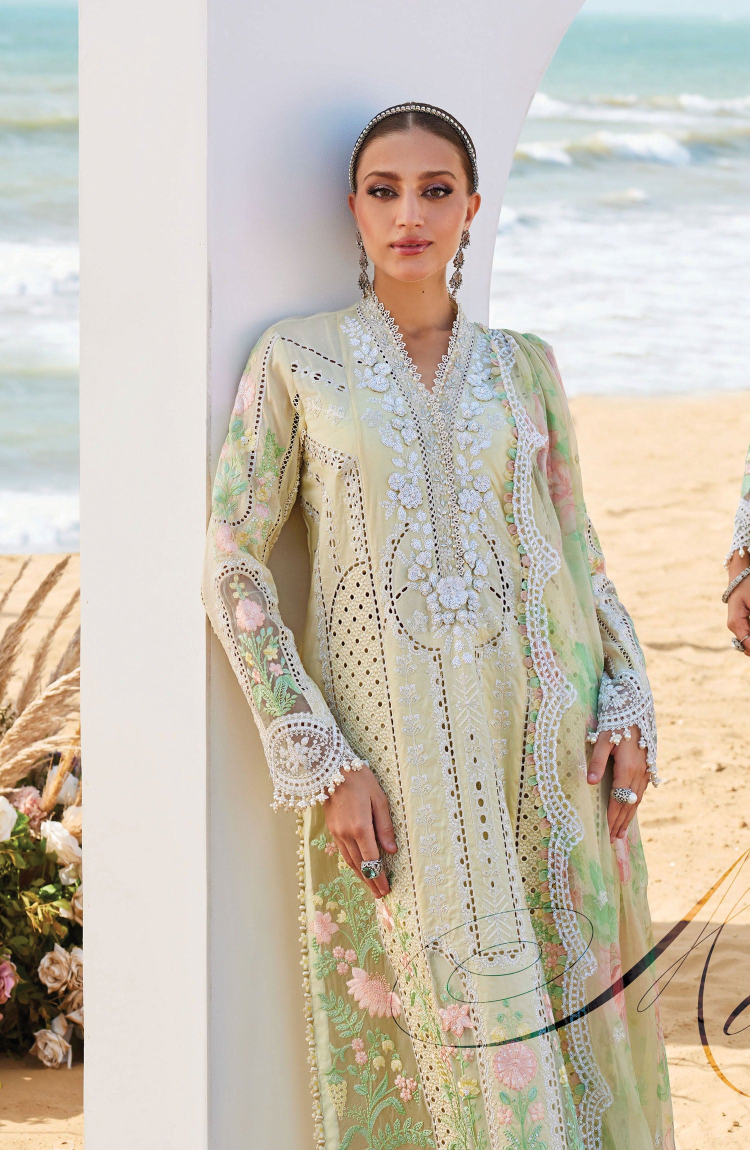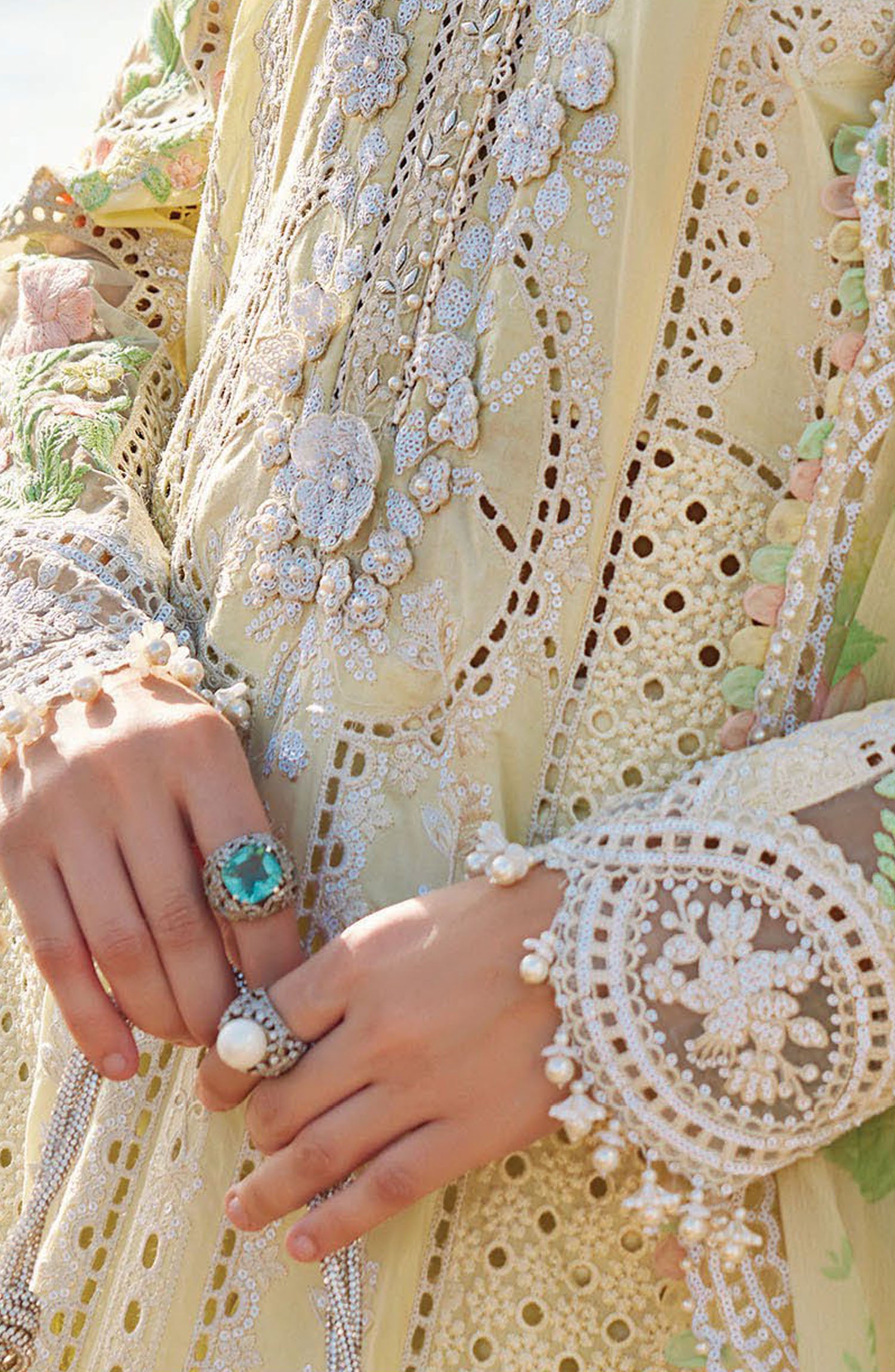 Embroidered Lawn Center Panel With 3D Flowers & Pearls