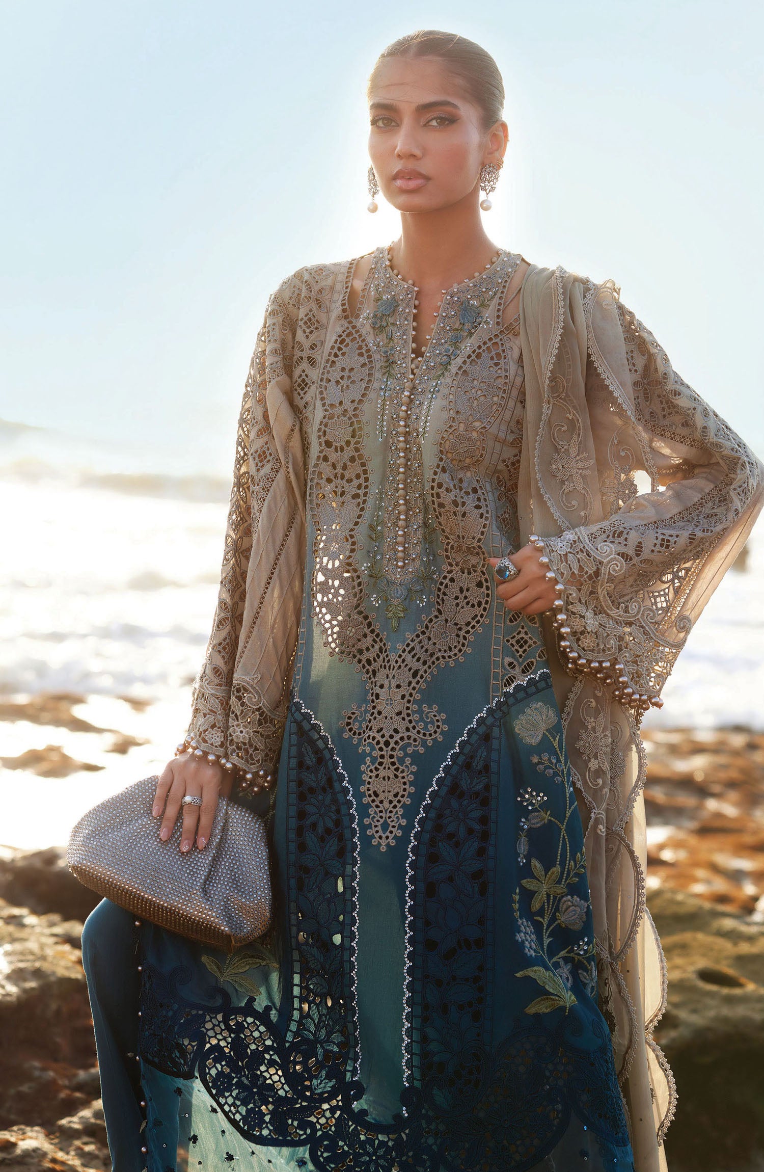 Printed & Embroidered Lawn Center Panel With 3D Flowers & Pearls