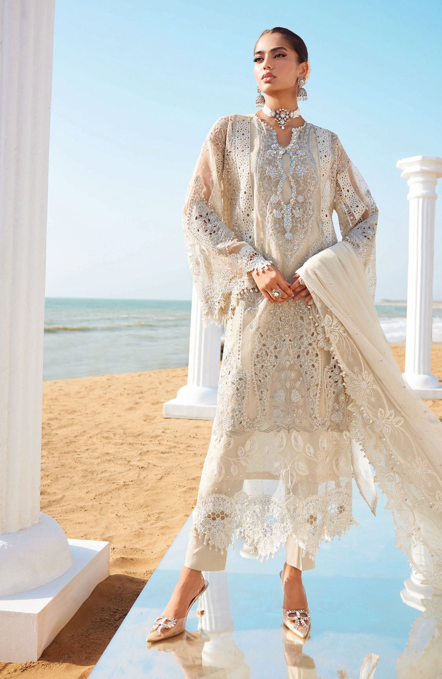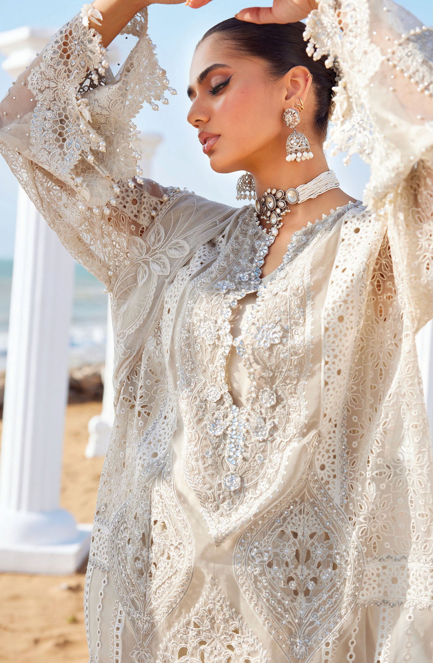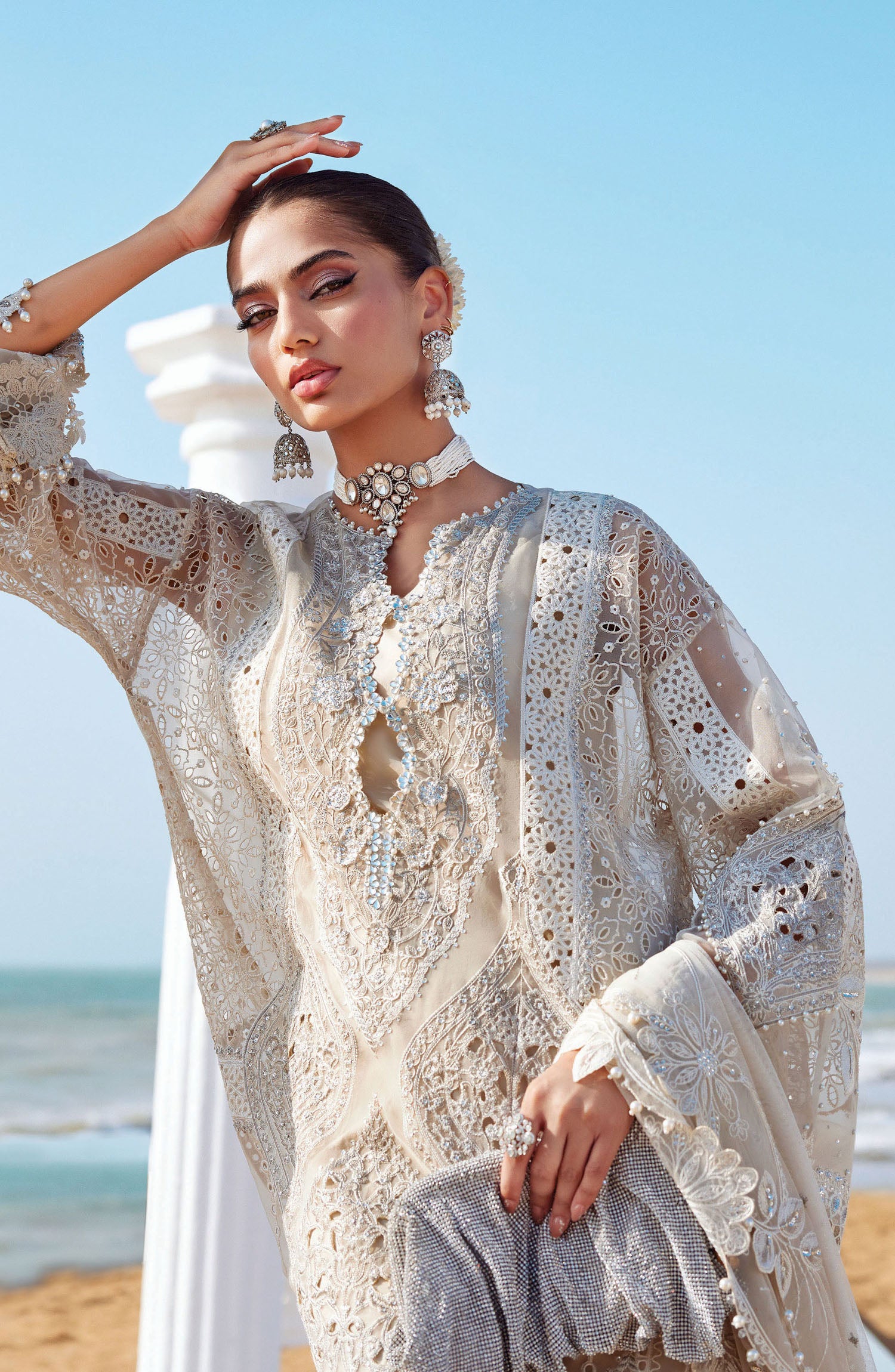 Embroidered Organza Center Panel With 3D Flowers, Pearls & Diamantes