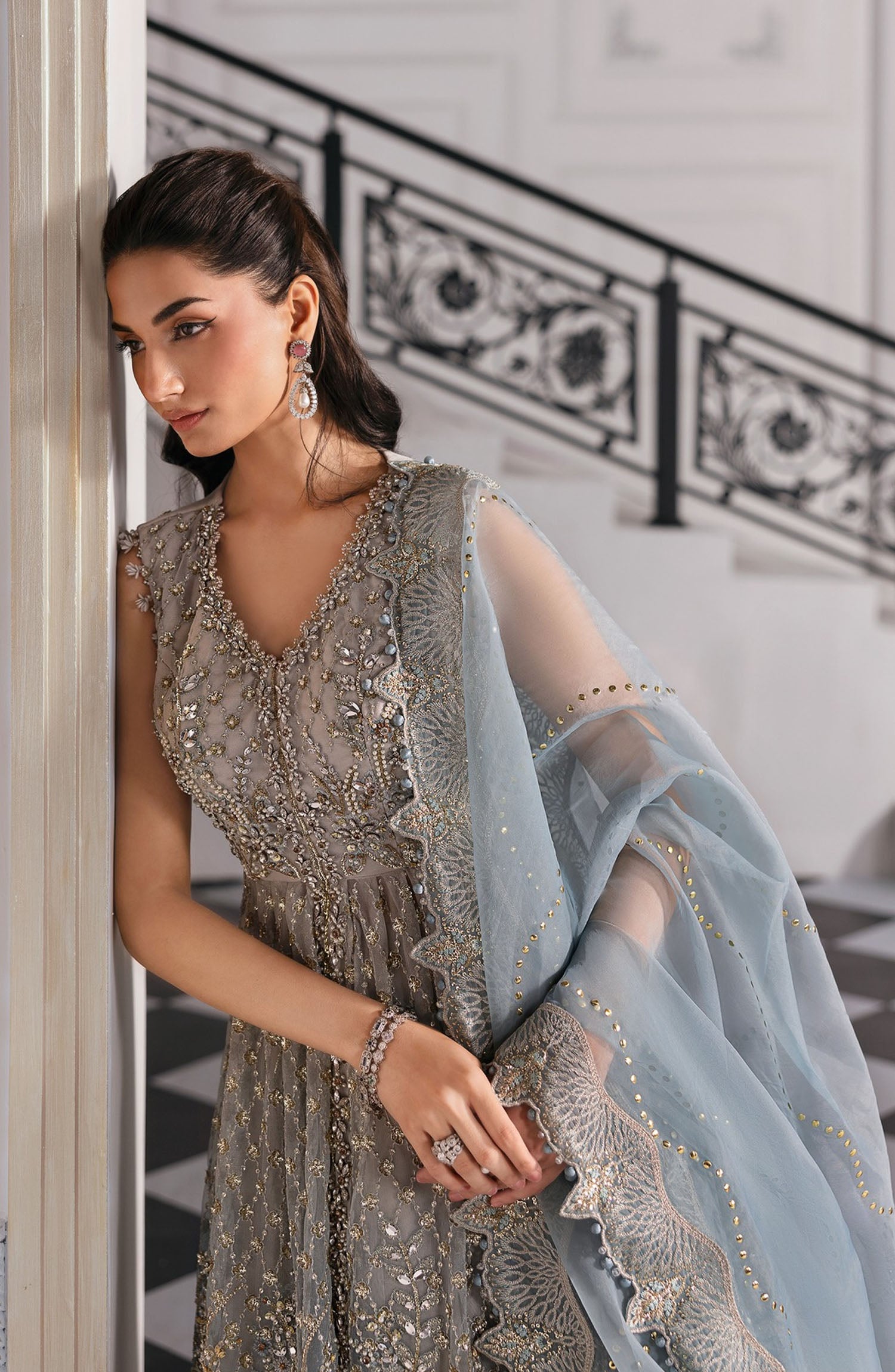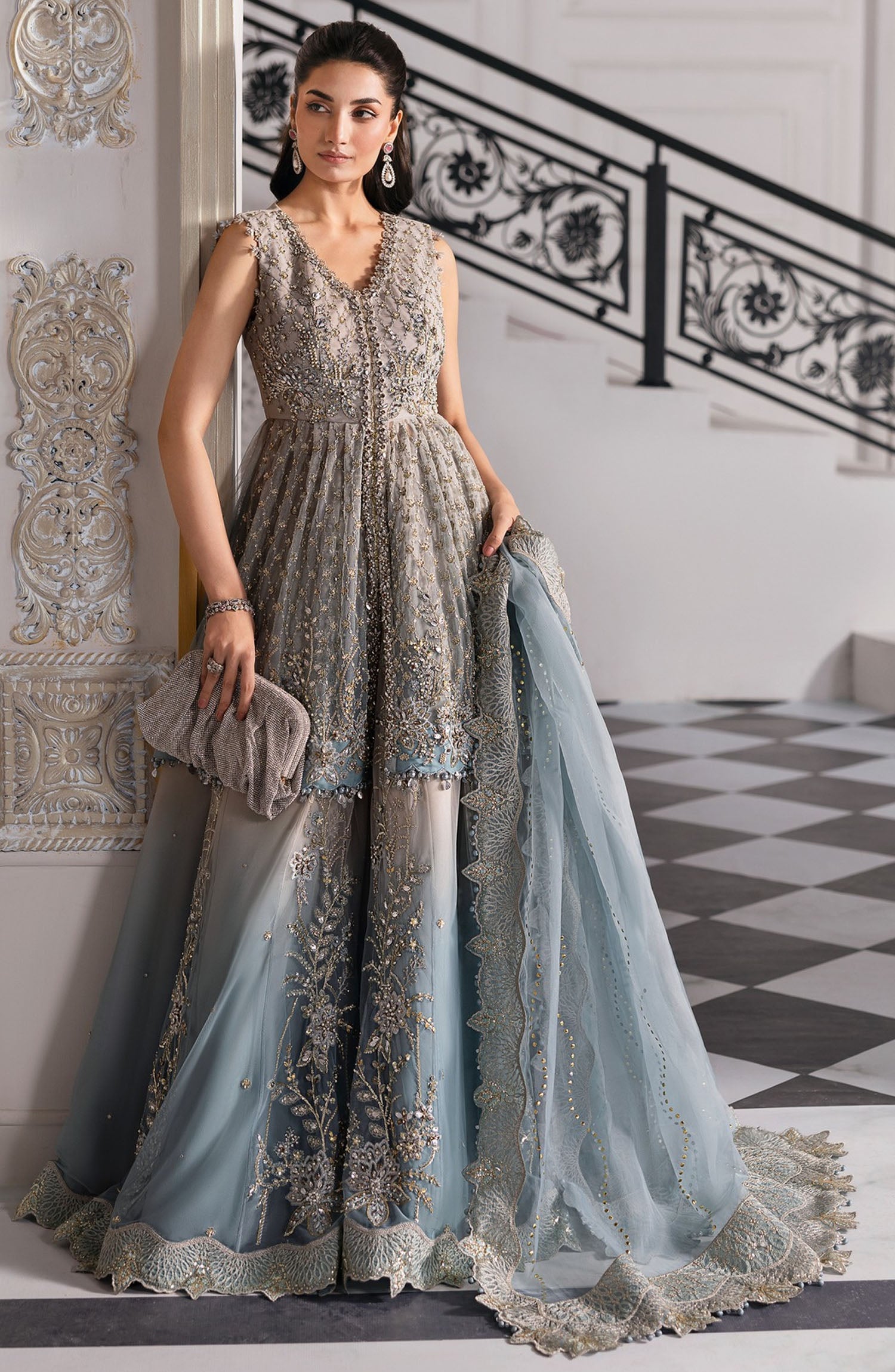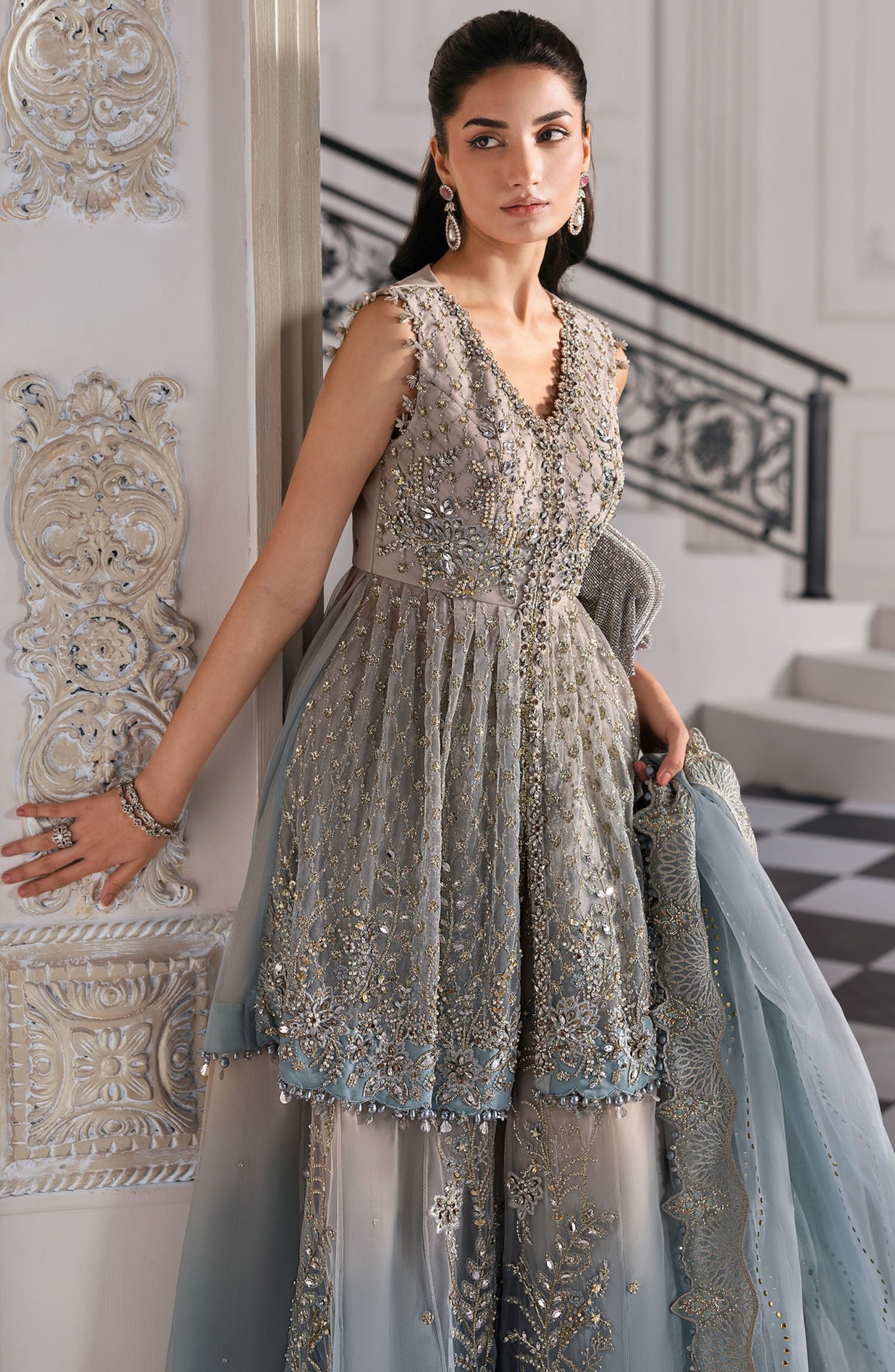 Maria B Embroidered Net Unstitched 4 Piece Suit - D-2 - MB25BDF - Blue - Formal Collection
