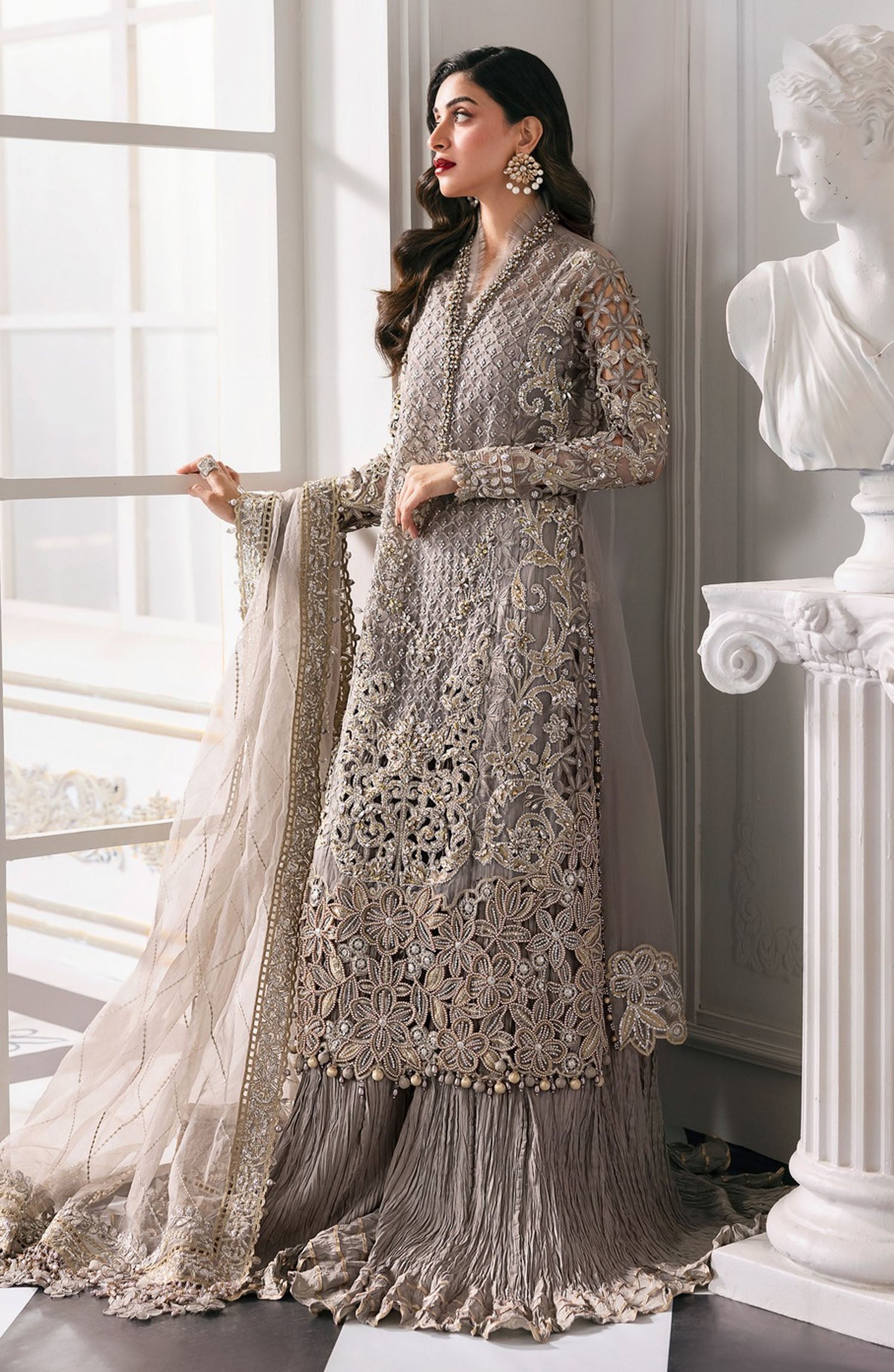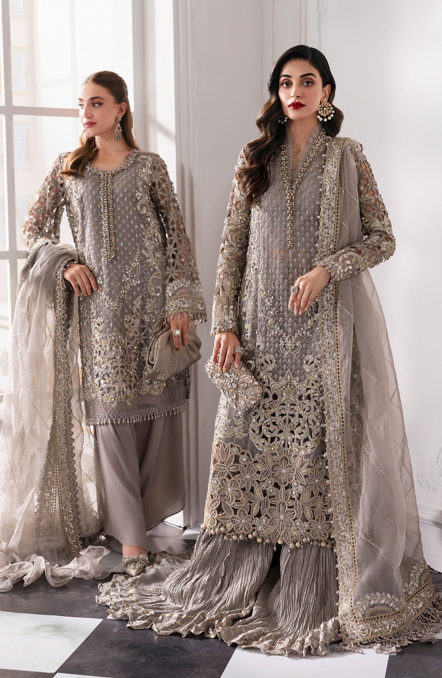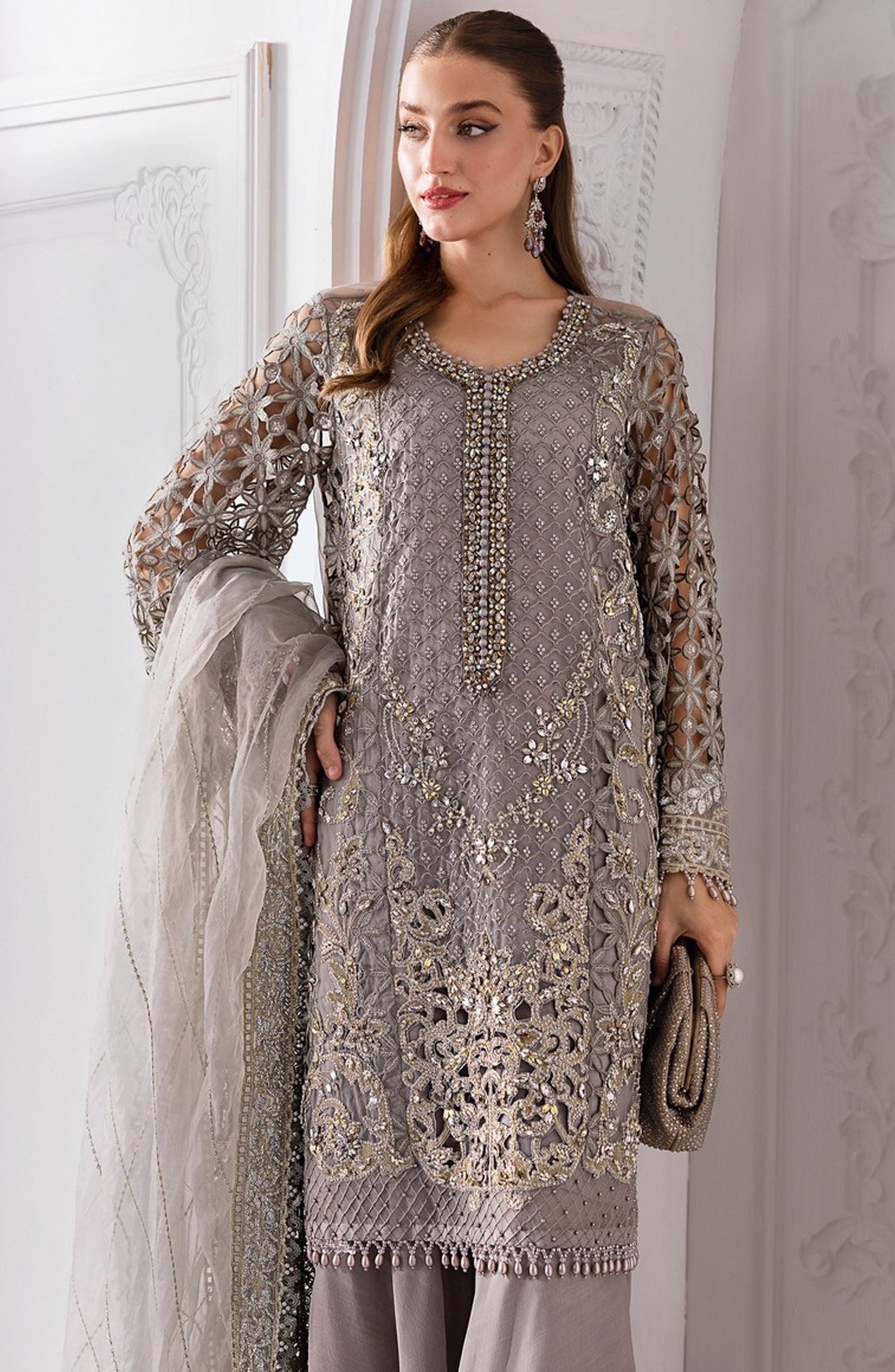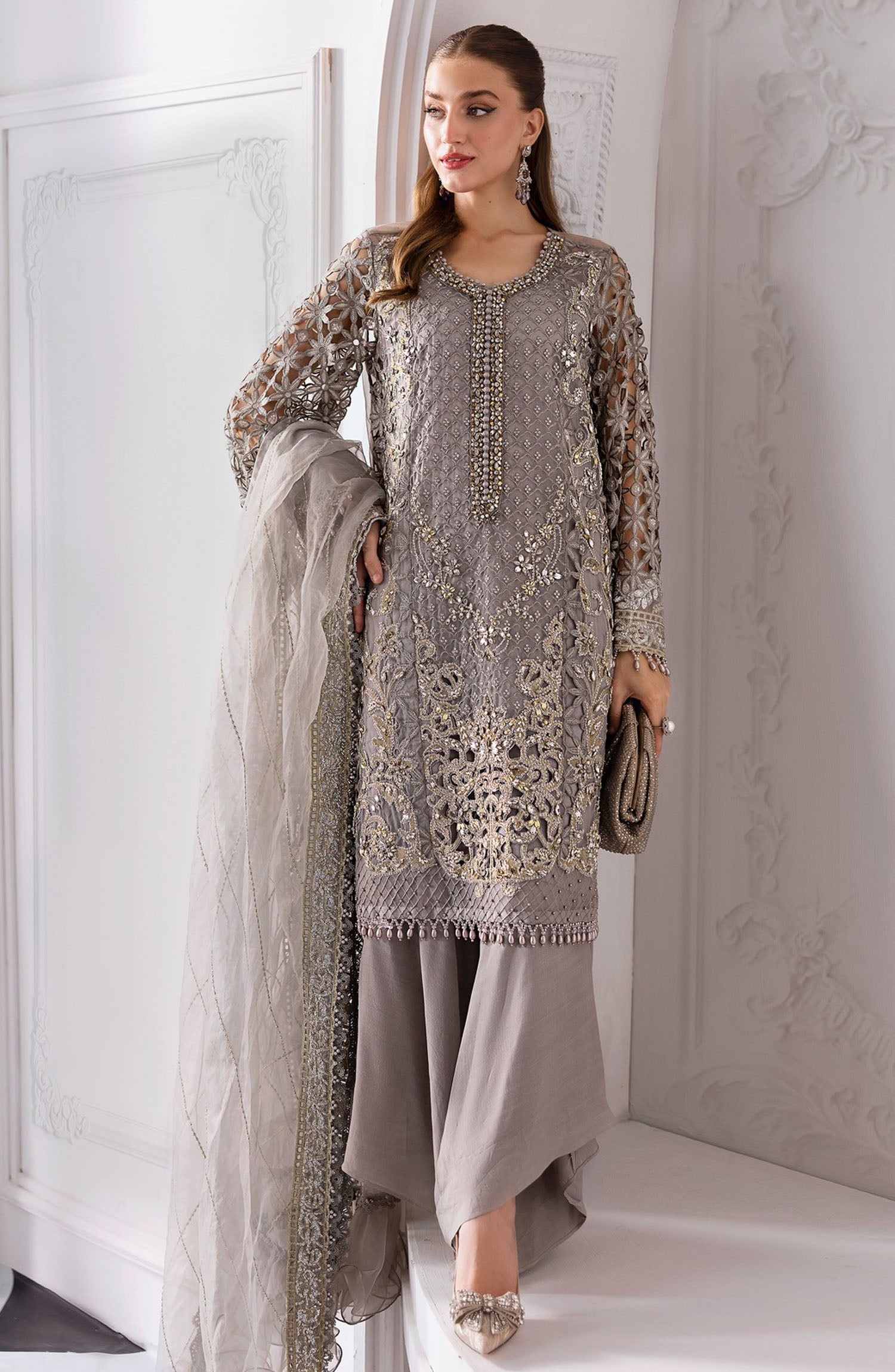 The standard style comes as a long-sleeved kameez with dupatta and trouser/shawlar.