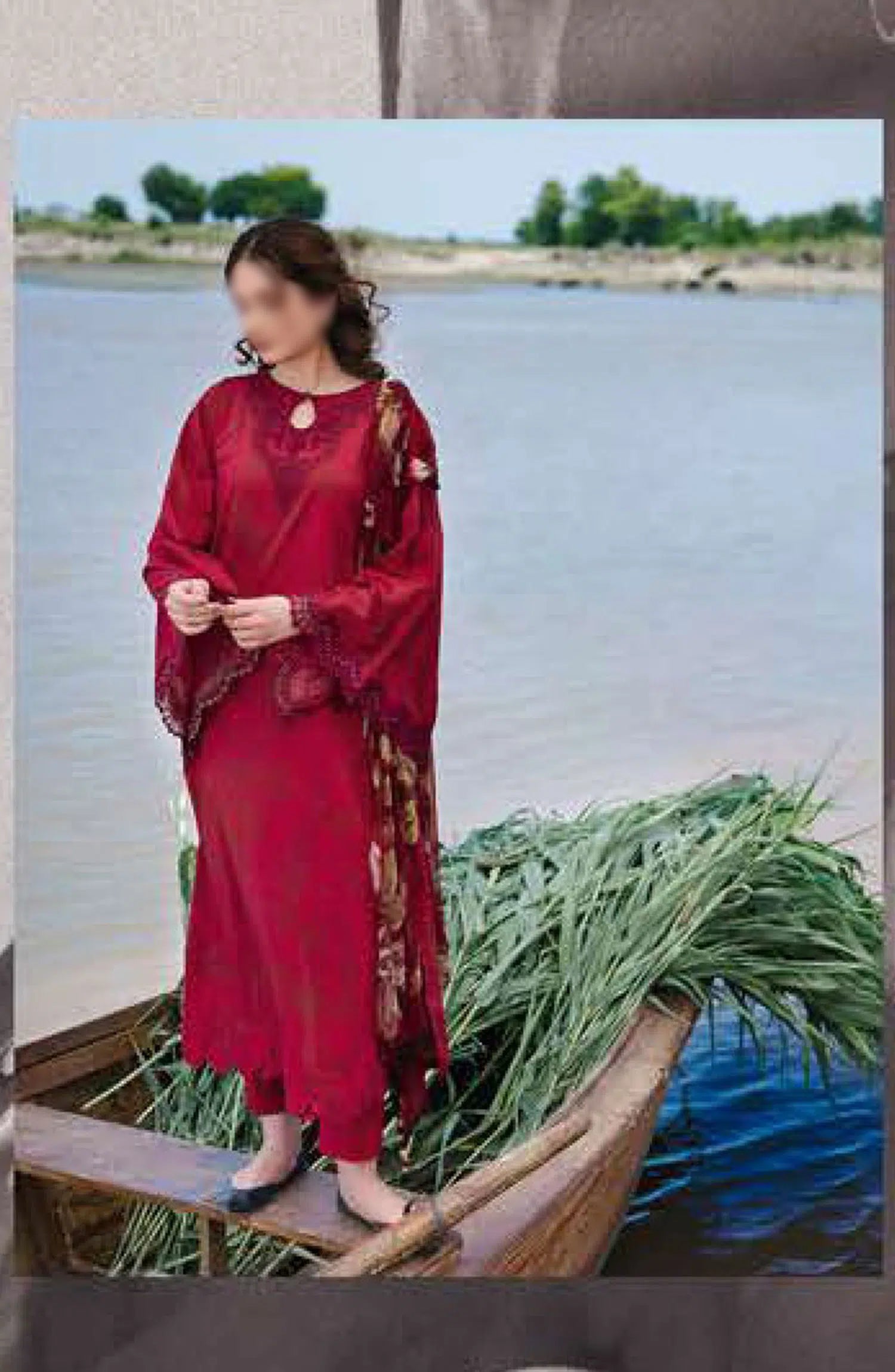 Rua by Casual Lite Embroidered Premium Linen Stitched 3 Piece Suit - D-02 Crimson Folklore - CL25RU - Red - Winter Collection