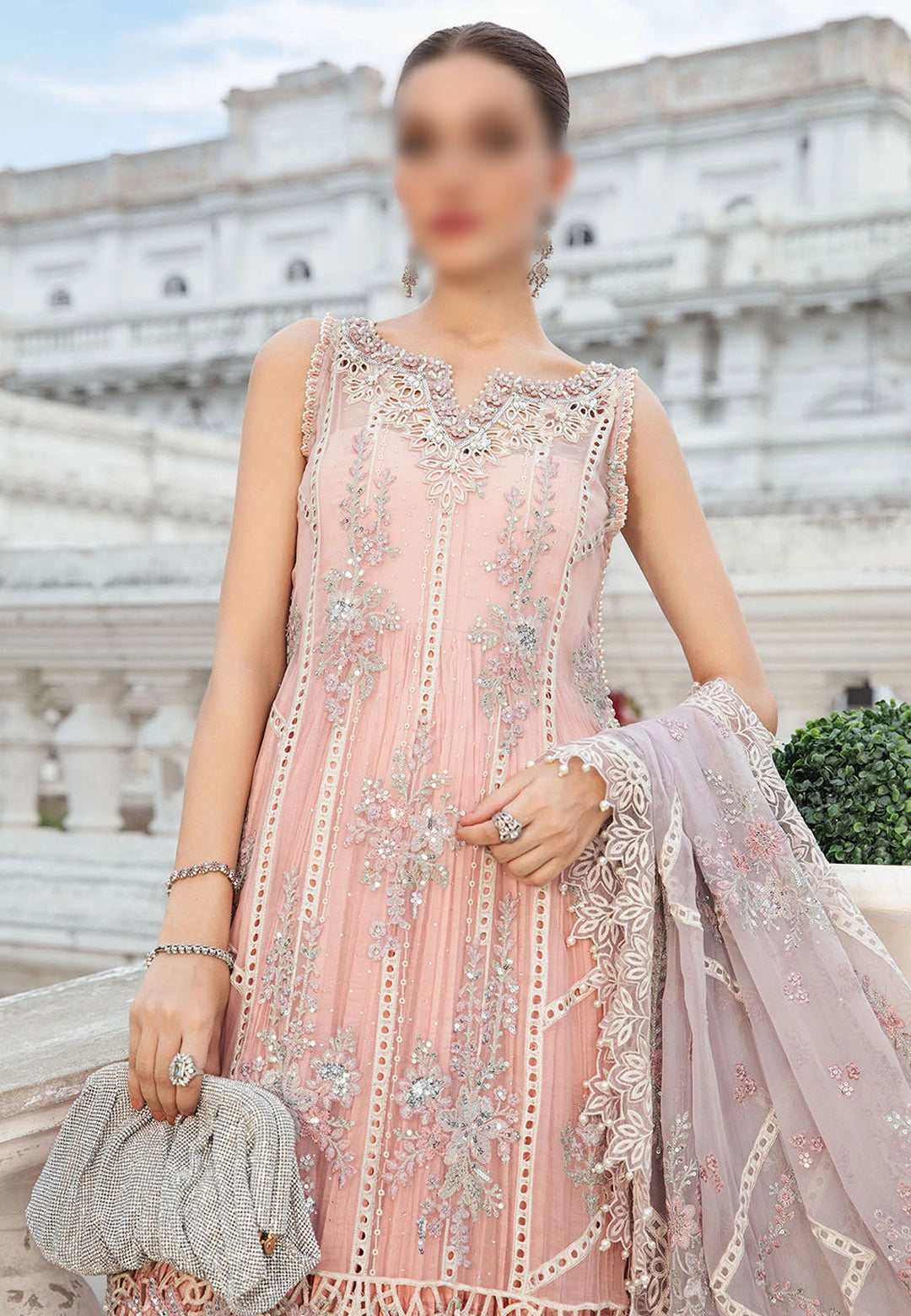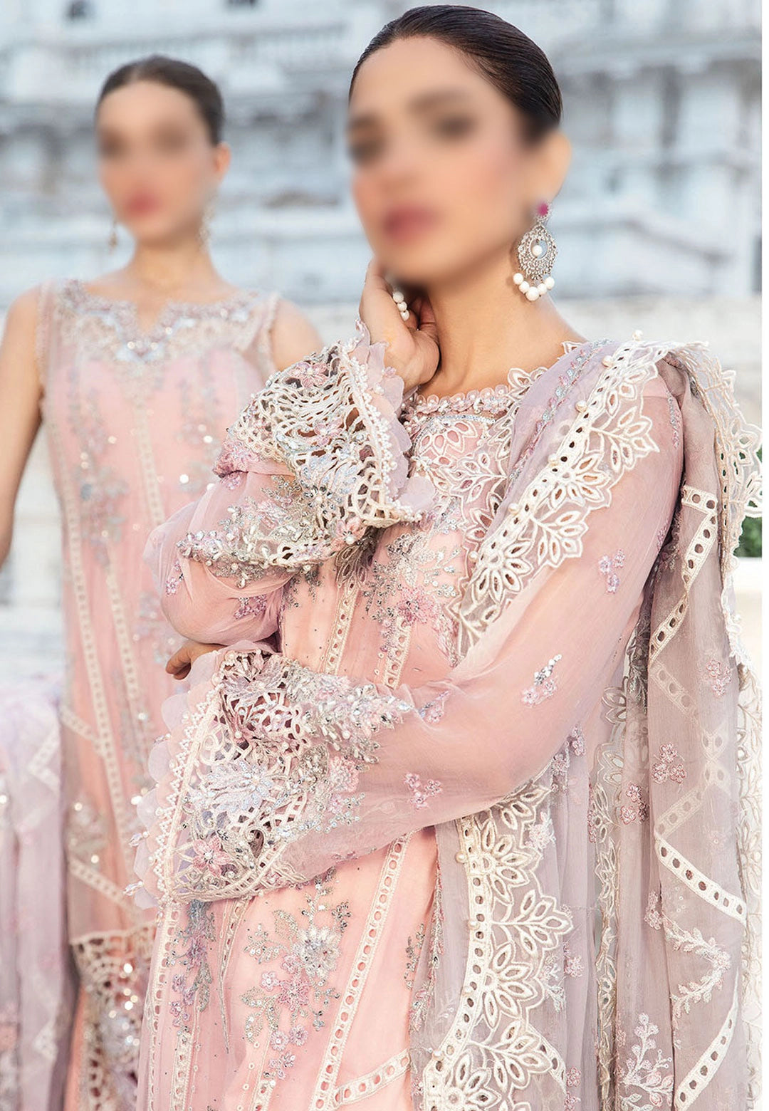 Maria B Unstitched Chiffon Collection 2024 has been styled in the image for photography and illustrative purposes.