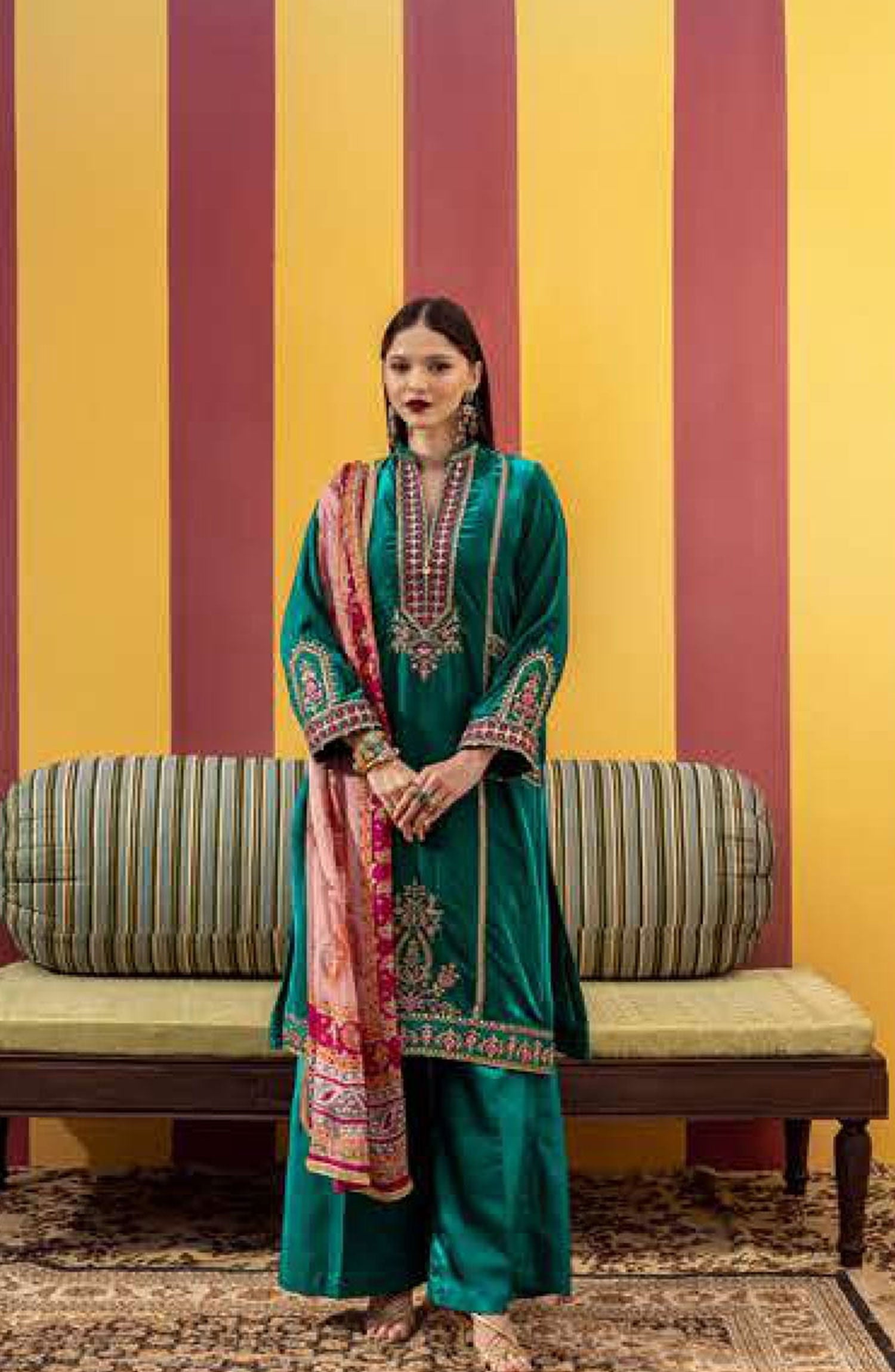 Maria B Unstitched Festive 2024 has been styled in the image for photography and illustrative purposes.